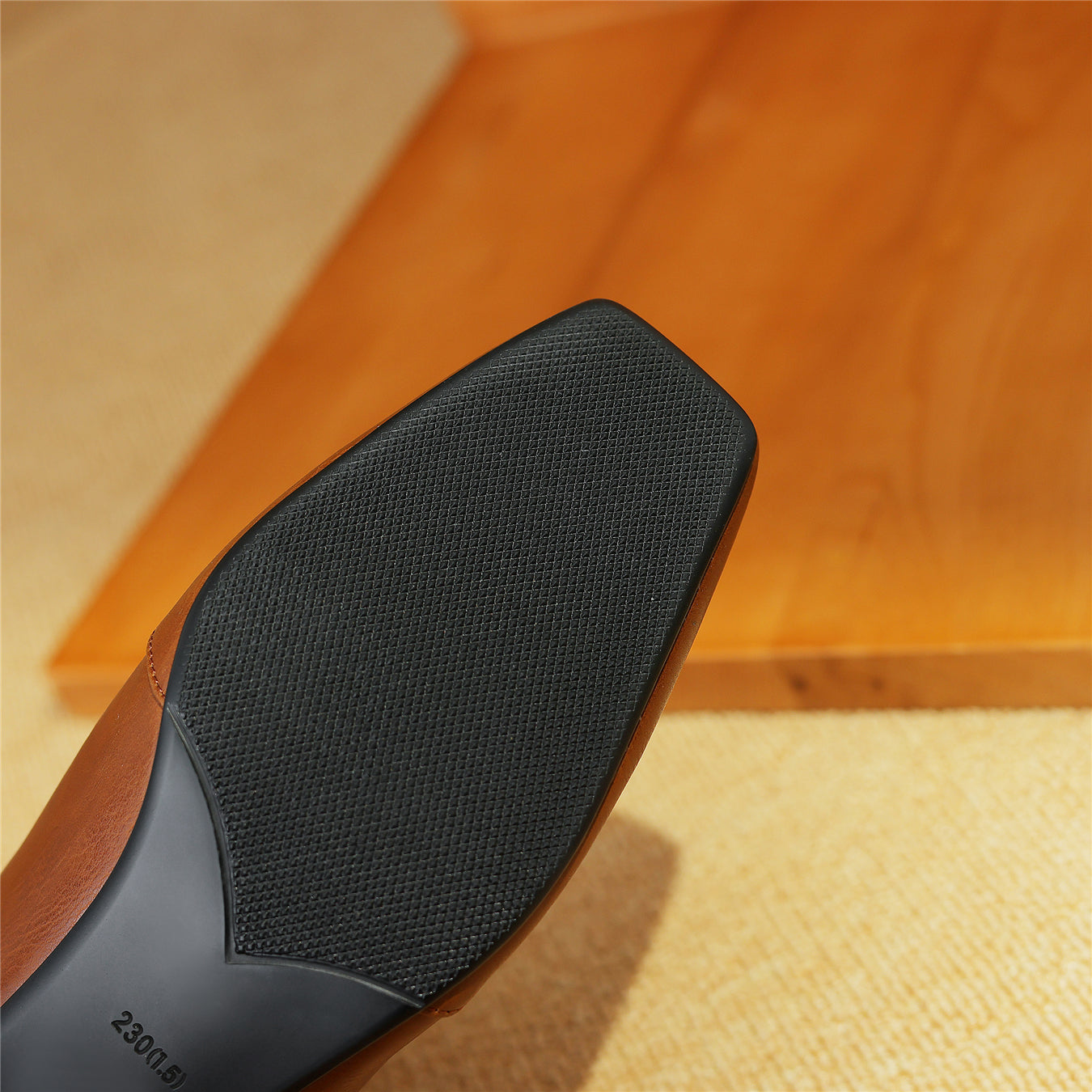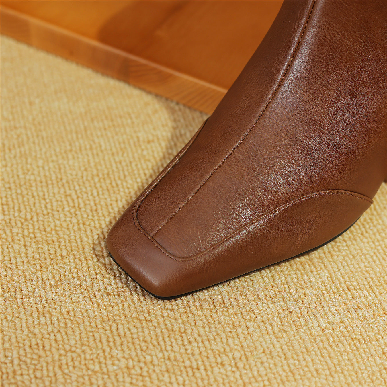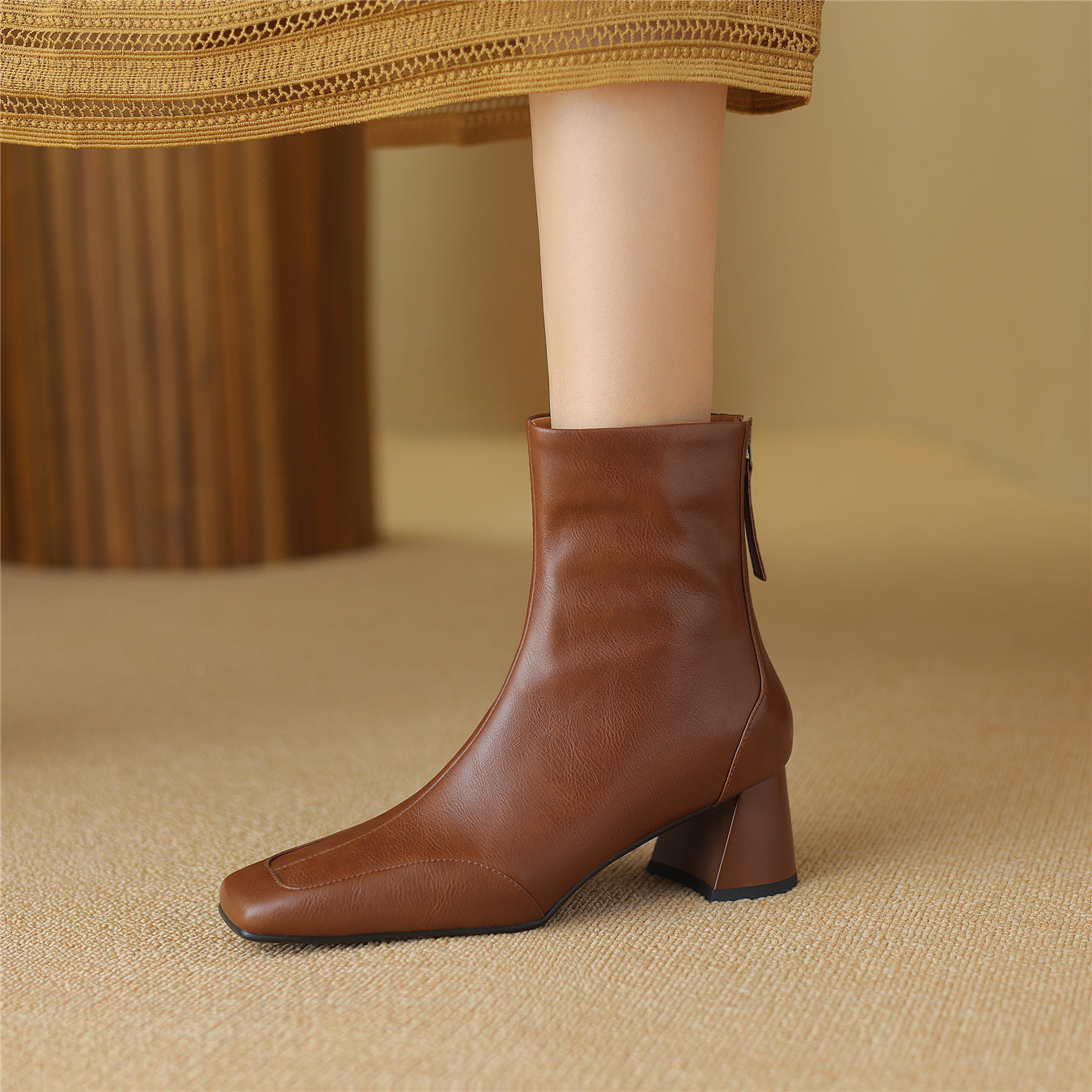 TinaCus Women's Genuine Leather Square Toe Handmade Mid Heel Back Zip Ankle Boots