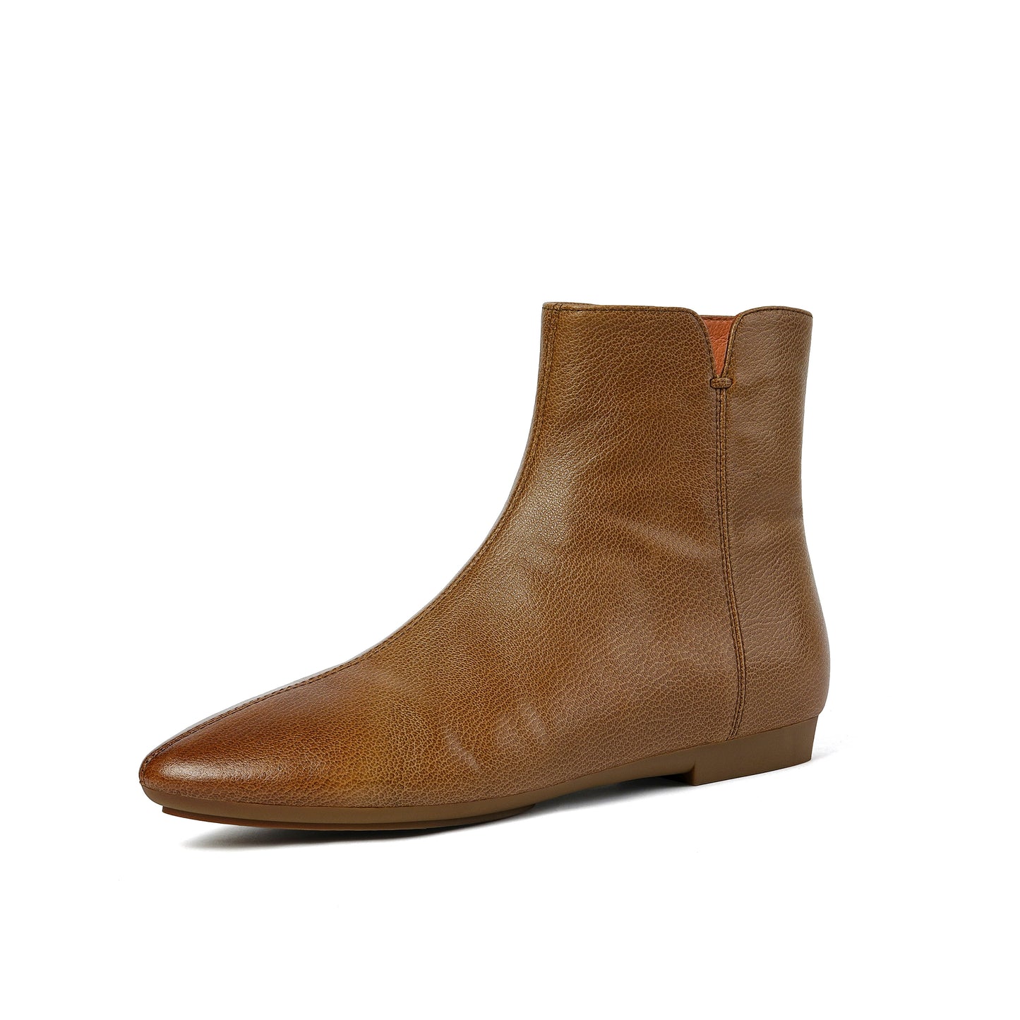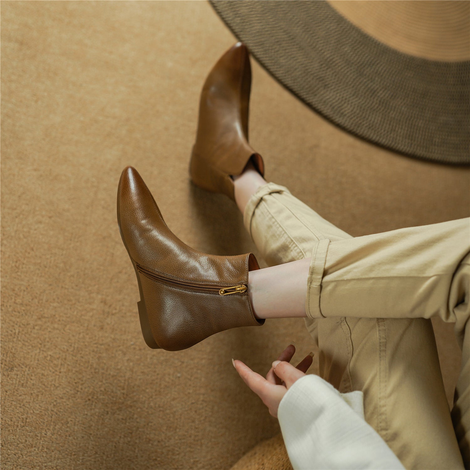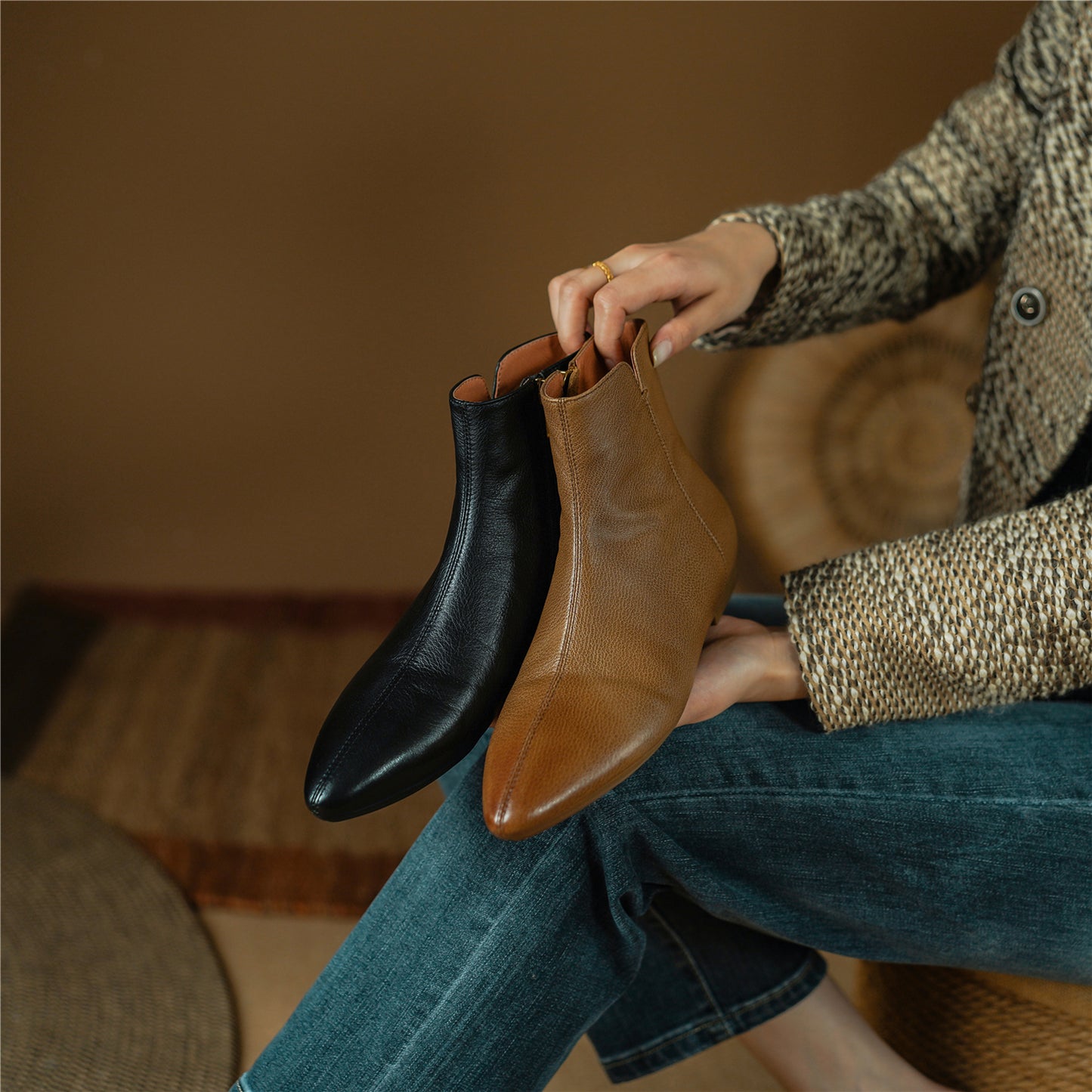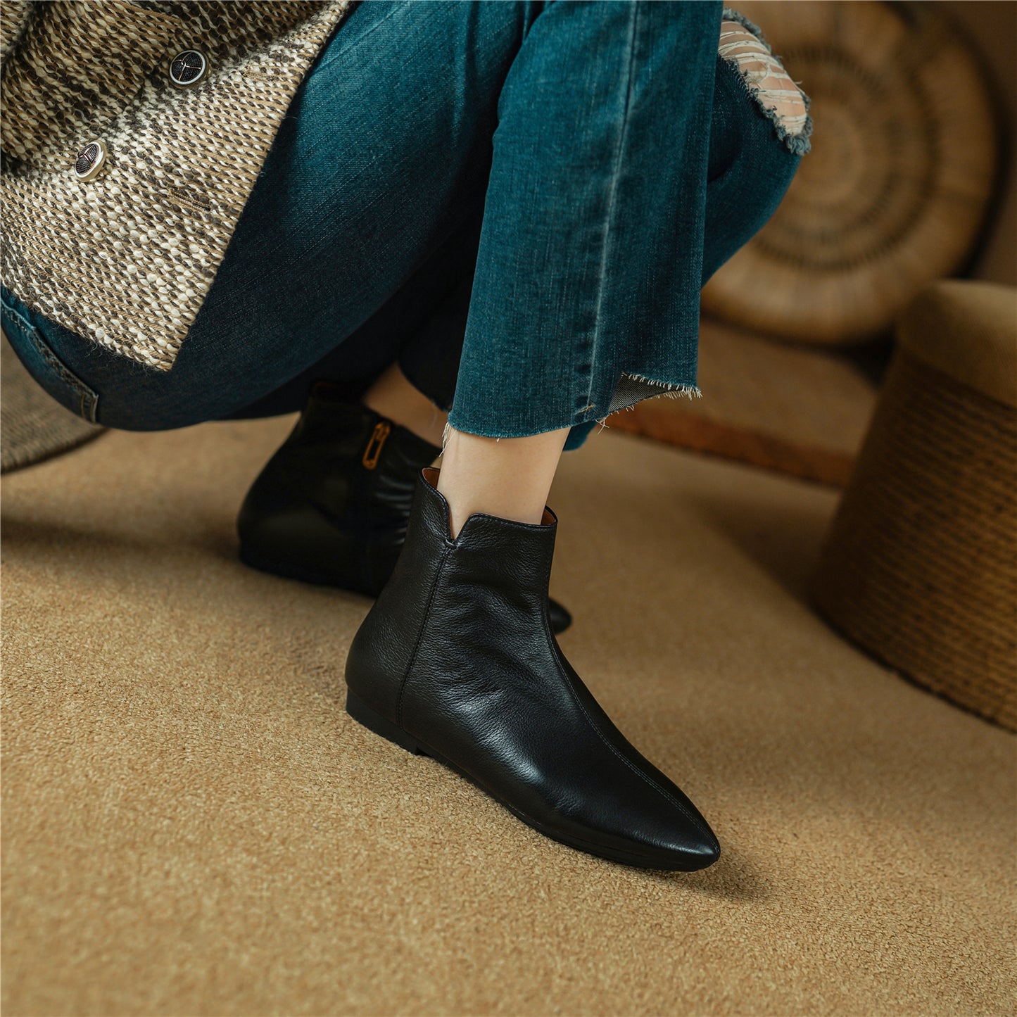 TinaCus Women's Genuuine Leather Pointed Toe Handmade Zip Up Flat Ankle Boots