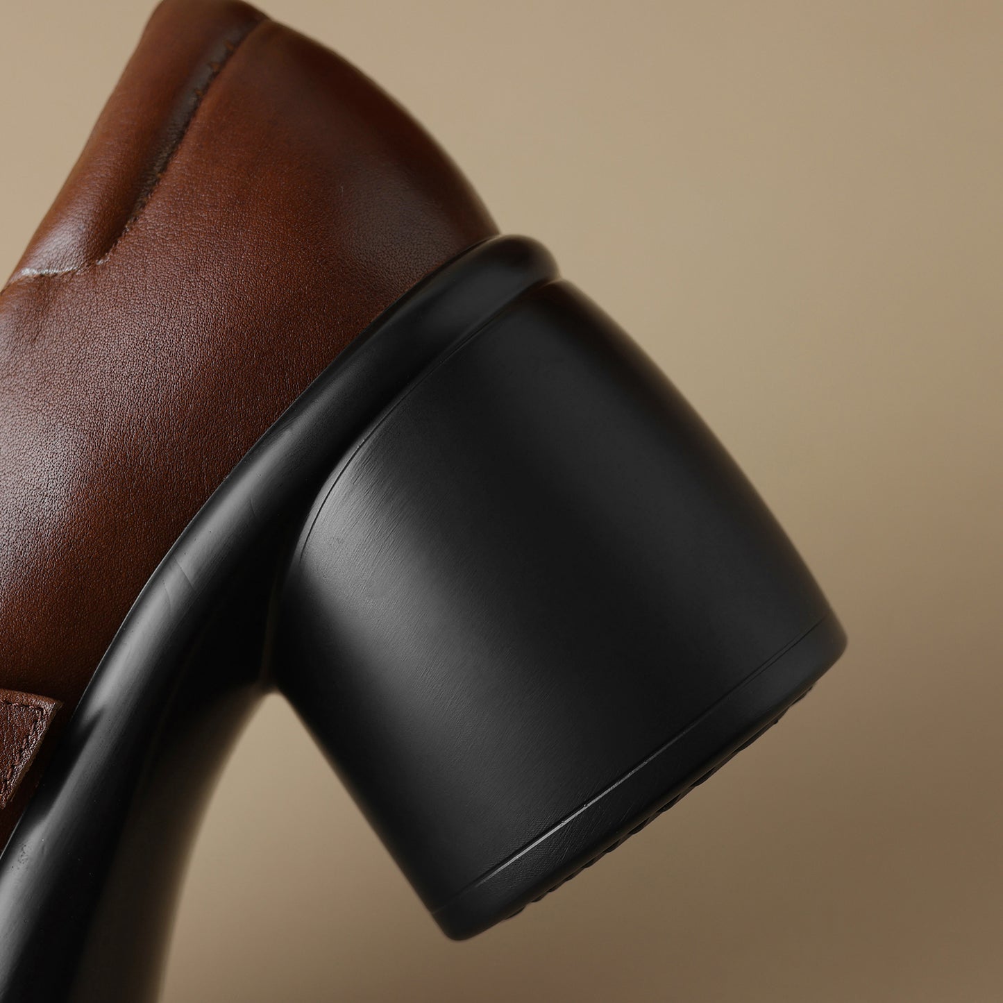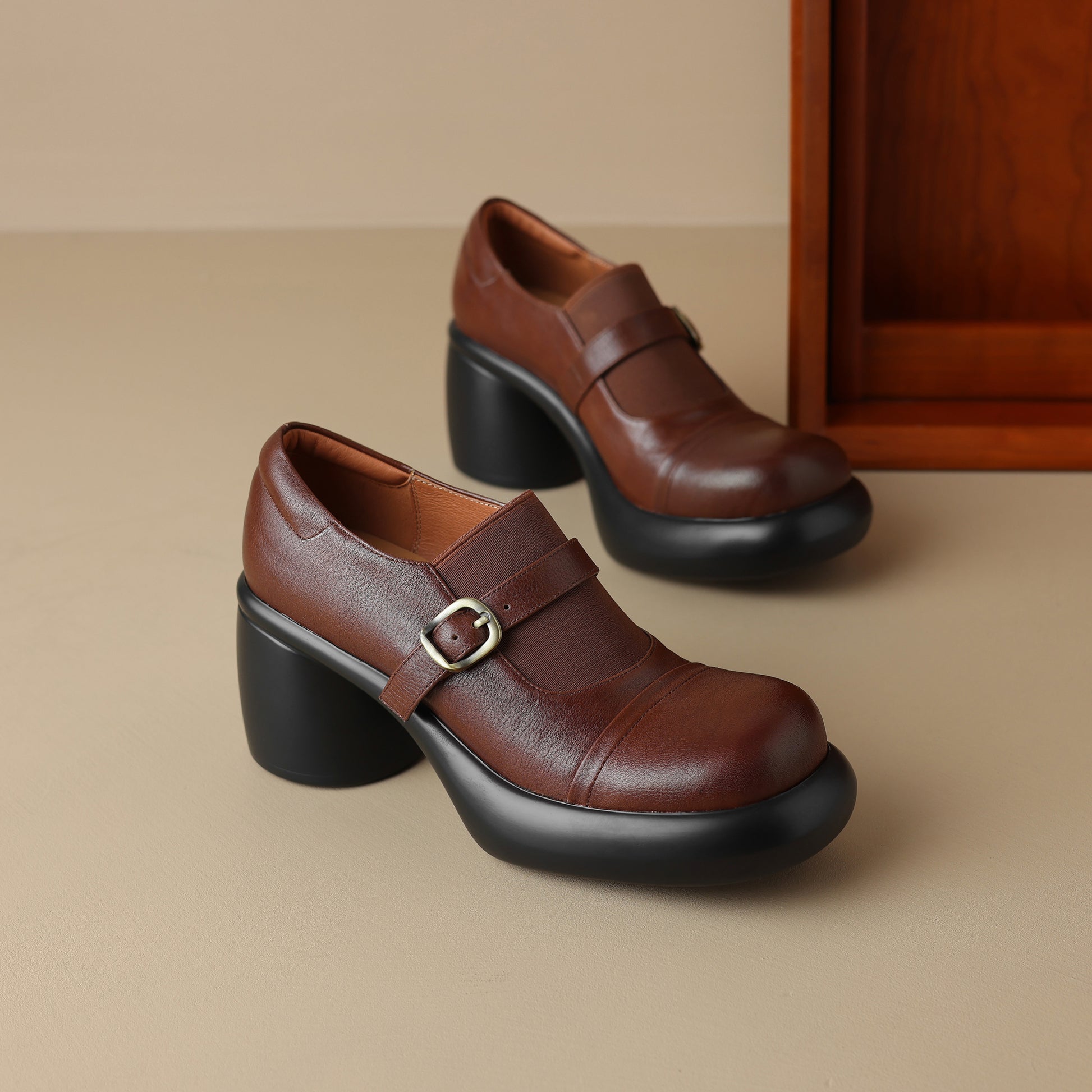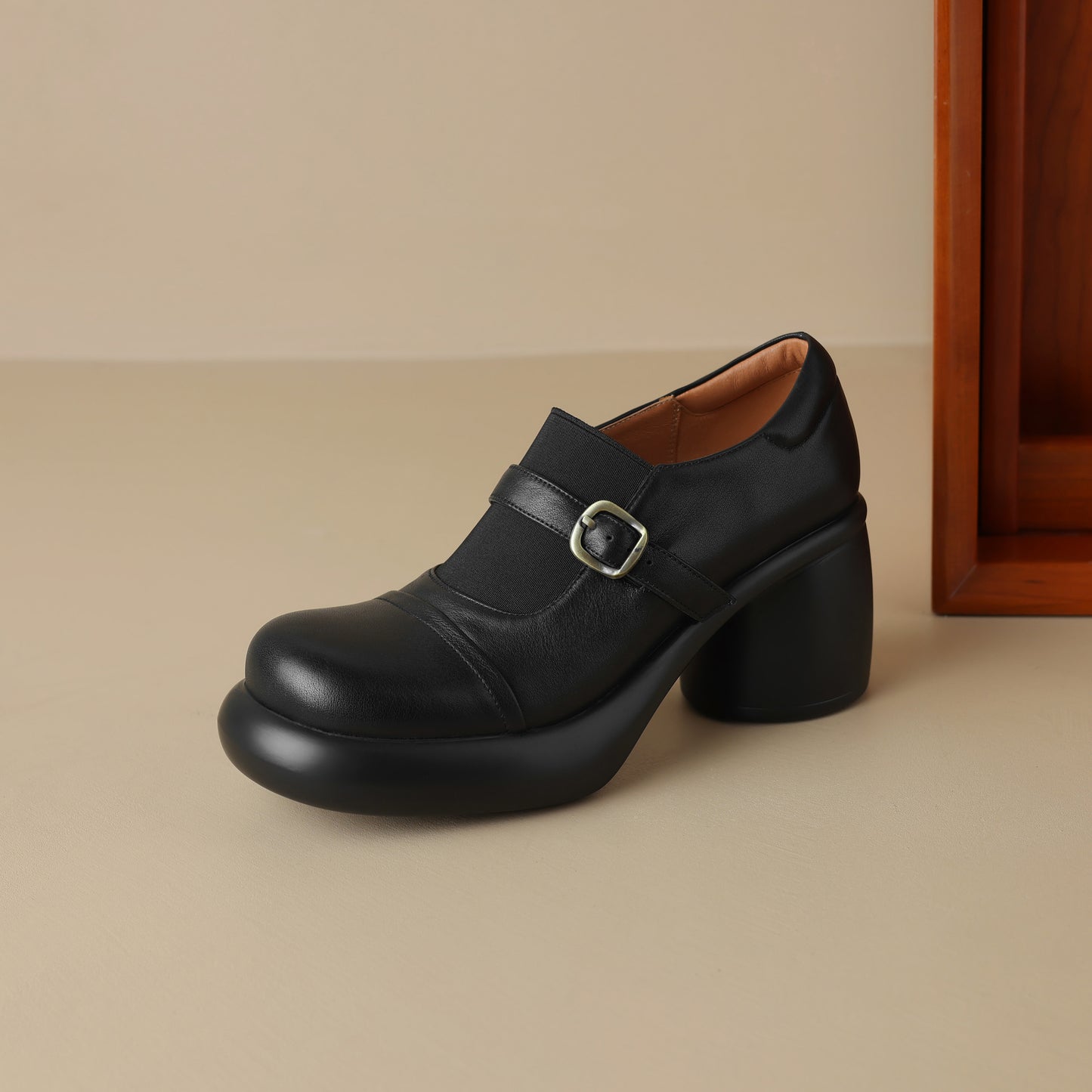 TinaCus Women's Handmade Chunky Heel Genuine Leather Buckle Design Round Toe Pumps Shoes