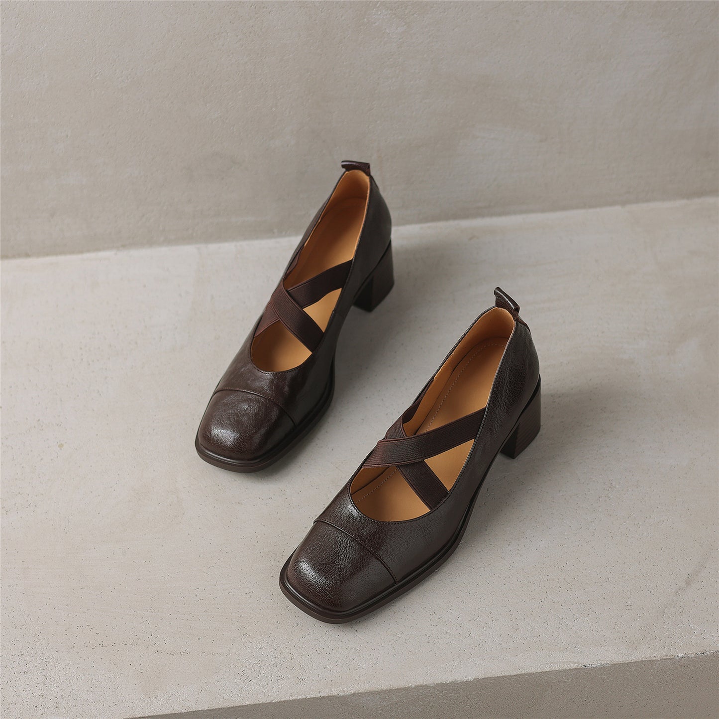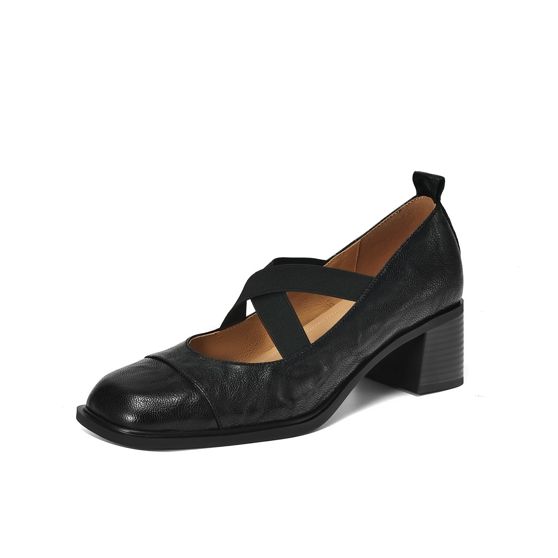 TinaCus Women's Handmade Genuine Leather Chunky Heel Slip On Elestic Band Pumps