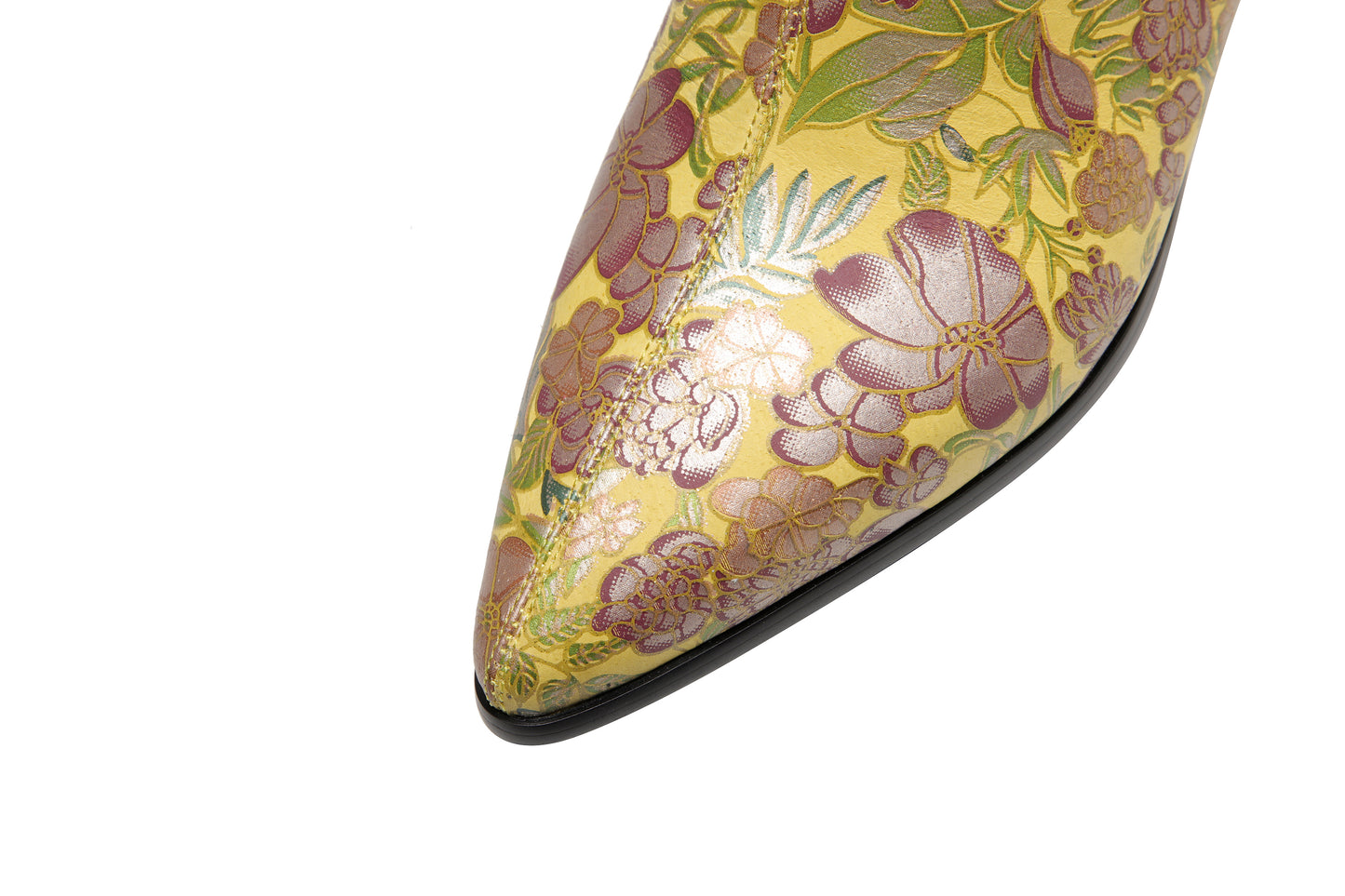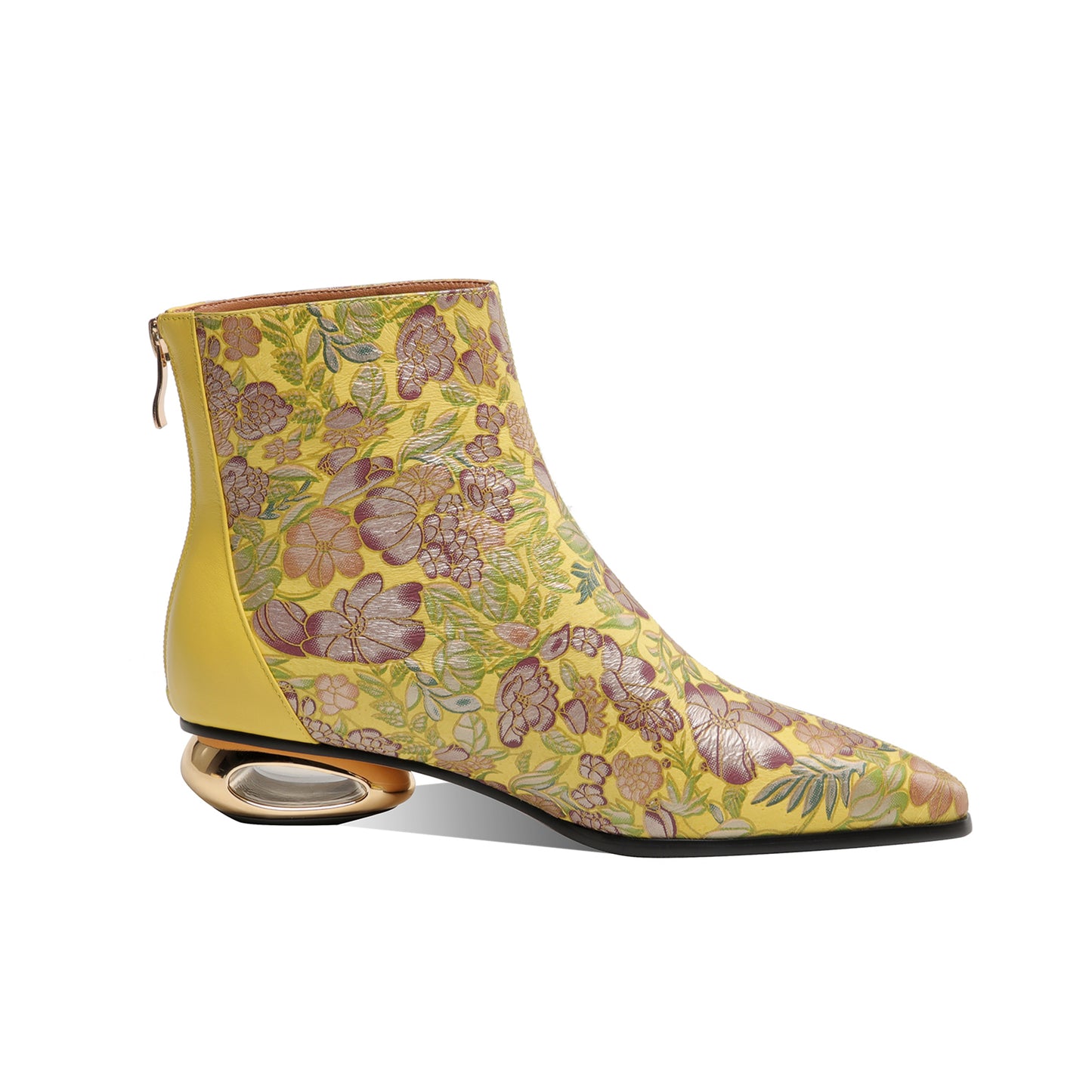Ankle boots are designed with genuine leather, flowers and zip up to keep up with fashion trend.