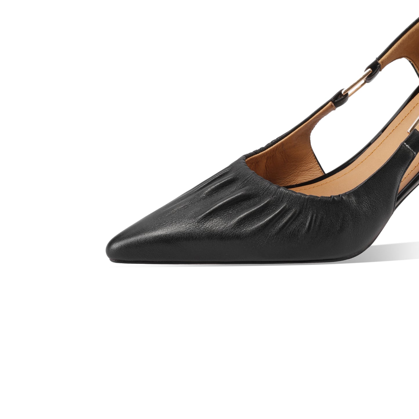 Pump shoes with genuine leather, pointed toe and slip on closure can go with your dress, jeans and pants.