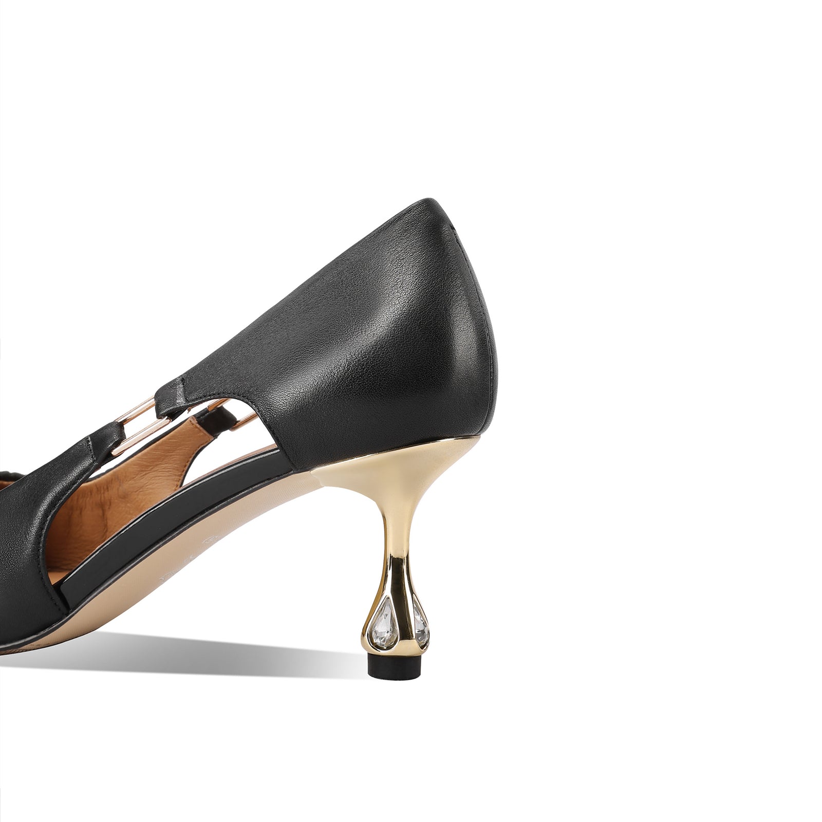 TinaCus Women's Handmade Genuine Leather Pointed Toe Side Buckle Stiletto Heel Sandal Pumps