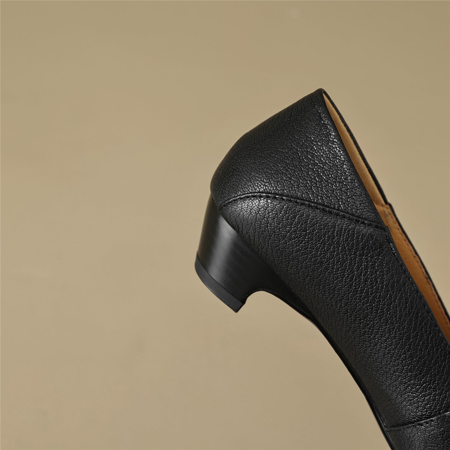 Comfortable shoes with genuine leather, chunky heel and slip on closure can go with your dress, jeans and pants.