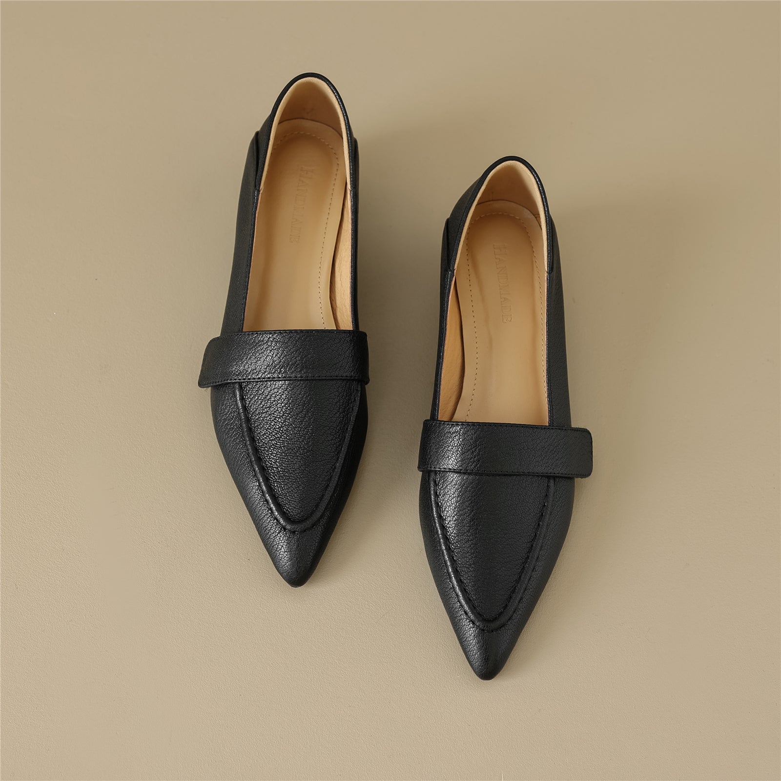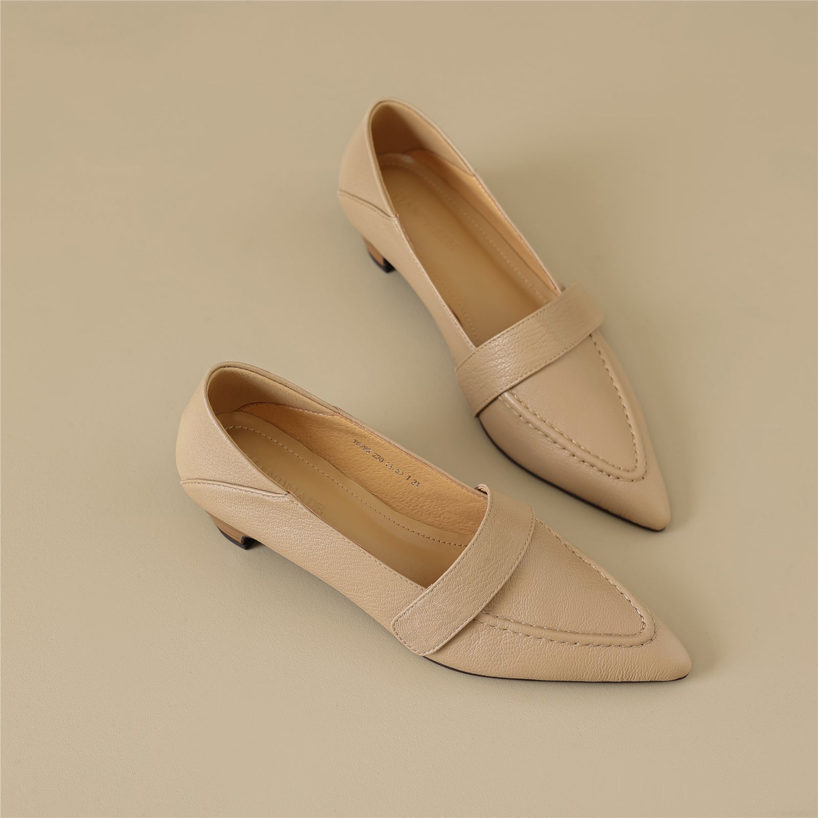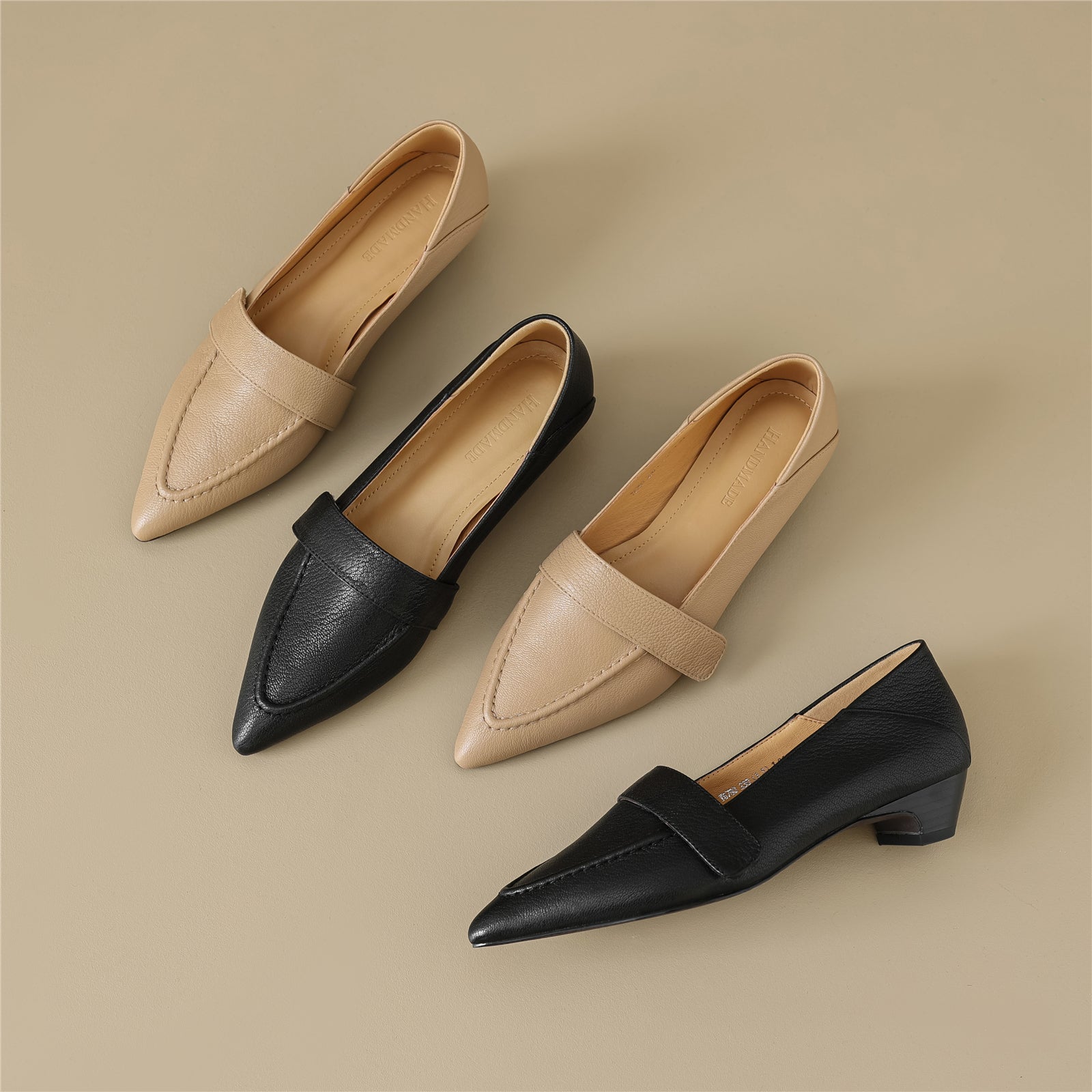 TinaCus Women's Handmade Genuine Leather Pointed Toe Slip On Heeled Shoes