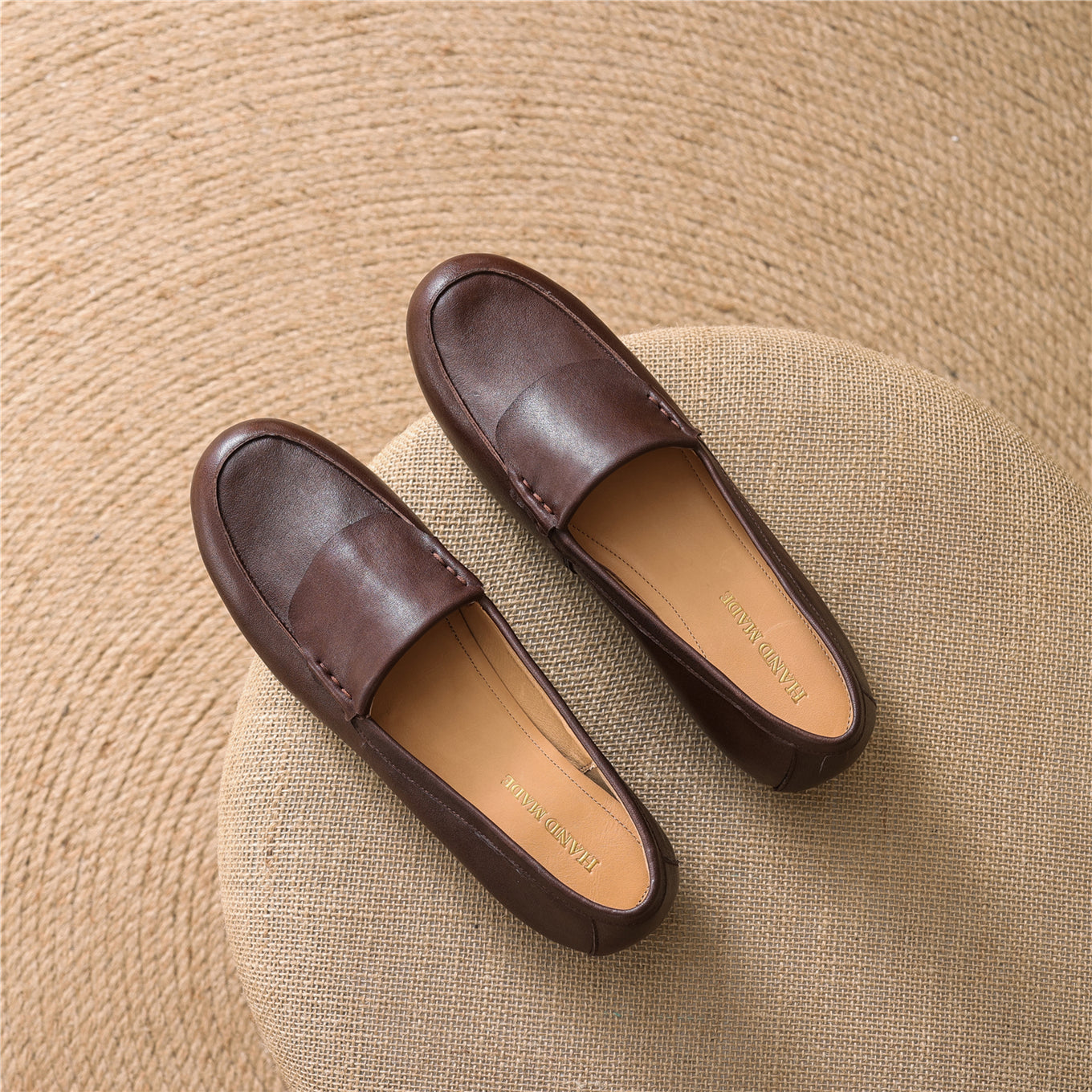 TinaCus Women's Handmade Genuine Leather Round Toe Comfortable Slip On Flat Shoes