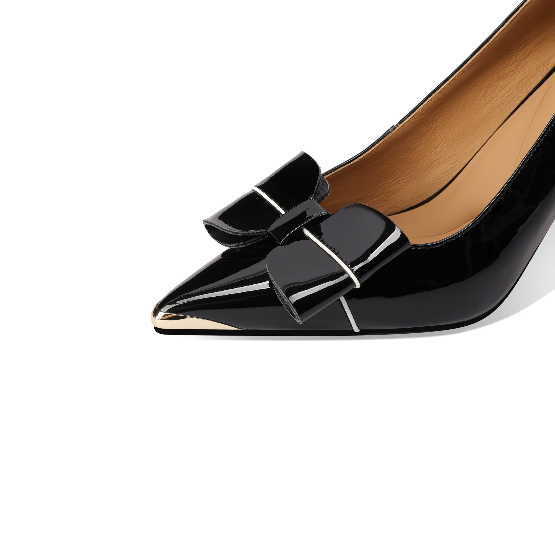 TinaCus Women's Handmade Patent Leather Pointed Toe Bowtie Slip On Stiletto Heel Pumps