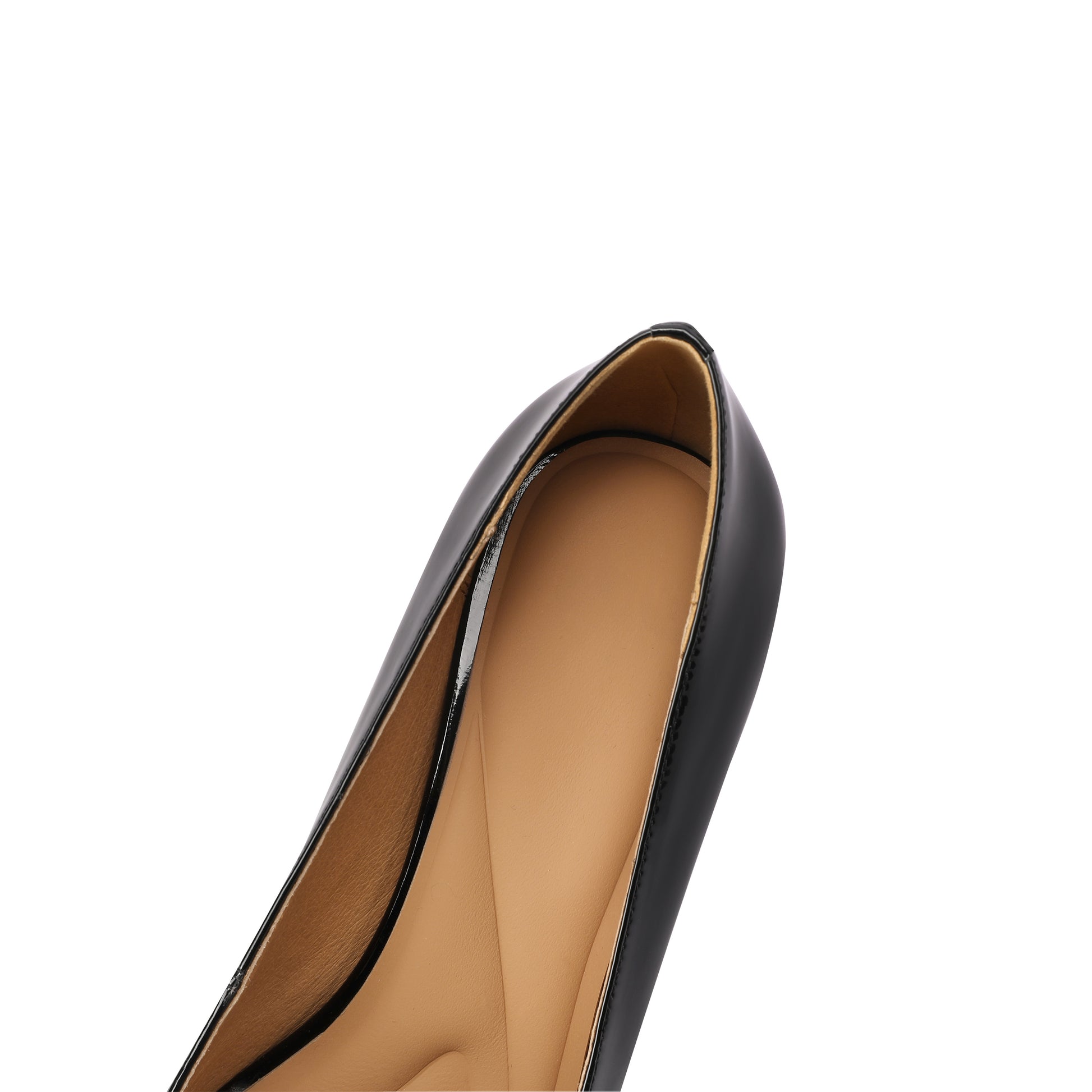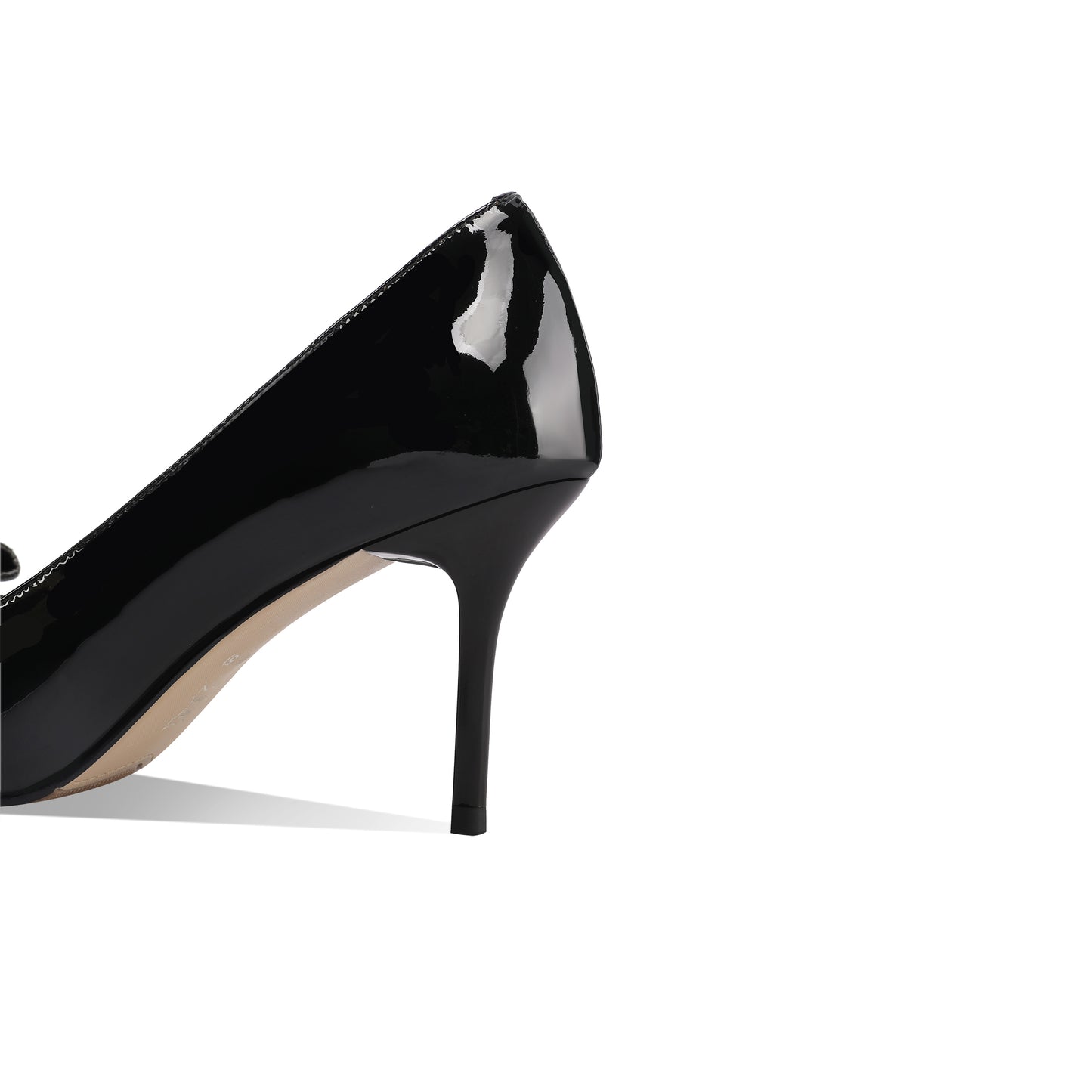 Sexy shoes with patent leather, pointed toe and slip on closure can go with your dress, jeans and pants.