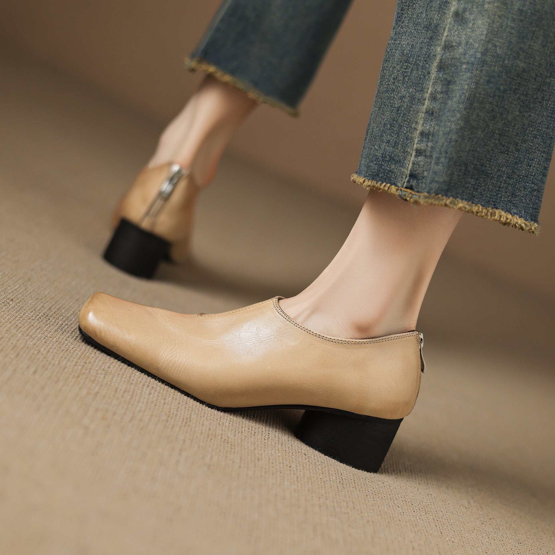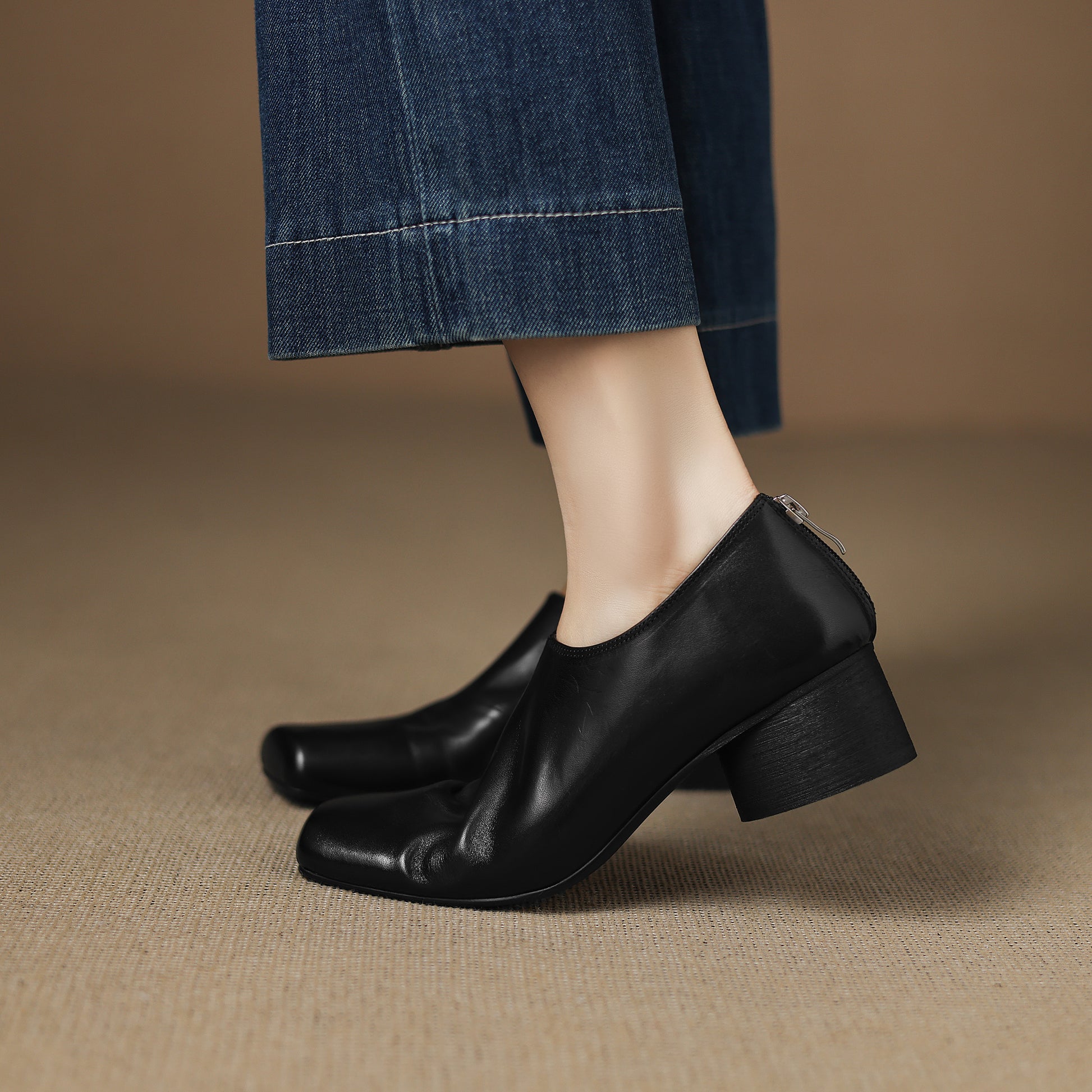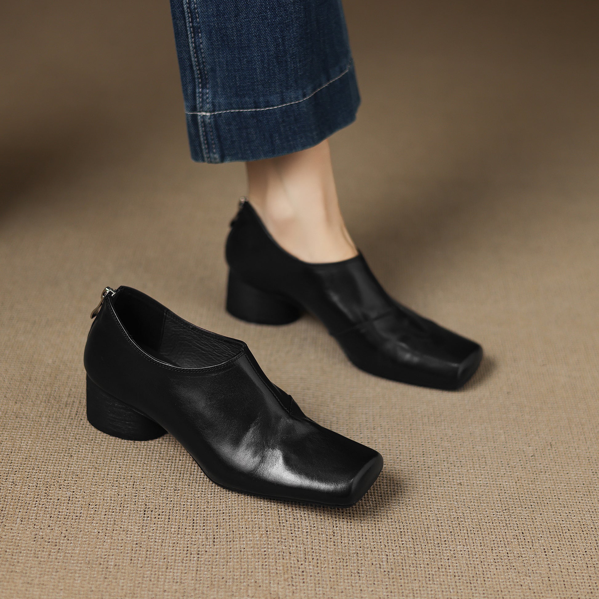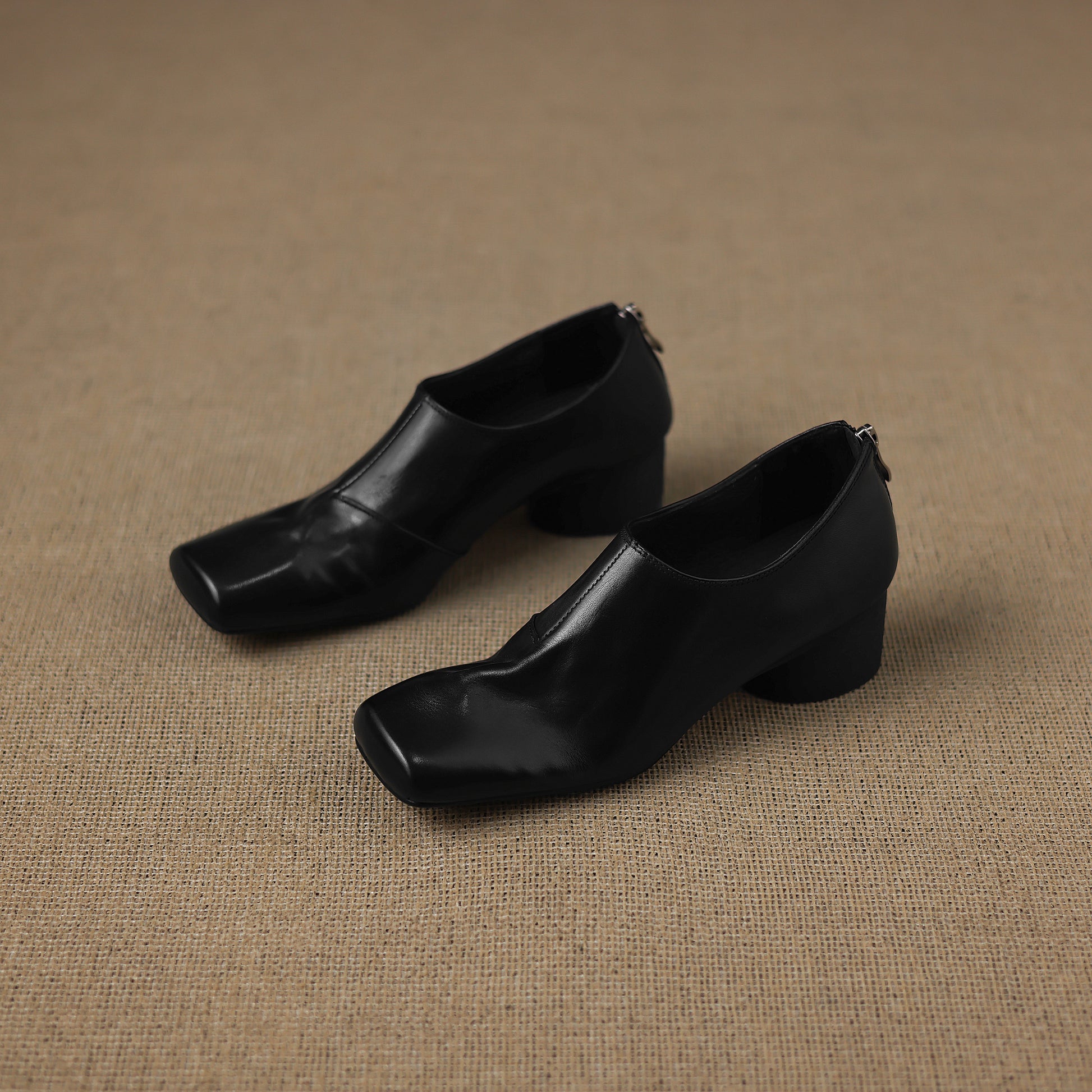 TinaCus Women's Oxford Pumps Handmade Genuine Leather Square Toe Back Zipper Office Business Shoes