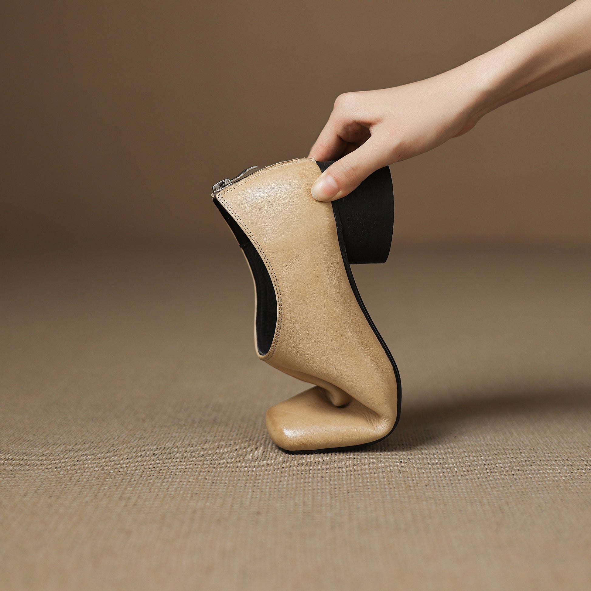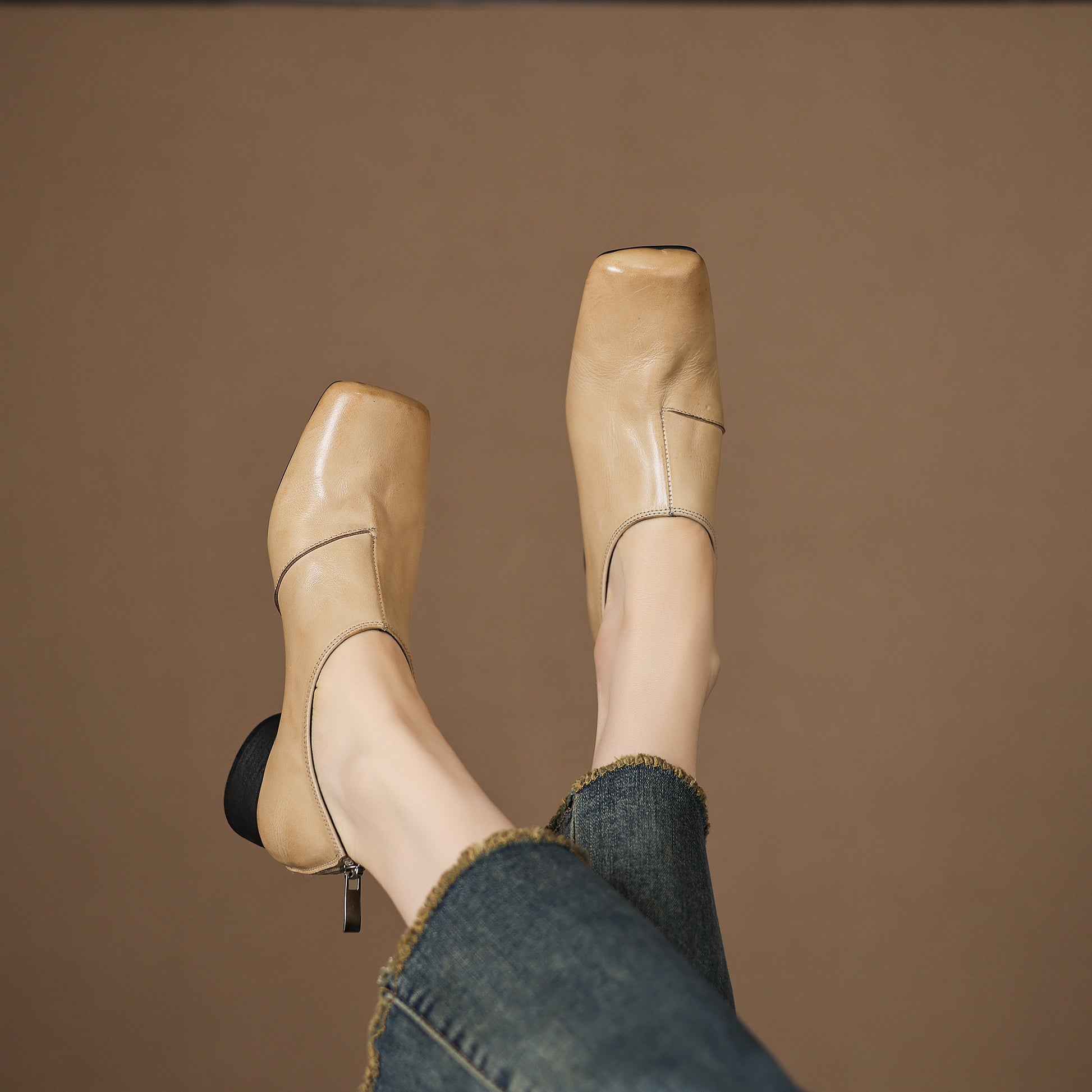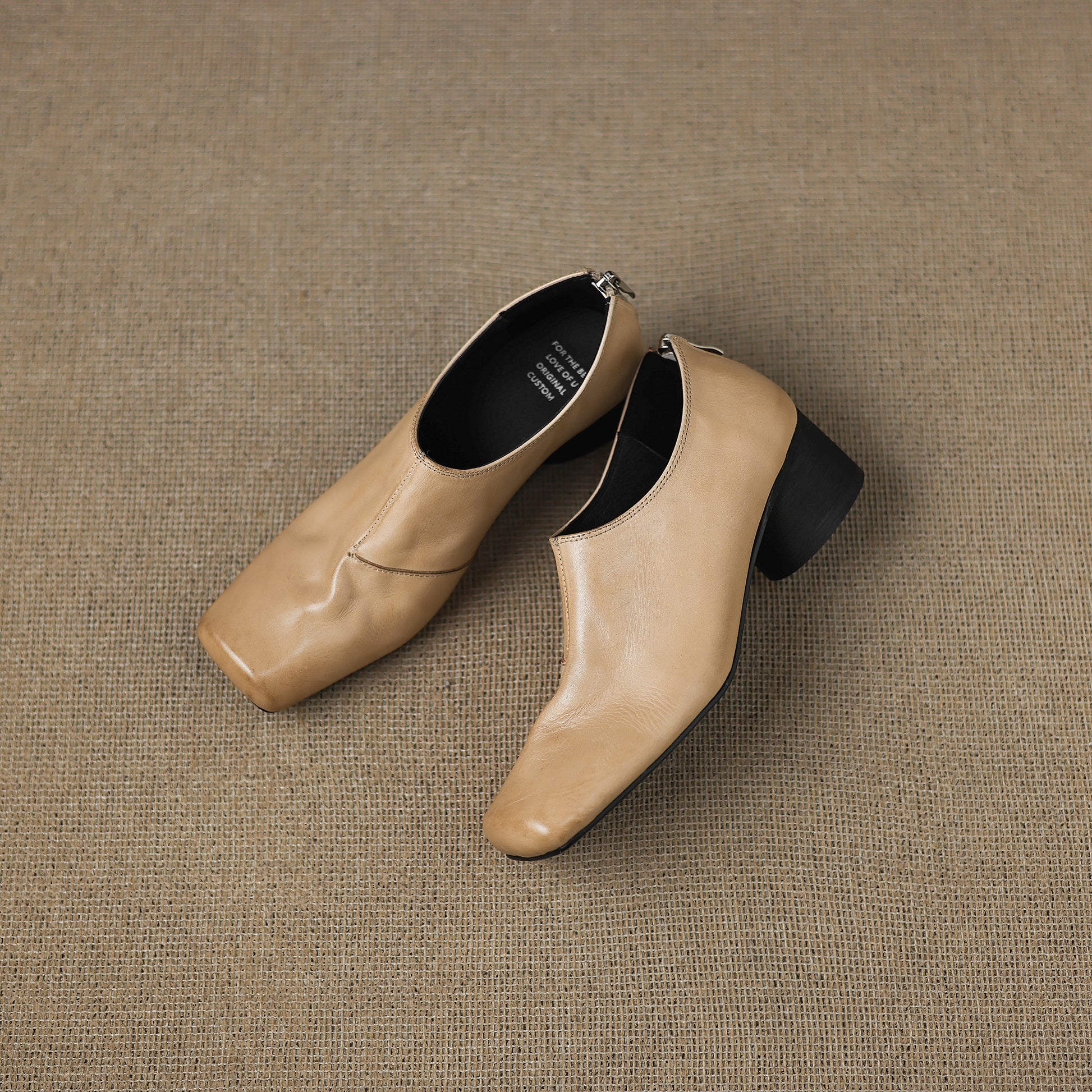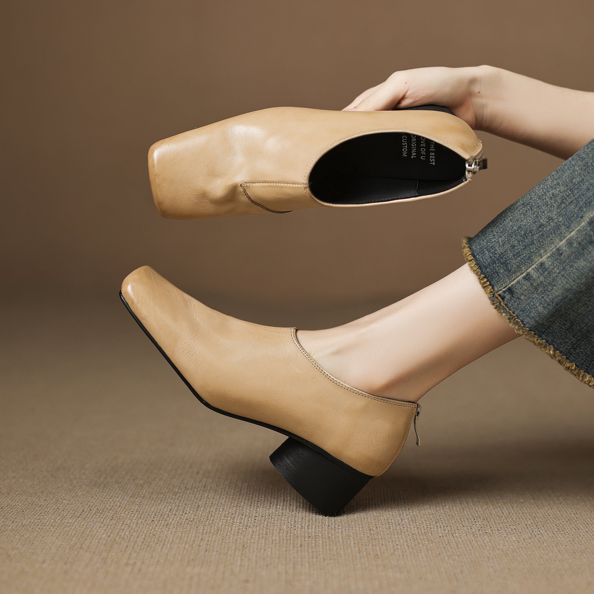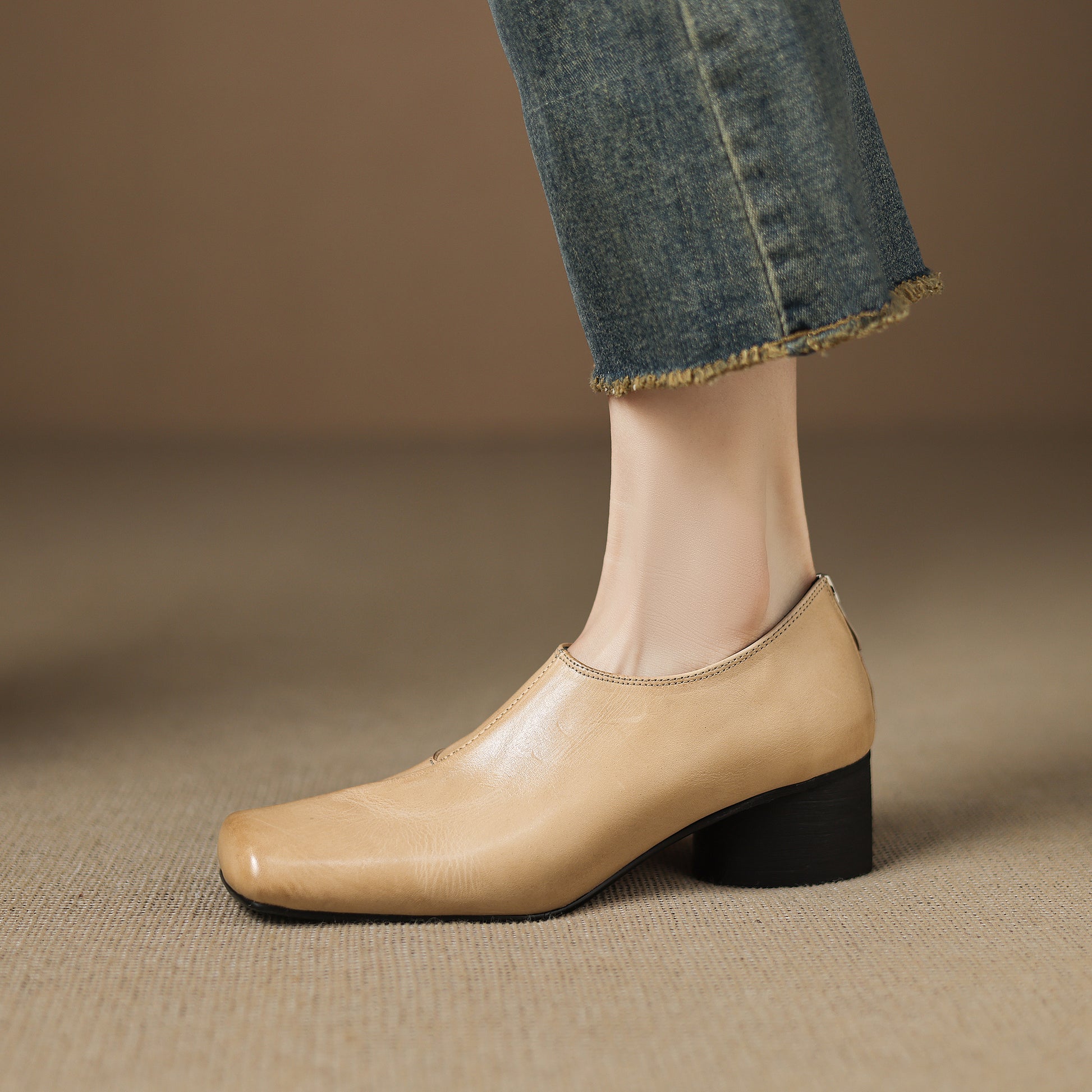TinaCus Women's Oxford Pumps Handmade Genuine Leather Square Toe Back Zipper Office Business Shoes