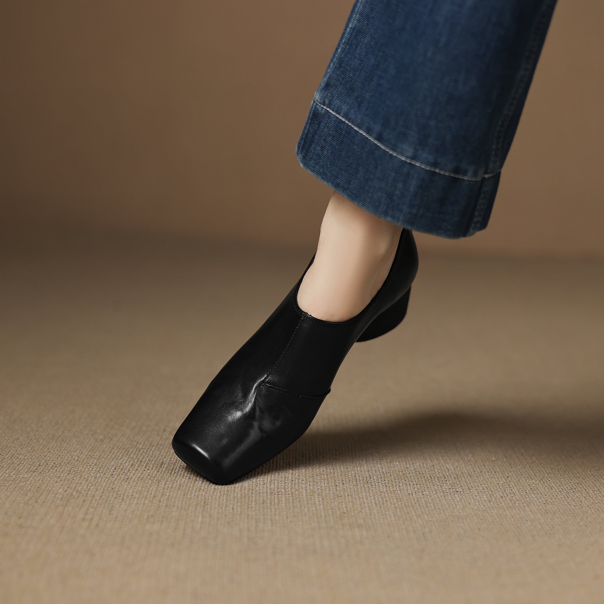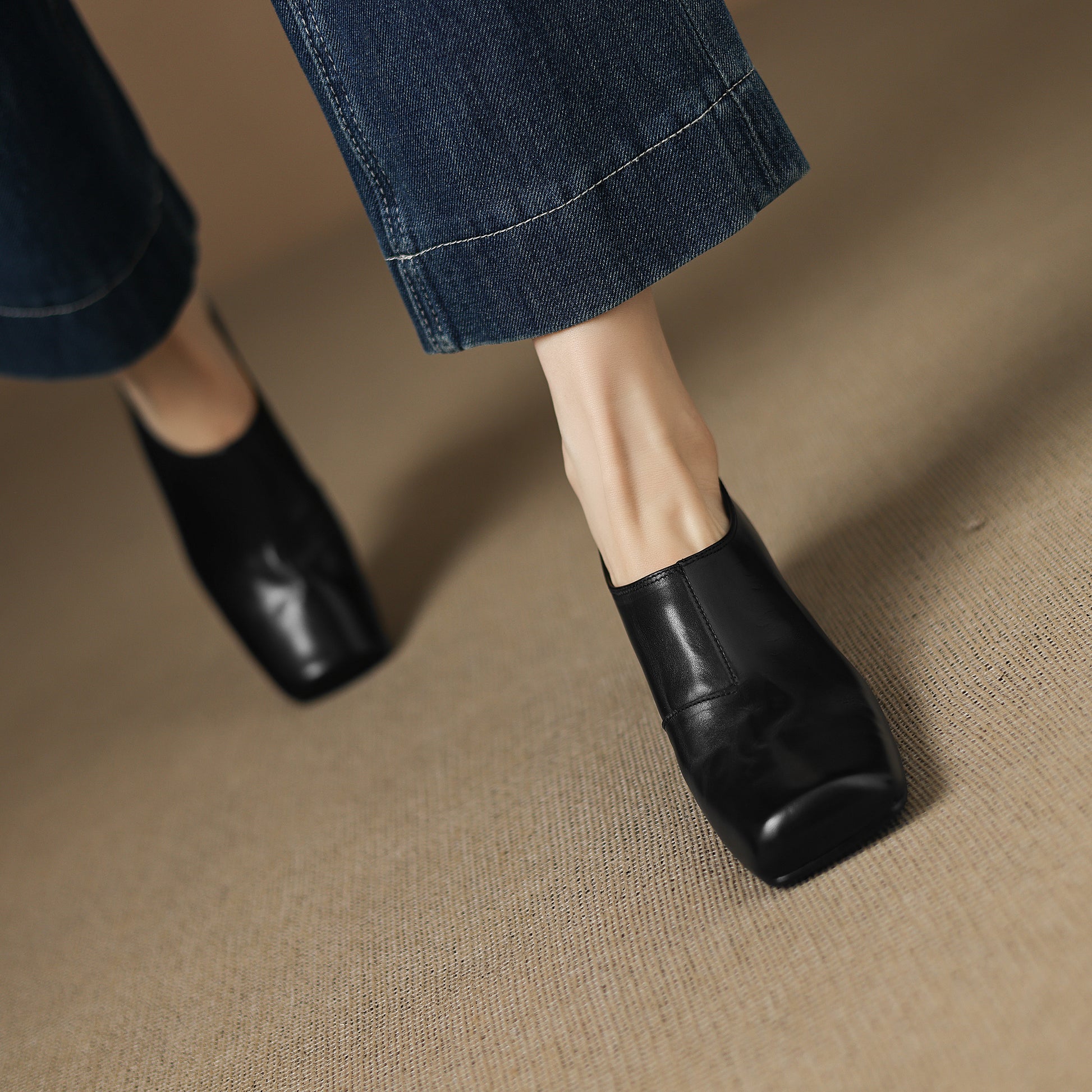 These women's solid-color loafers are crafted from genuine leather and feature a simple, minimalist style with a chunky heel.