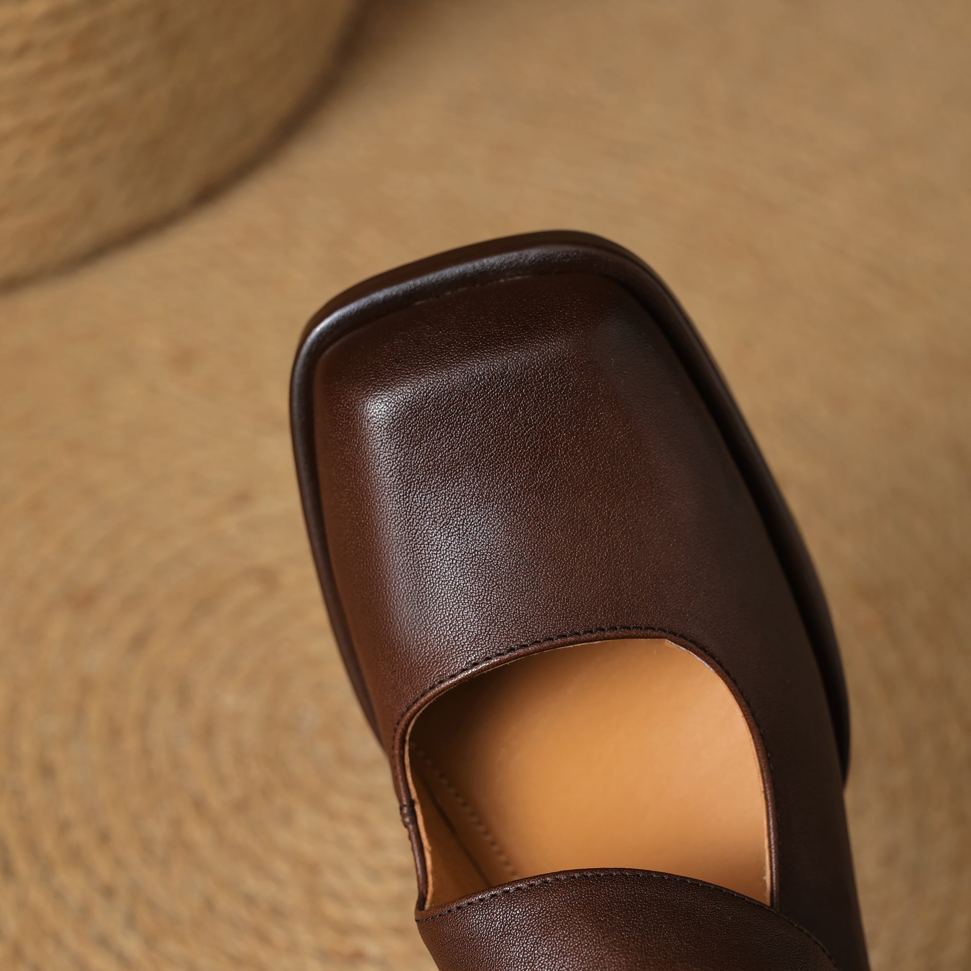 Genuine leather loafers shoes with square toe and low heels can make you feel comfortable