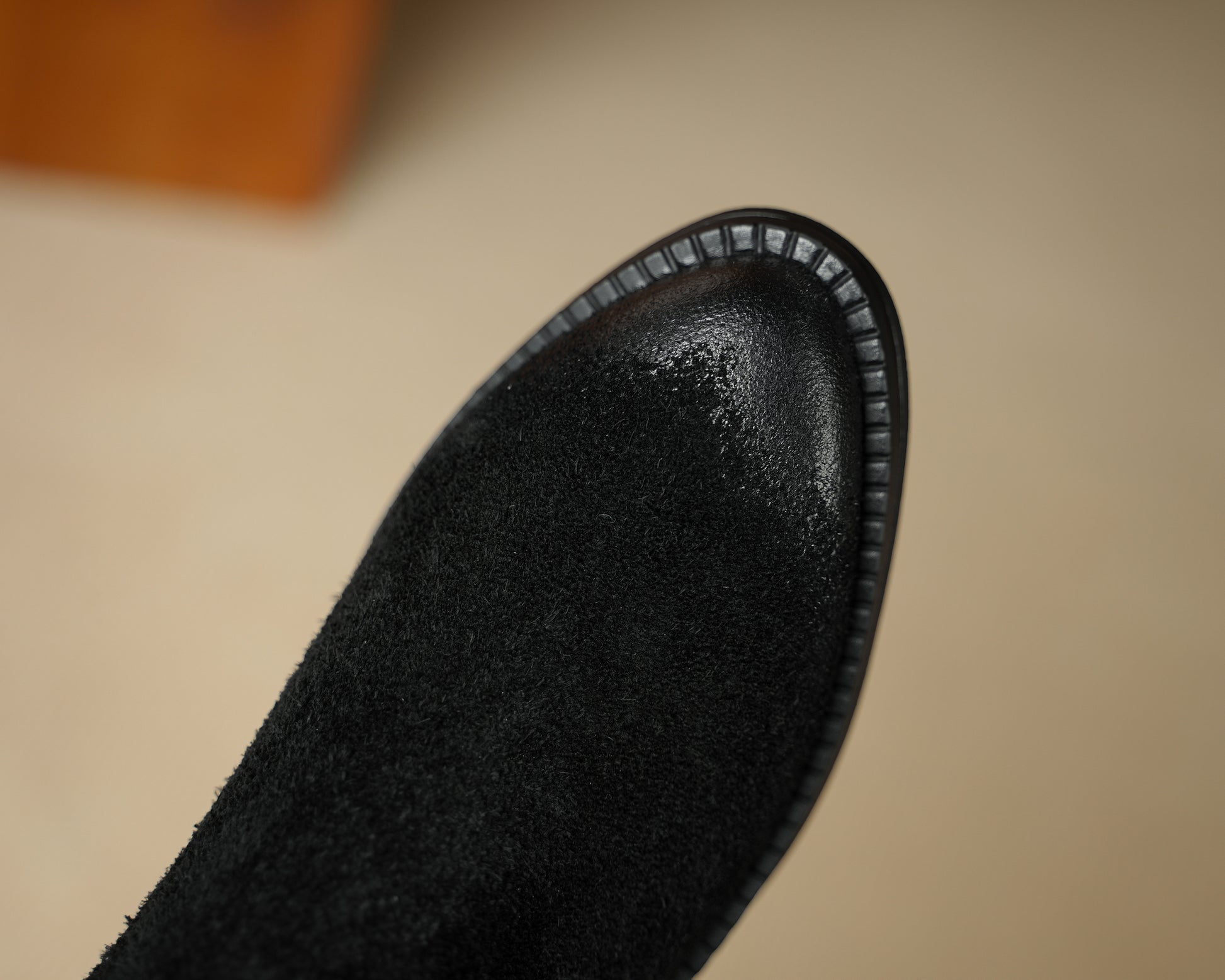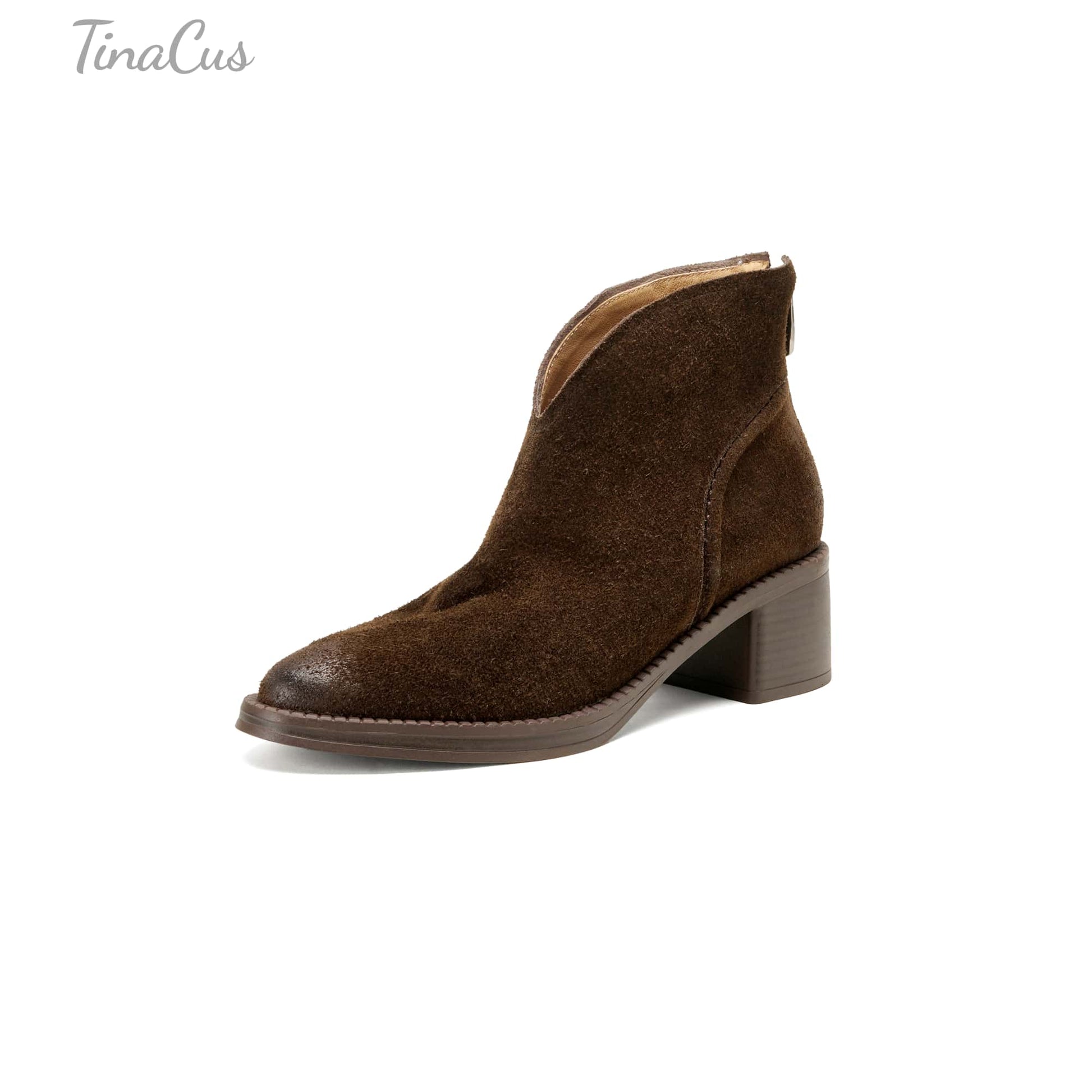 TinaCus Women's Suede/Genuine Leather Handmade V-cut Round Toe Stacked Heel Back Zip Up Ankle Booties