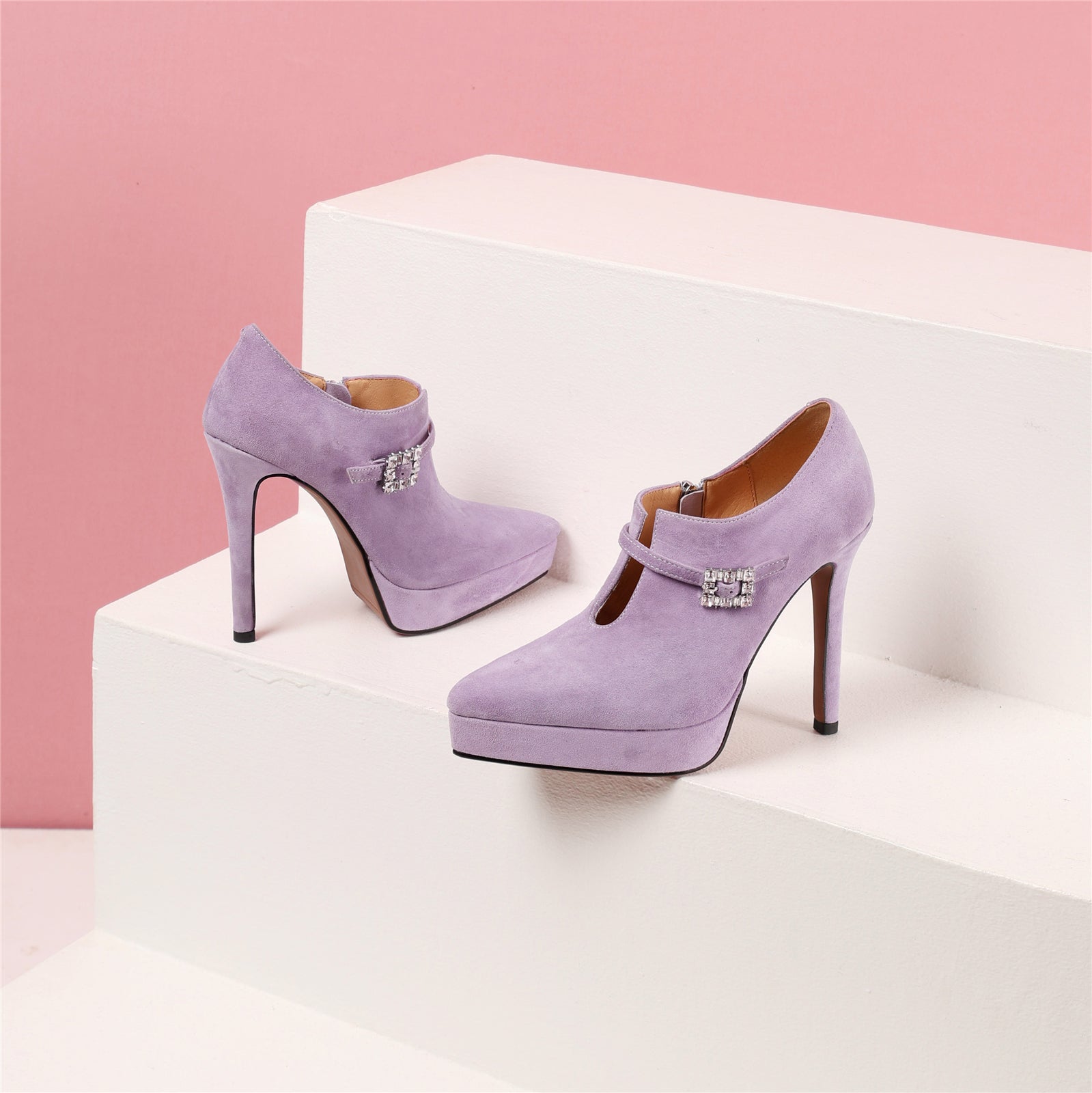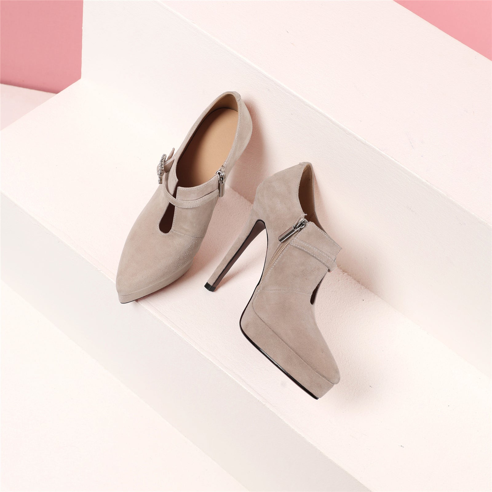 TinaCus Women's Suede Leather Platform High Stiletto Heel Handmade Buckle Side Zip Pumps