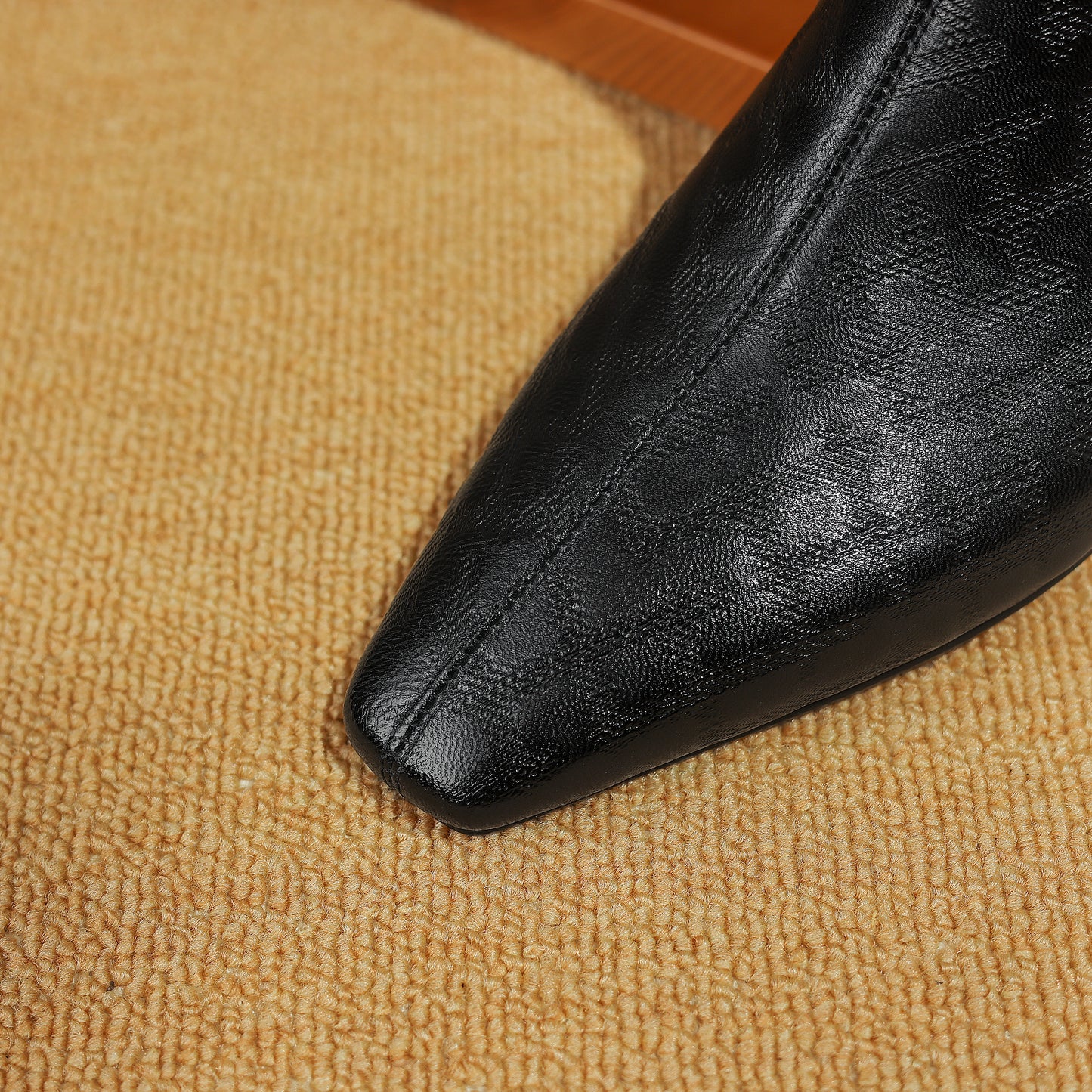 TinaCus Women's Zip Up Genuine Leather Square Toe Handmade Chunky Heel Ankle Boots