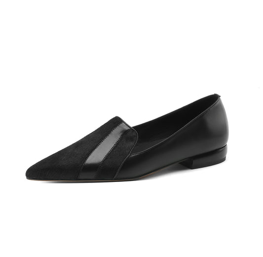 TinaCus Handmade Women's Genuine Leather Fur Pointed Toe Slip On Comfortable Flat Shoes