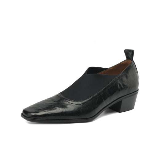 TinaCus Women's Handmade Genuine Leather Chunky Heel Slip On Pumps