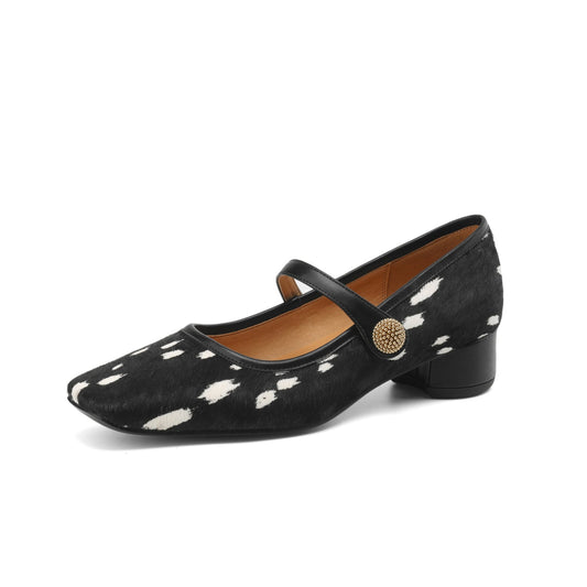 TinaCus Women's Handmade Block Heel Genuine Leather Horsehair Mary Jane Pumps
