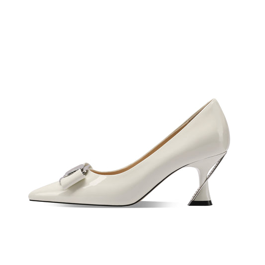 TinaCus Handmade Patent Leather Women's Bowknot Pointed Toe Metal Heel Pumps