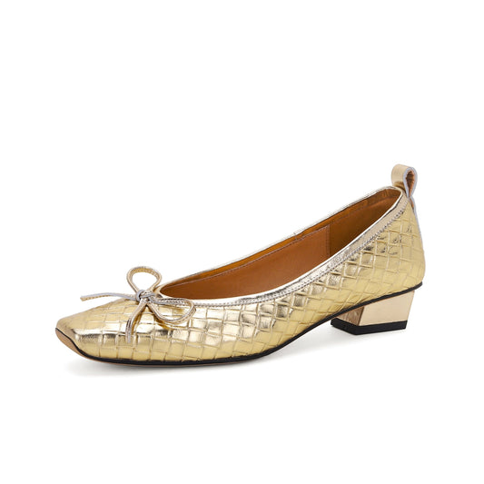 TinaCus Women's Handmade Genuine Leather Bowtie Chunky Heel Pumps