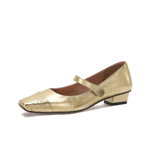 TinaCus Handmade Genuine Leather Women's Buckle Design Square Toe Pumps