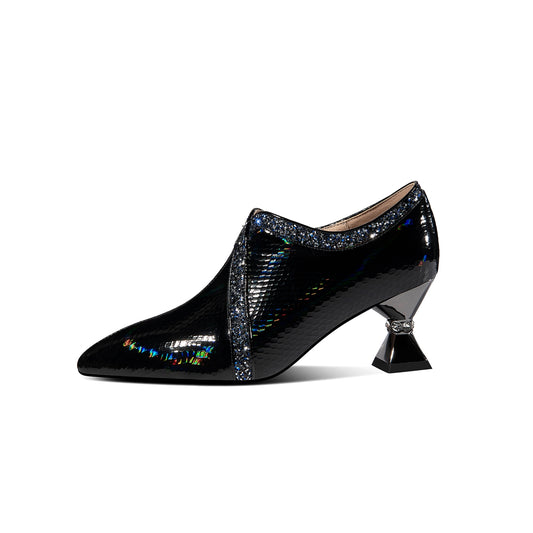 TinaCus Handmade Women's Glossy Patent Leather Slip On Side Zipper Pointed Toe Low Spool Heel Pumps Shoes