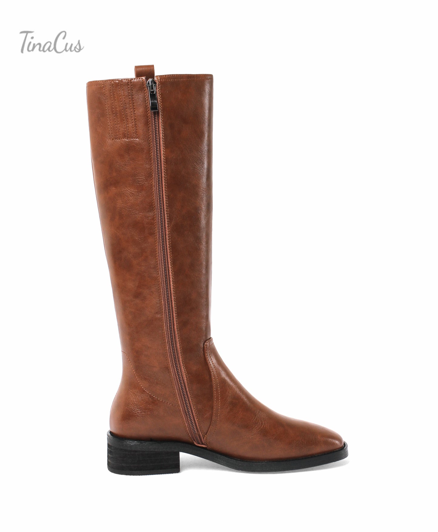 TinaCus Women's Handmade Genuine Leather Round Toe Low Block Heel Side Zip Up Western Style Knee High Riding Boots
