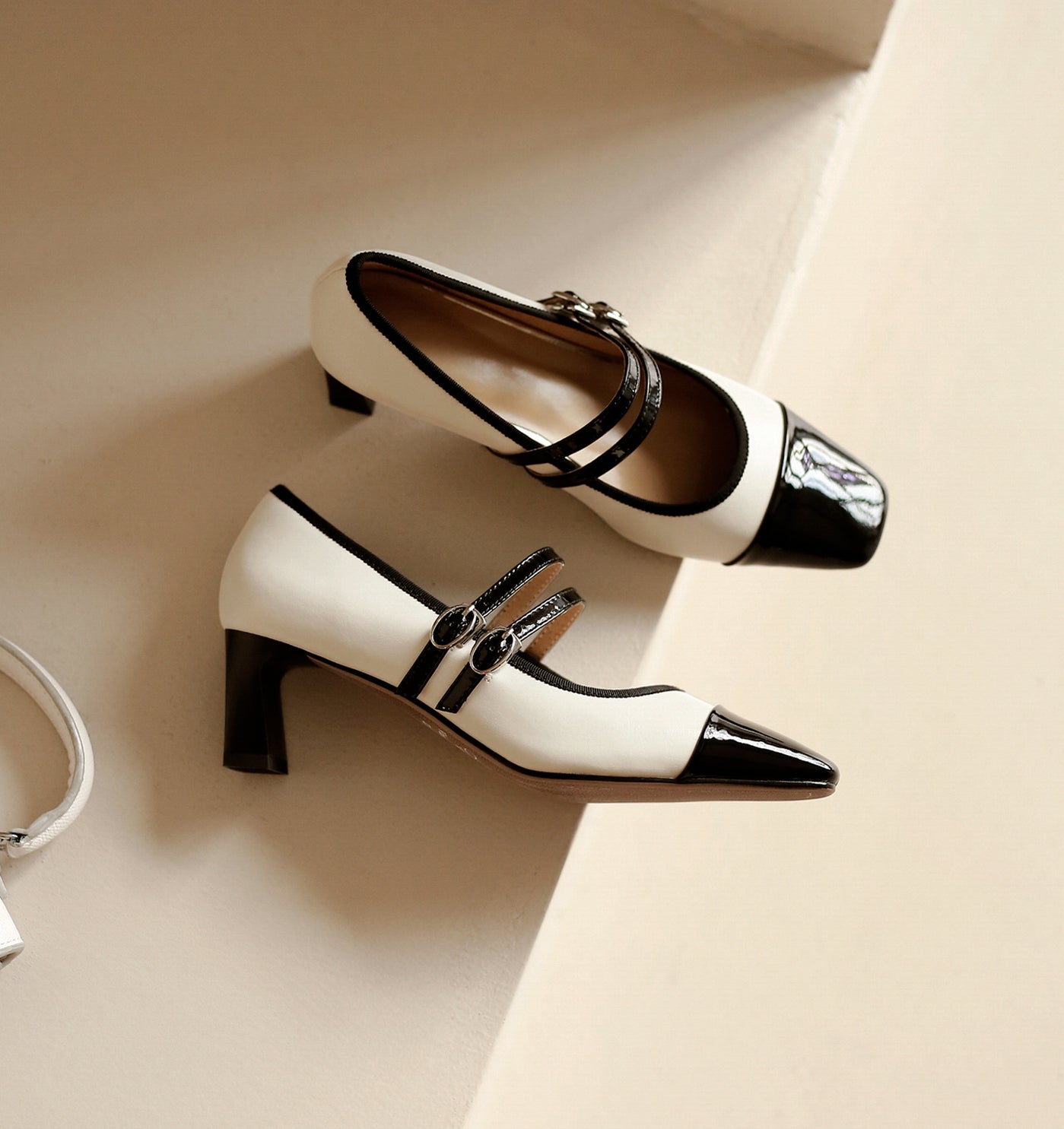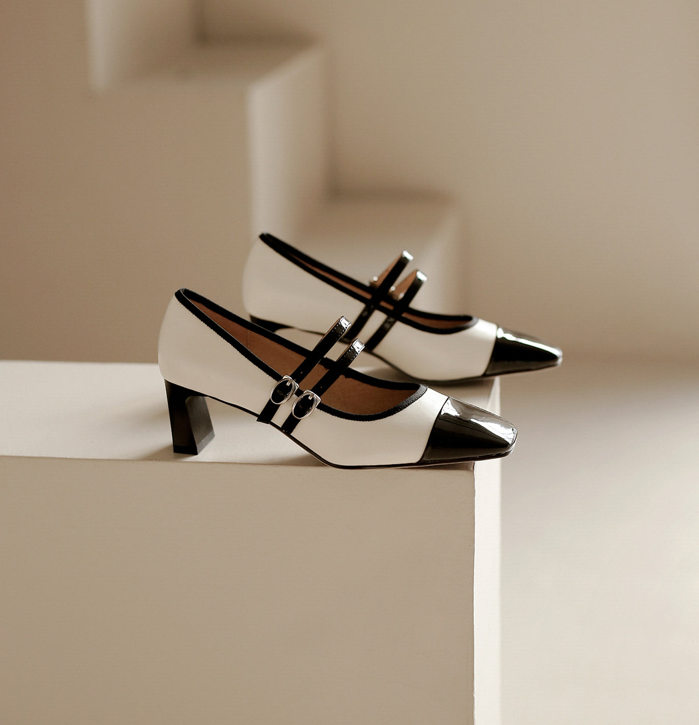 Mary jane dress pumps are designed with leather, square toe, mid heel, double buckles to keep up with fashion trend and give you visual enjoyment.