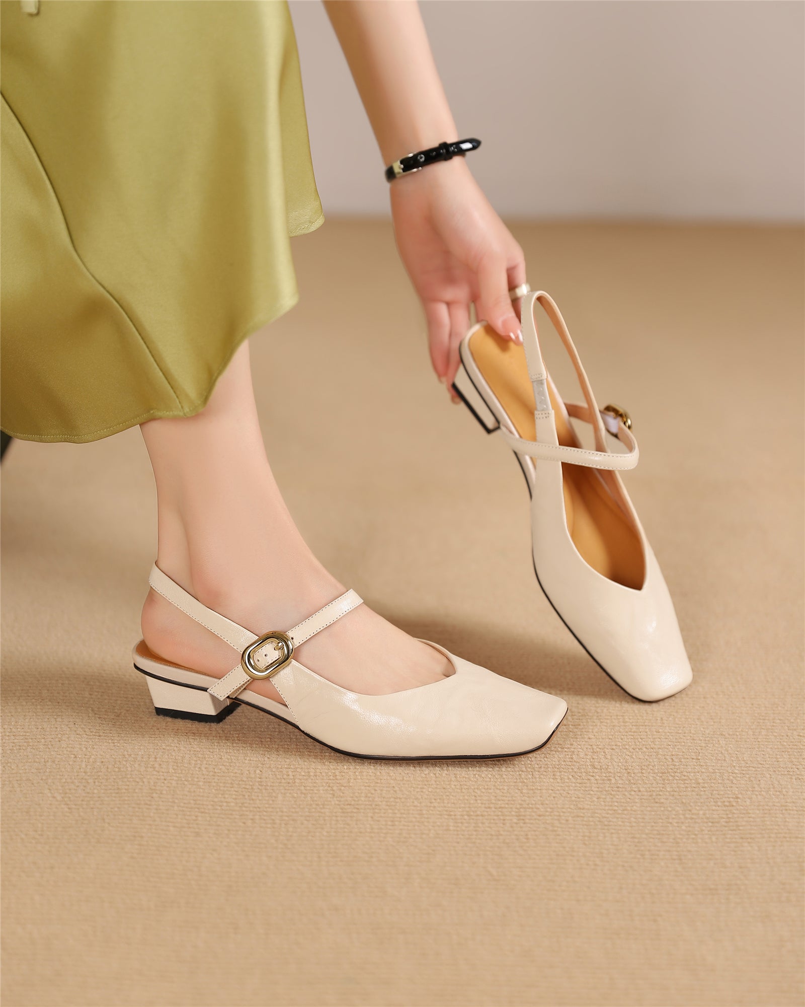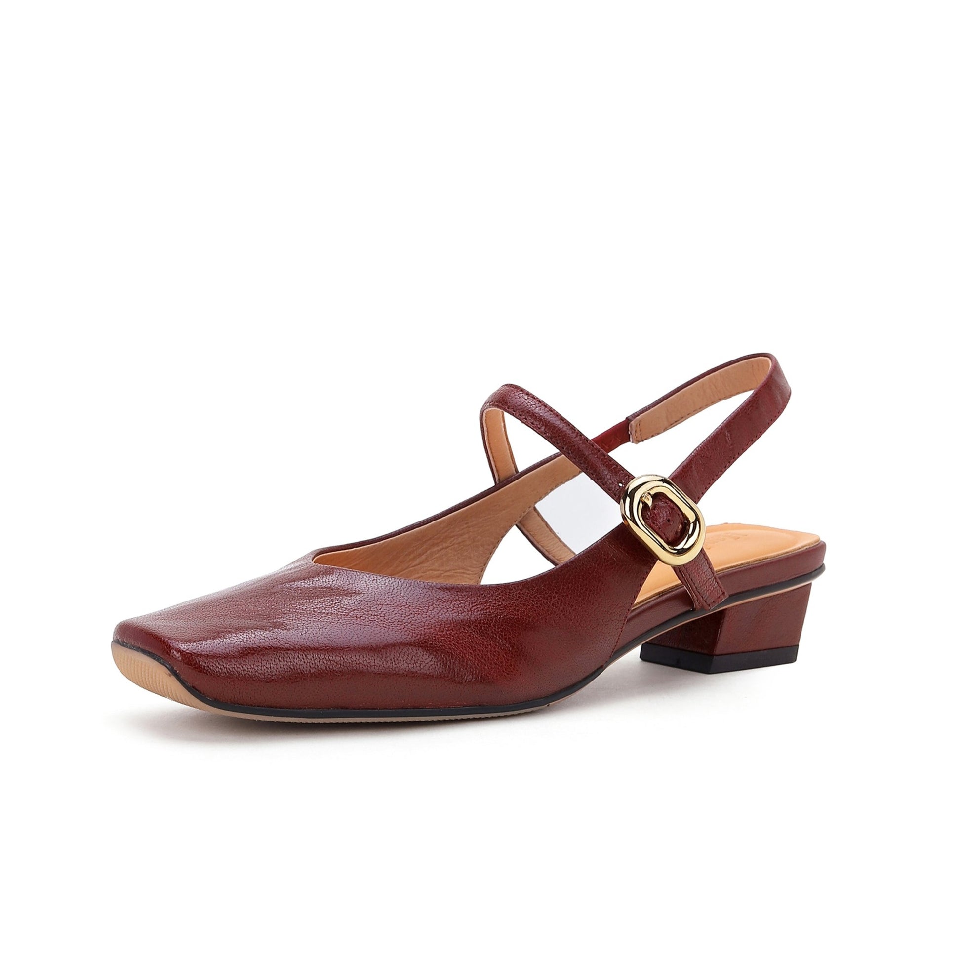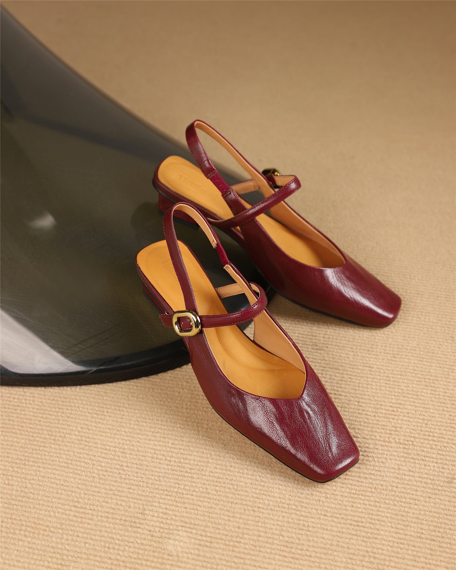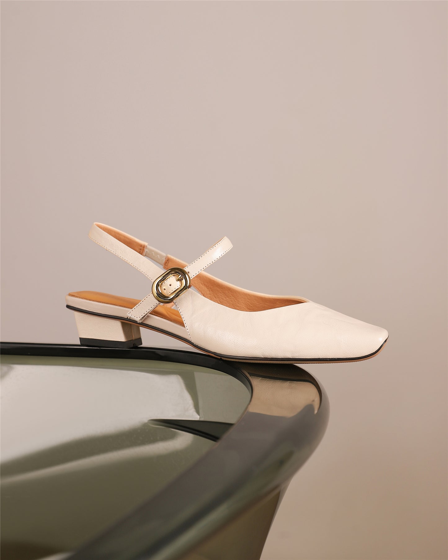TinaCus Women's Buckle Genuine Leather Handmade Chunky Heel Slingback Sandal Pumps