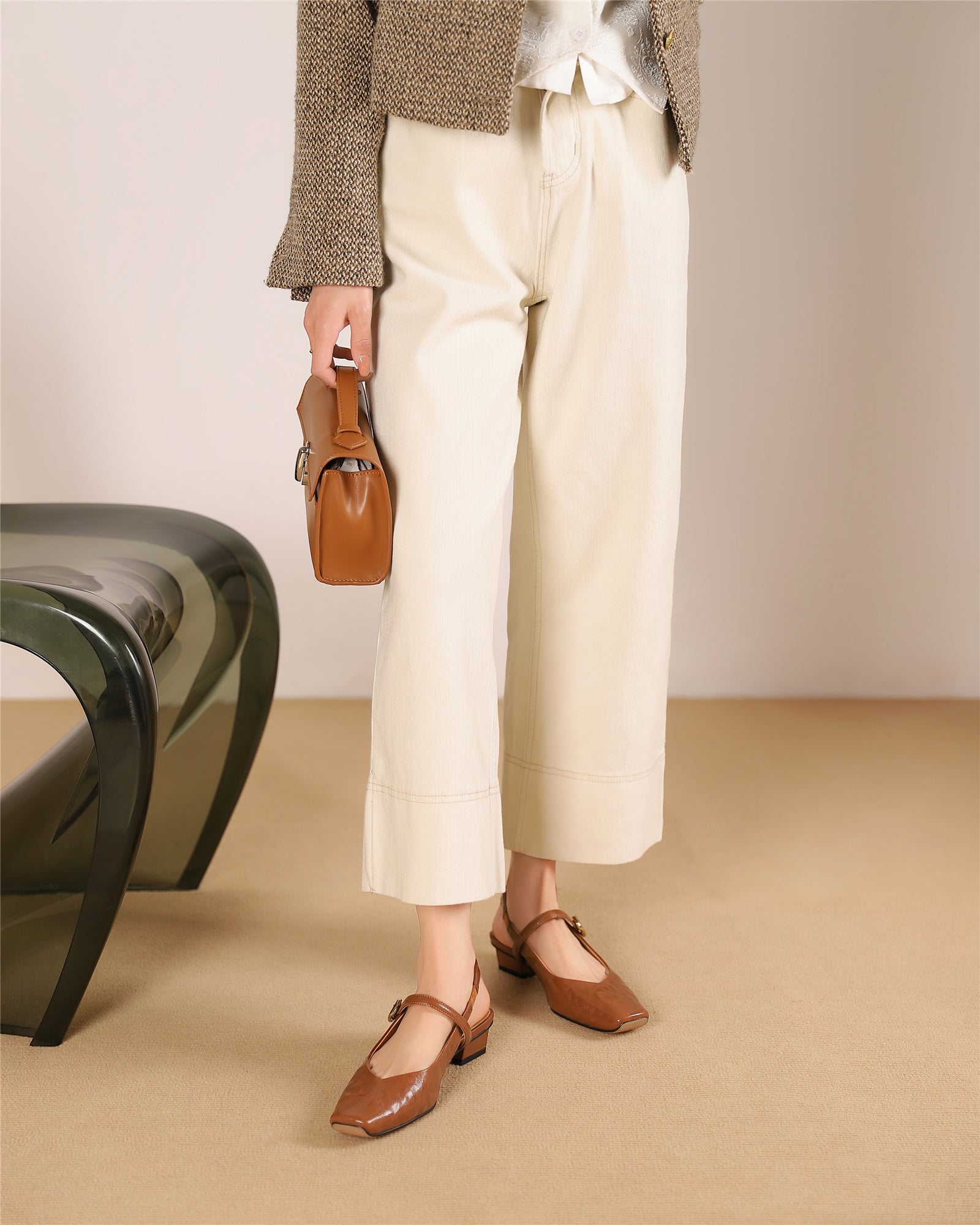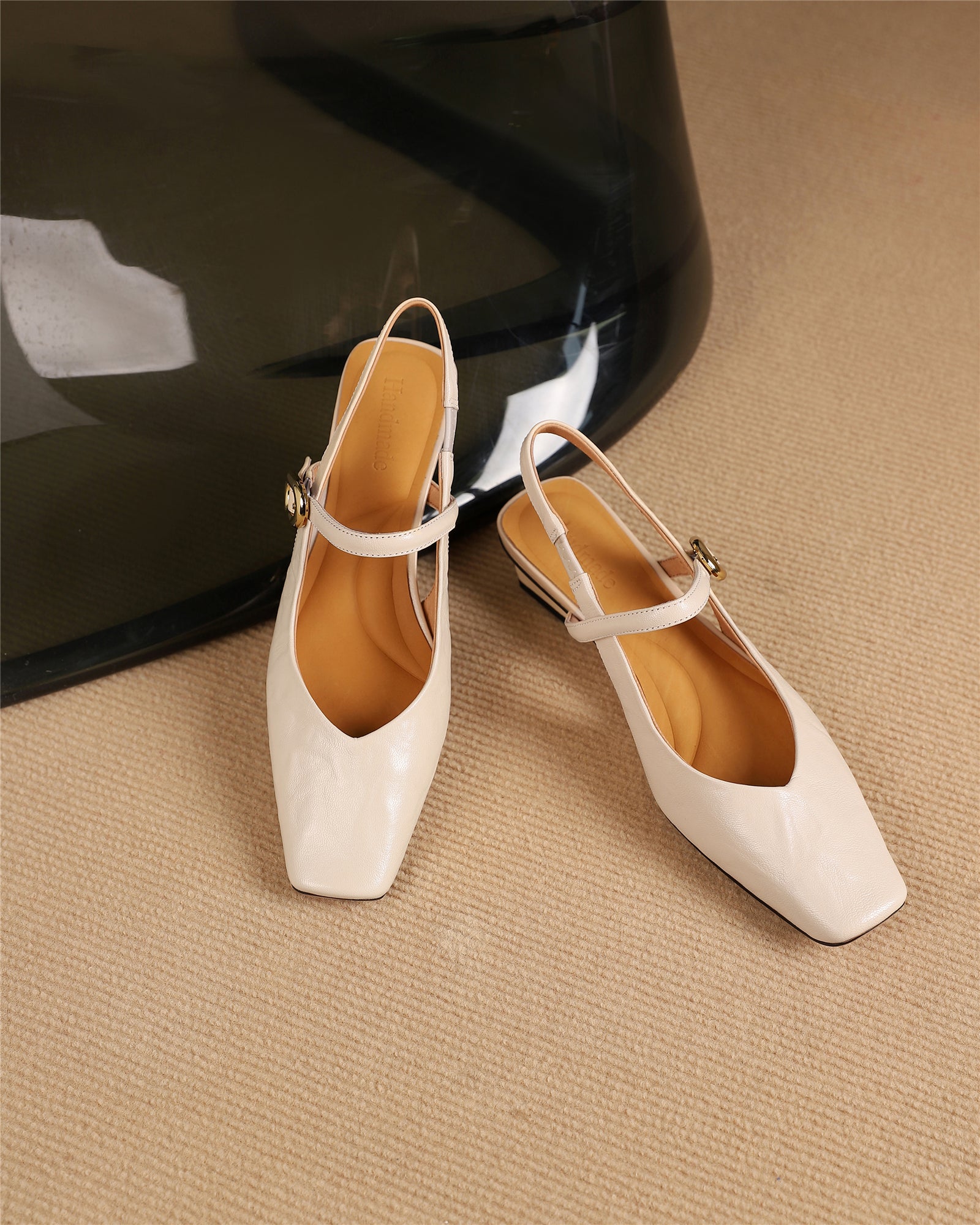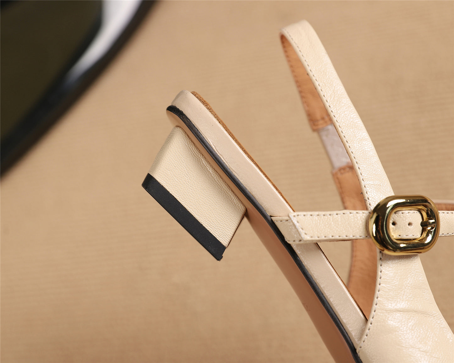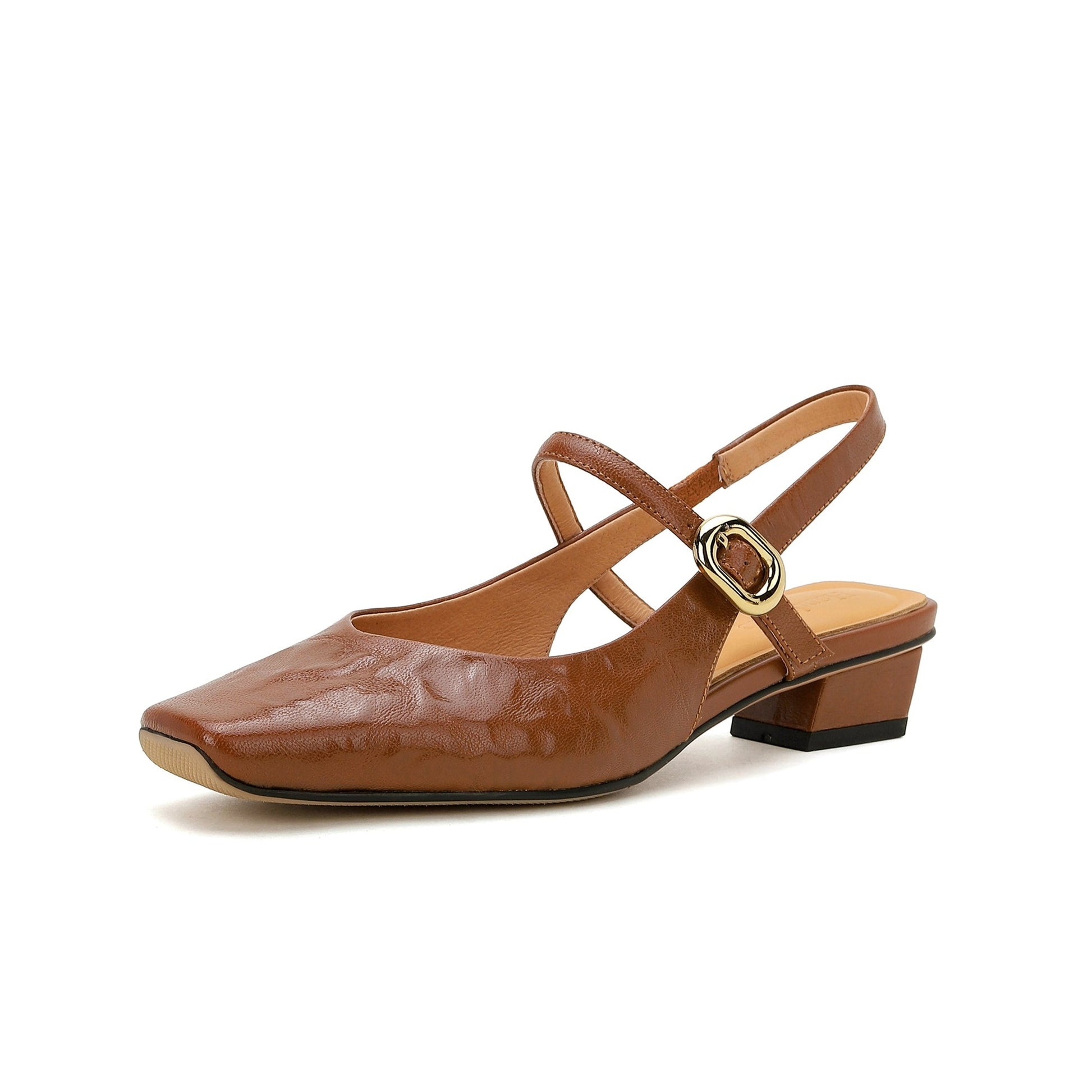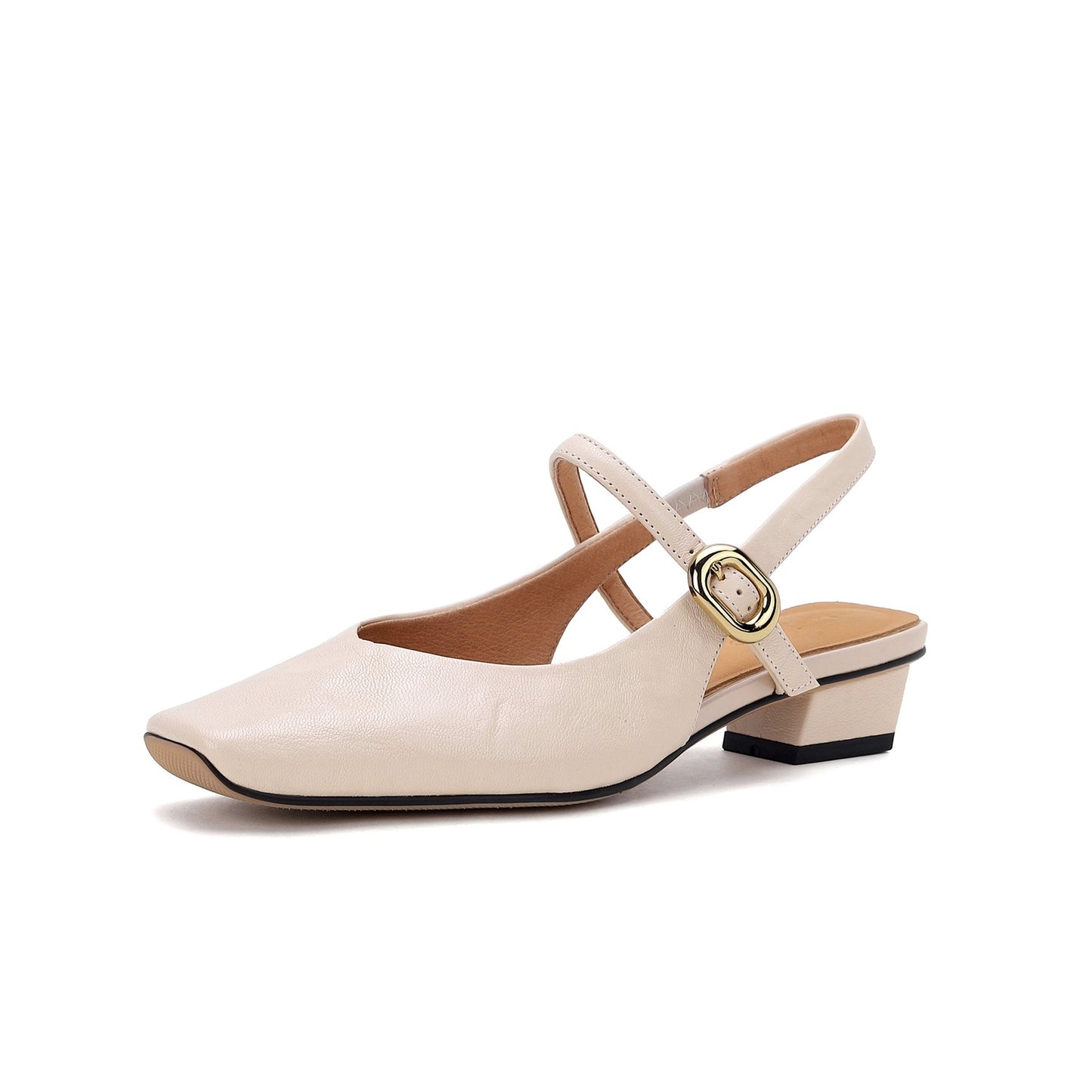 TinaCus Women's Buckle Genuine Leather Handmade Chunky Heel Slingback Sandal Pumps
