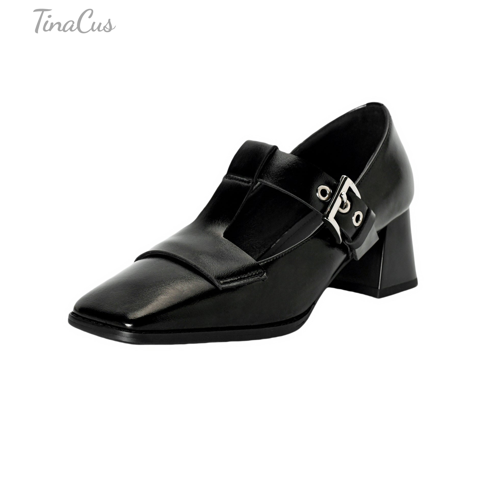 Genuine leather mary jane shoes designed with square toe, buckle and chunky heels to keep up with fashion trend