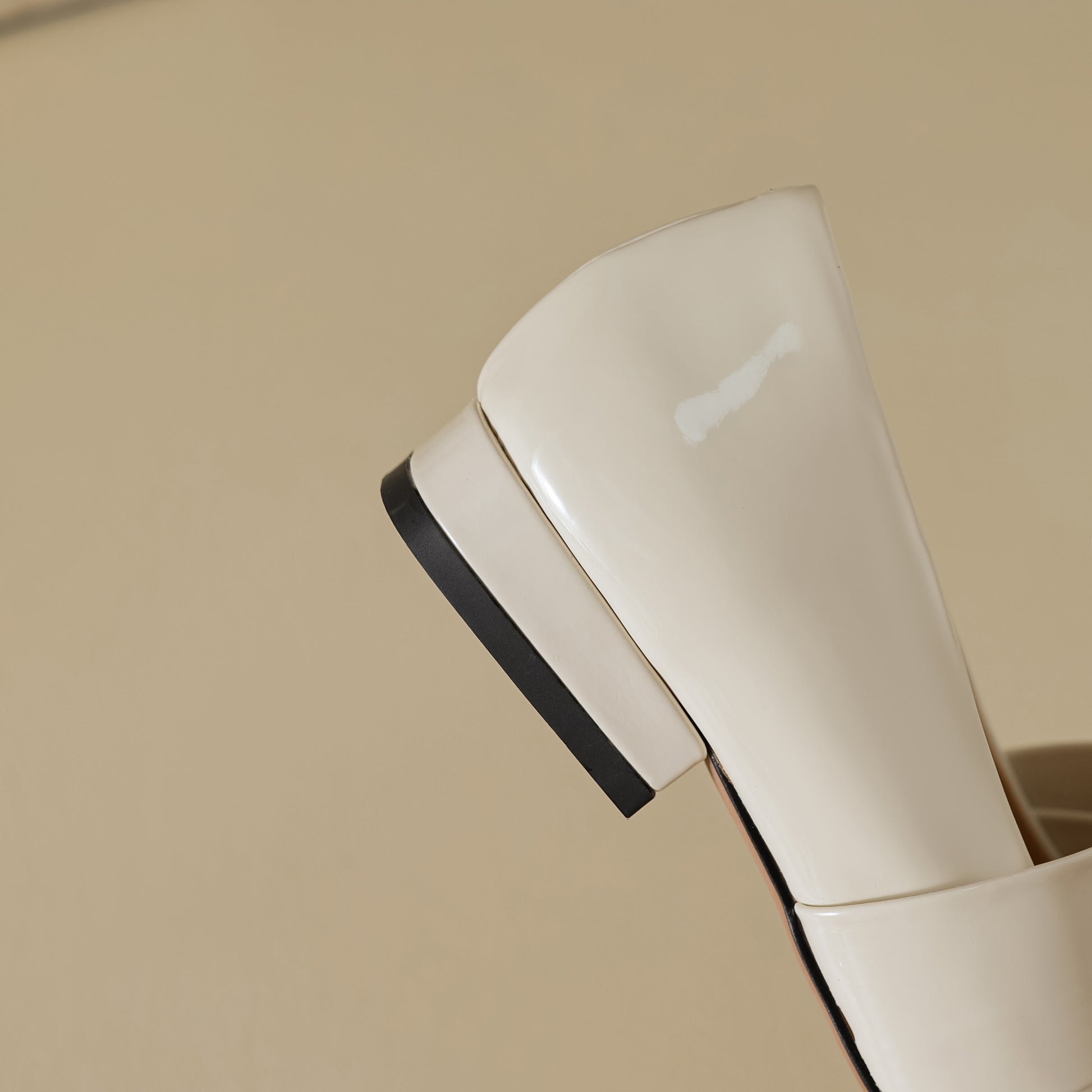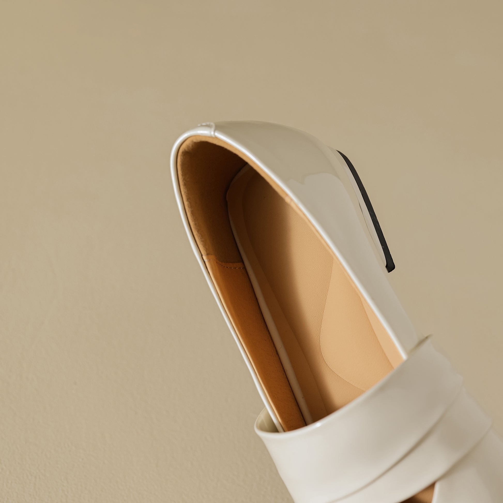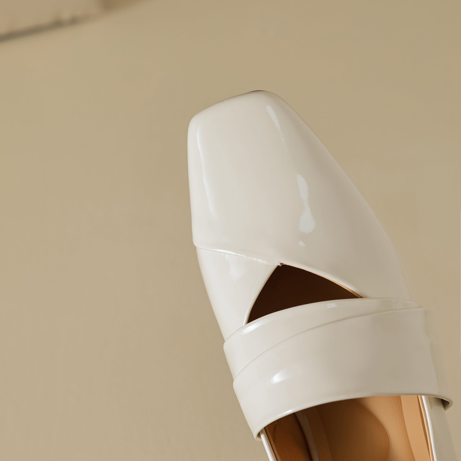 Patent leather shoes with square toe and flats can make you feel comfortable