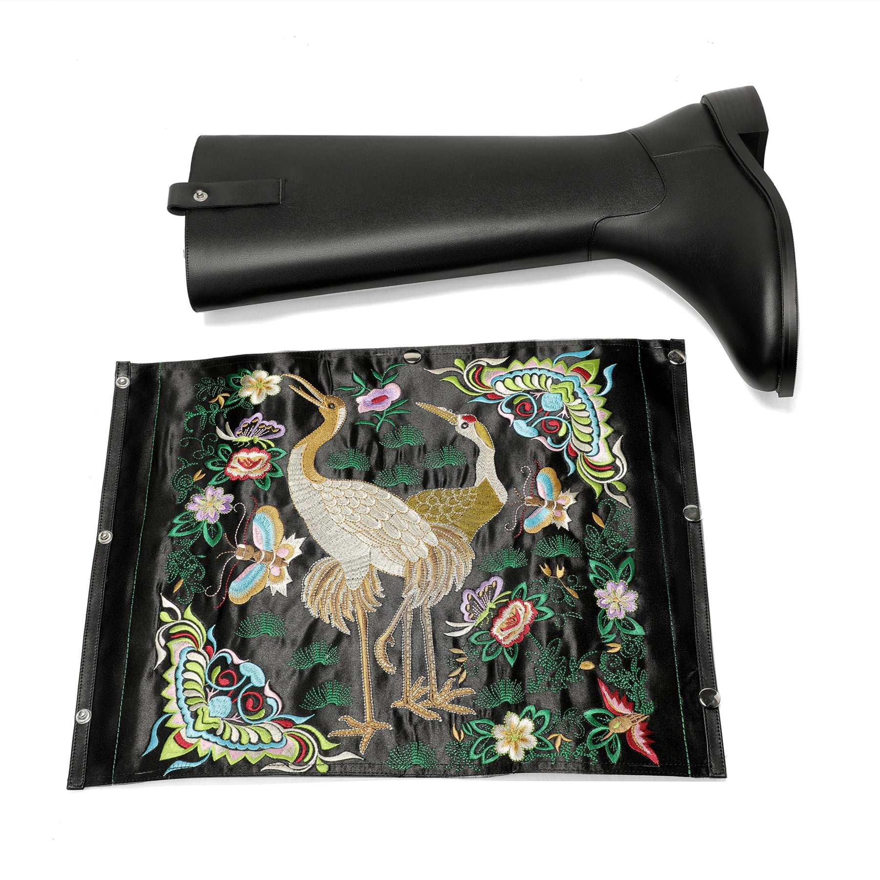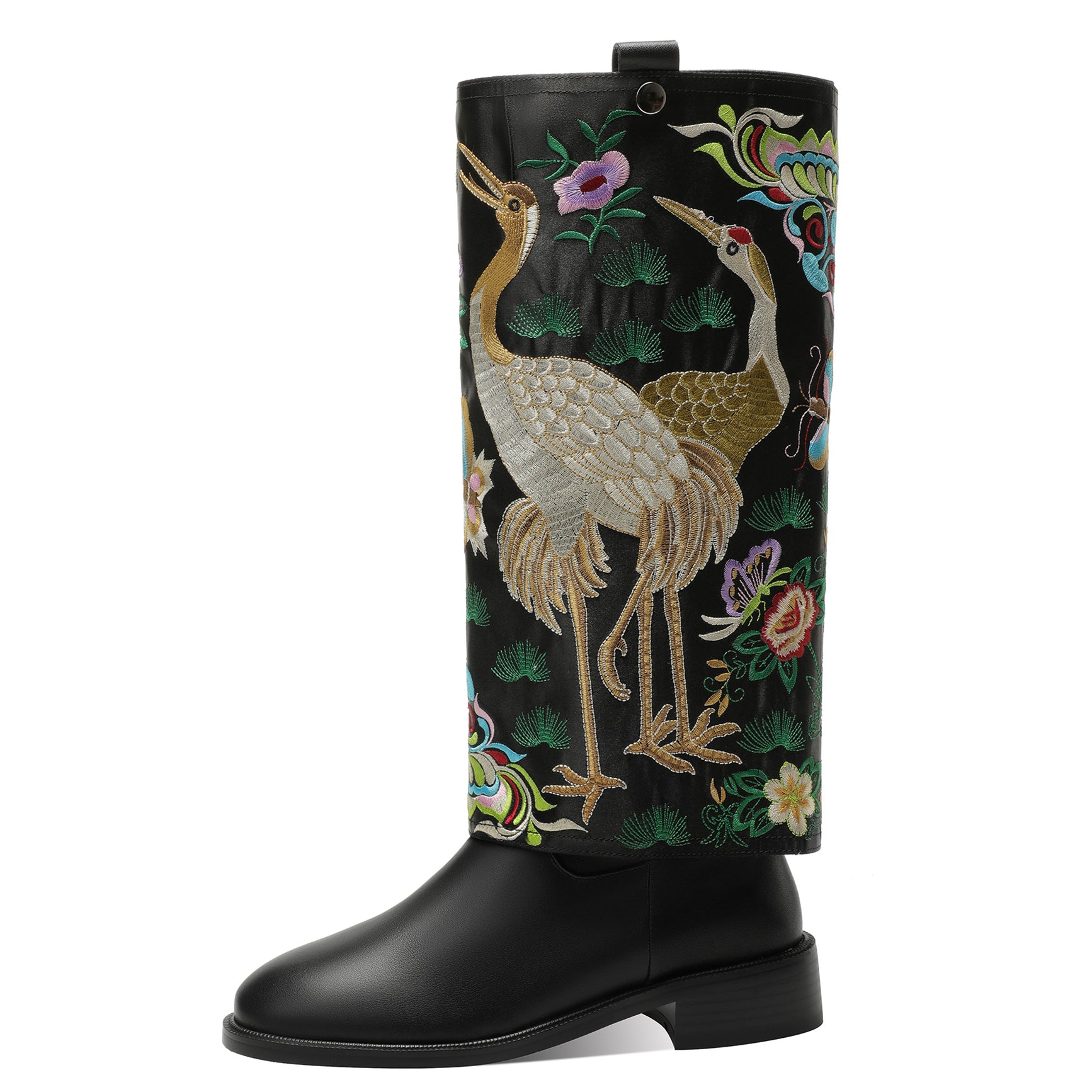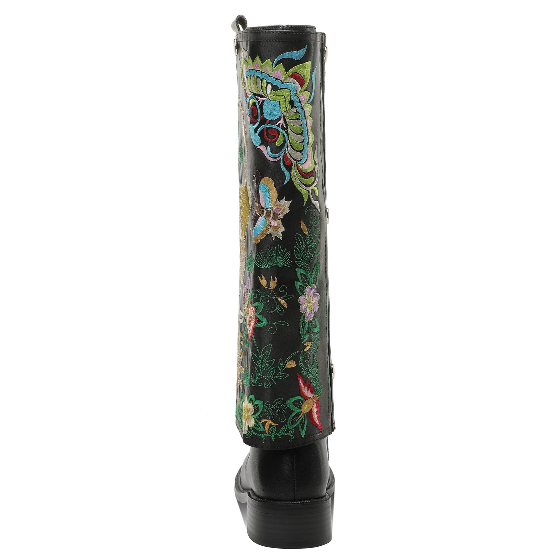 TinaCus Handmade Women's Genuine Leather Detachable Two Styles Zip Up Embroidery Bird Flowers Knee High Boots