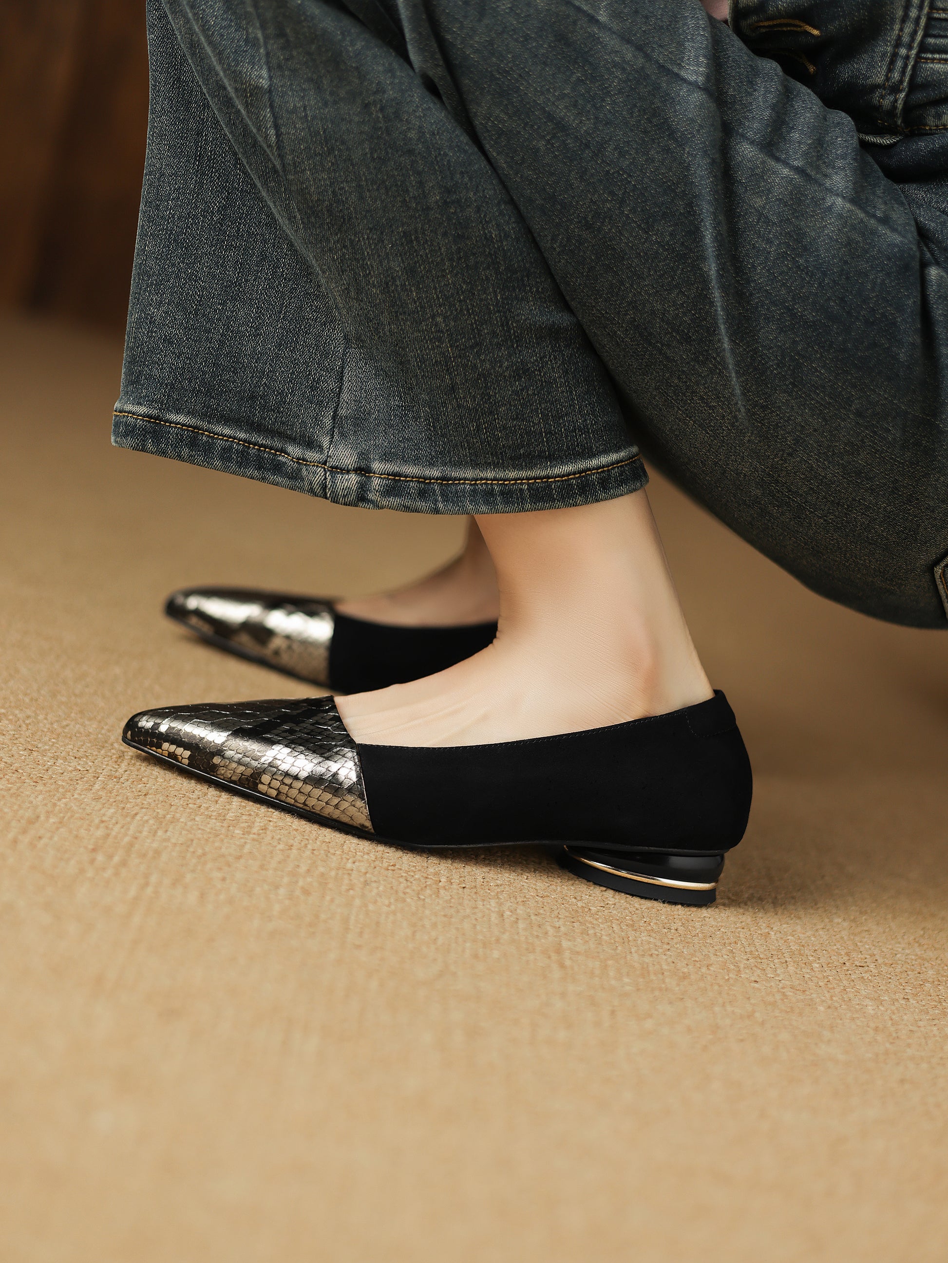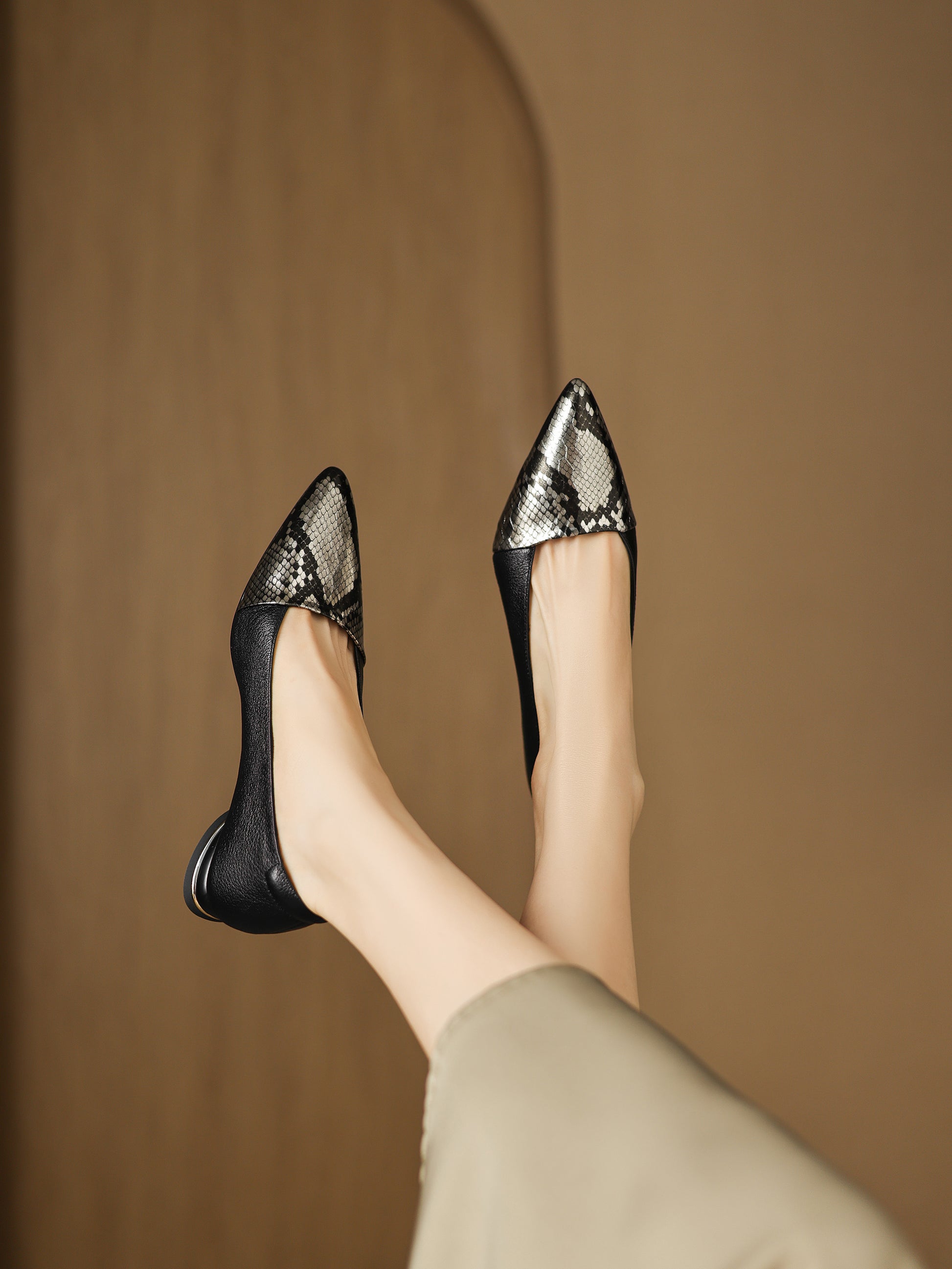 TinaCus Handmade Women's Genuine/Suede Leather Pointed Toe Printed Snakeskin Ballet Flats Shoes