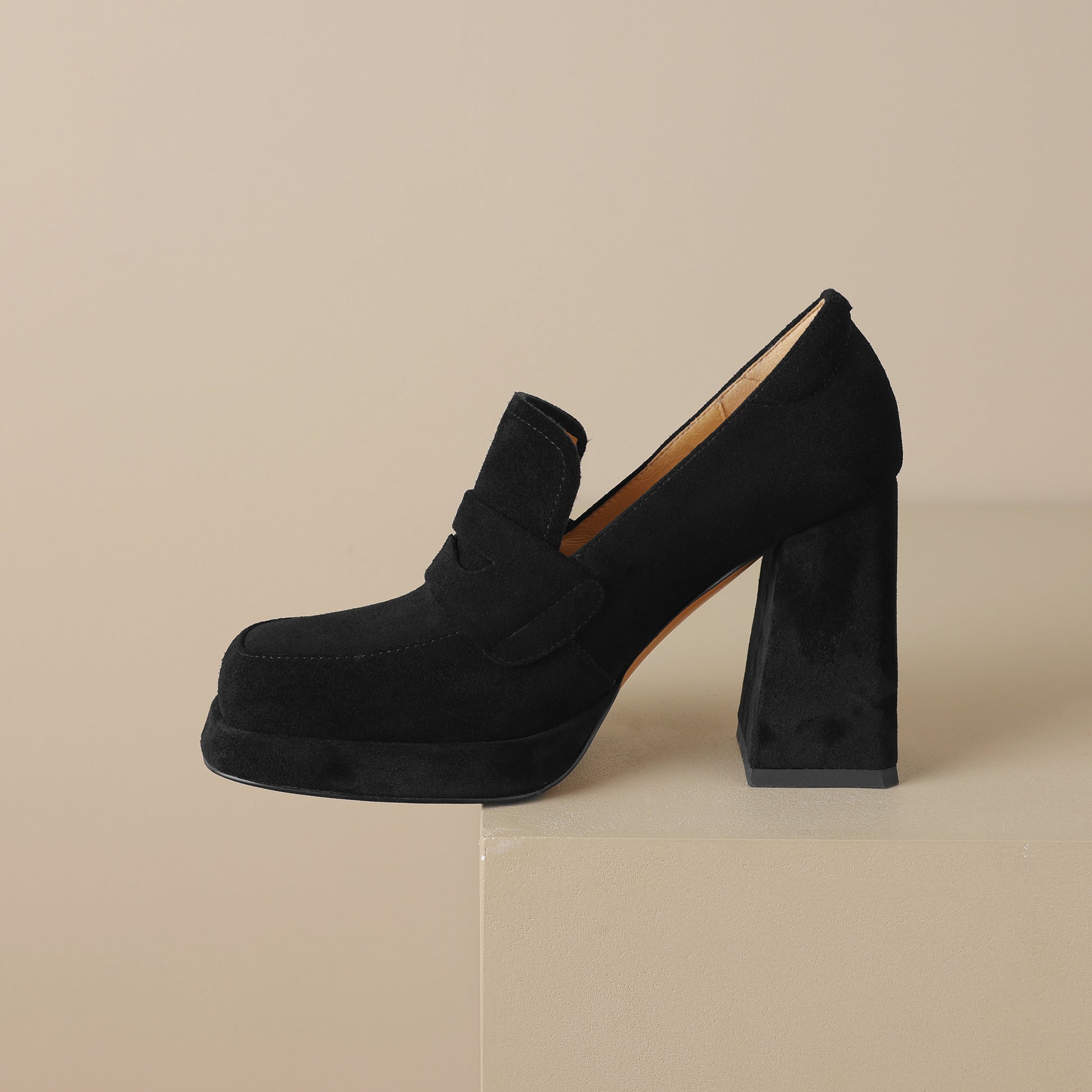 4 inches chunky heel with 1.5 inches platform creates ultra-sexy platform loafers.