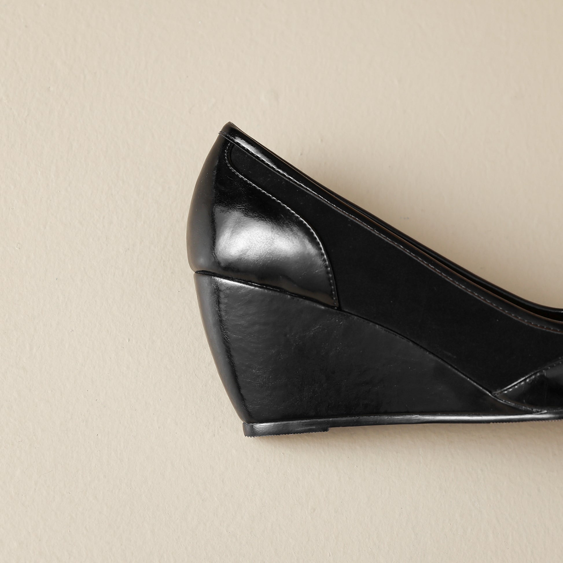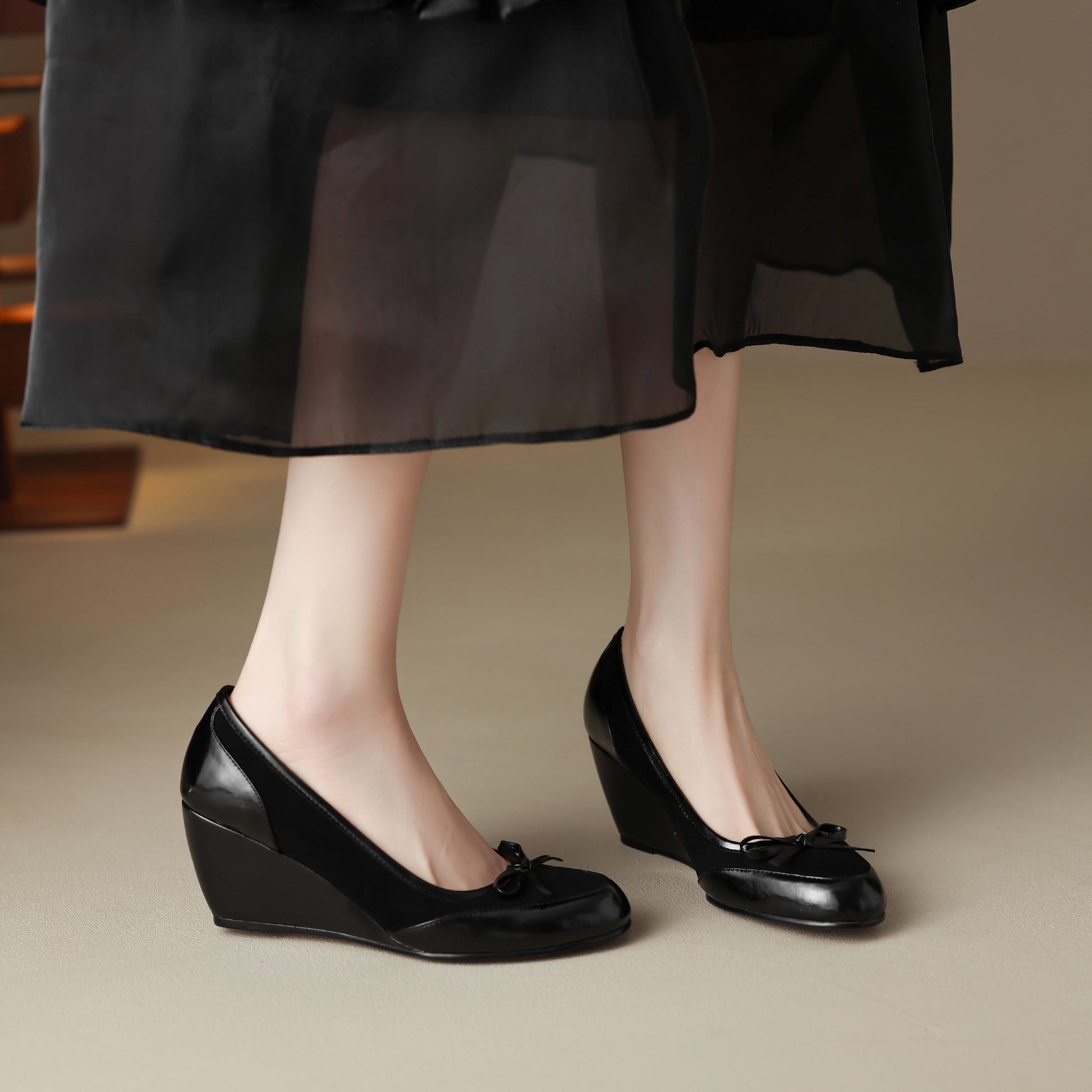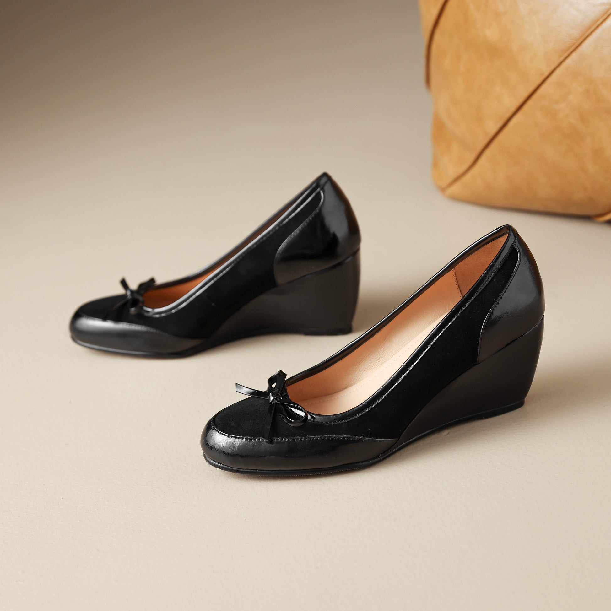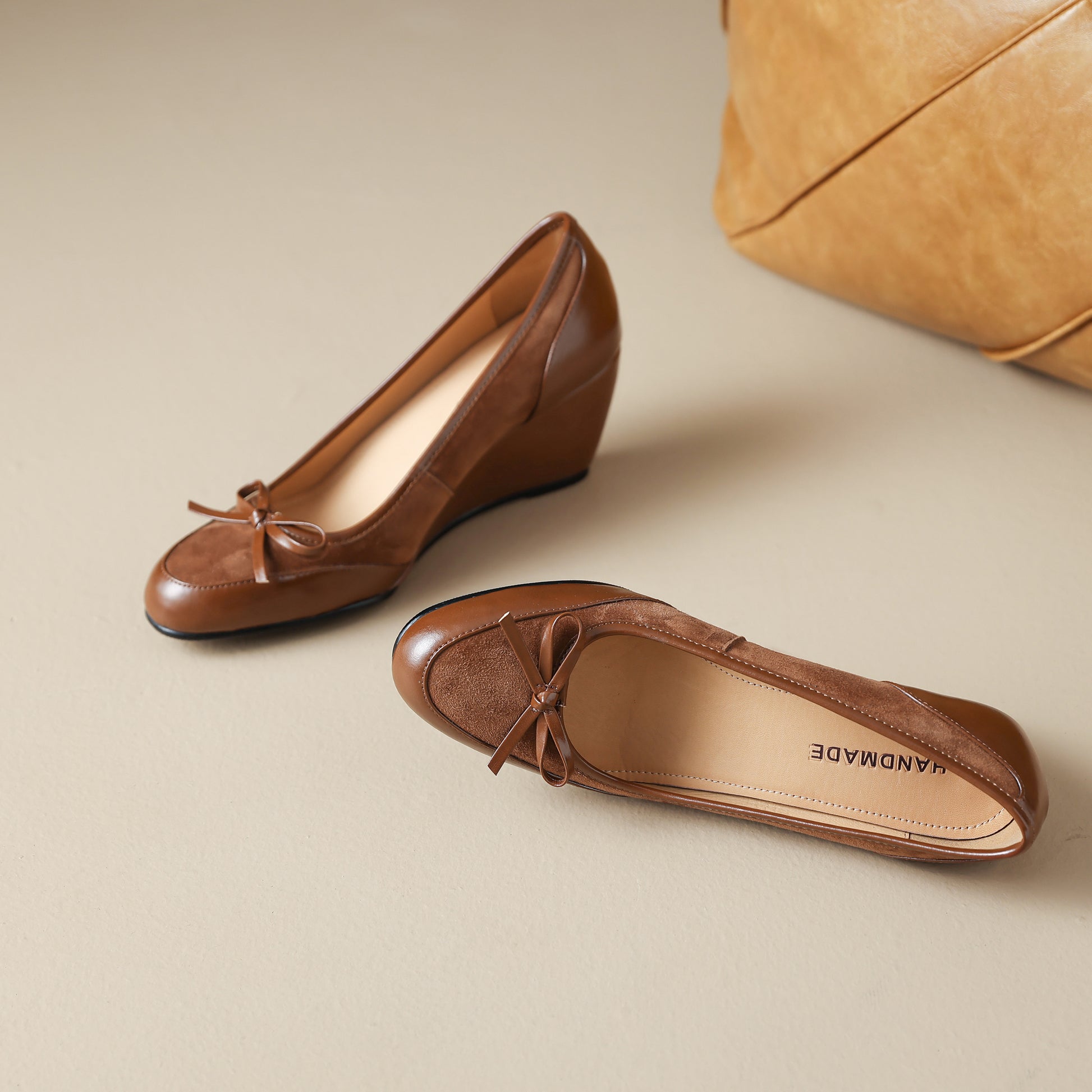 Elevate your casual style with these Round-Toe Wedge Pumps, crafted from premium Suede Leather.
