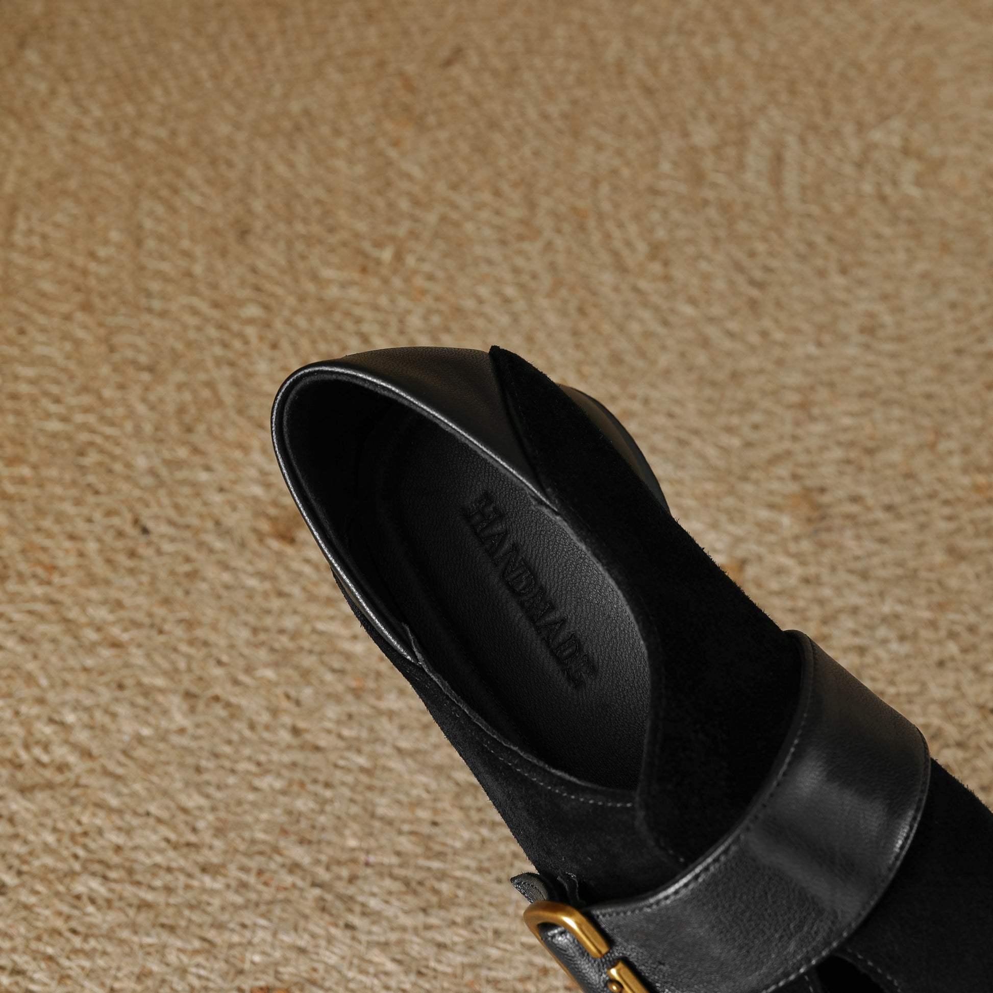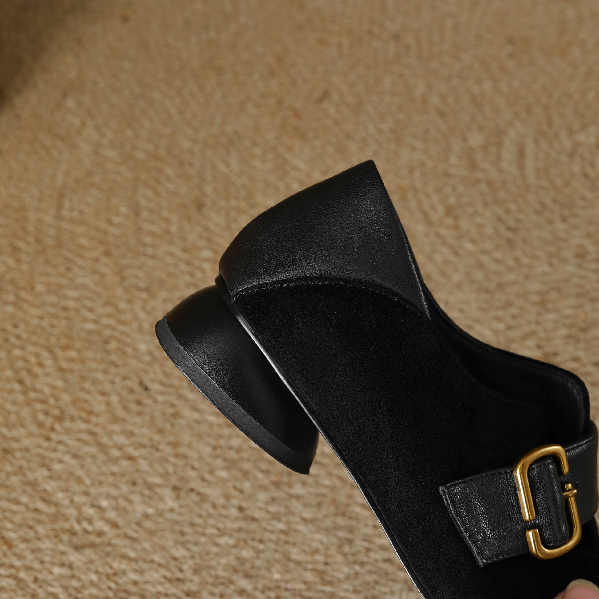 Casual loafers shoes with round toe, suede leather, genuine leather, buckle and low heels can make you feel comfortable