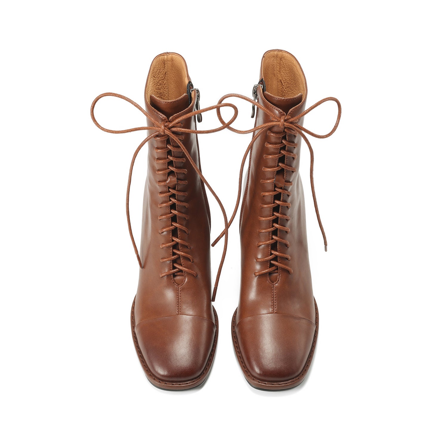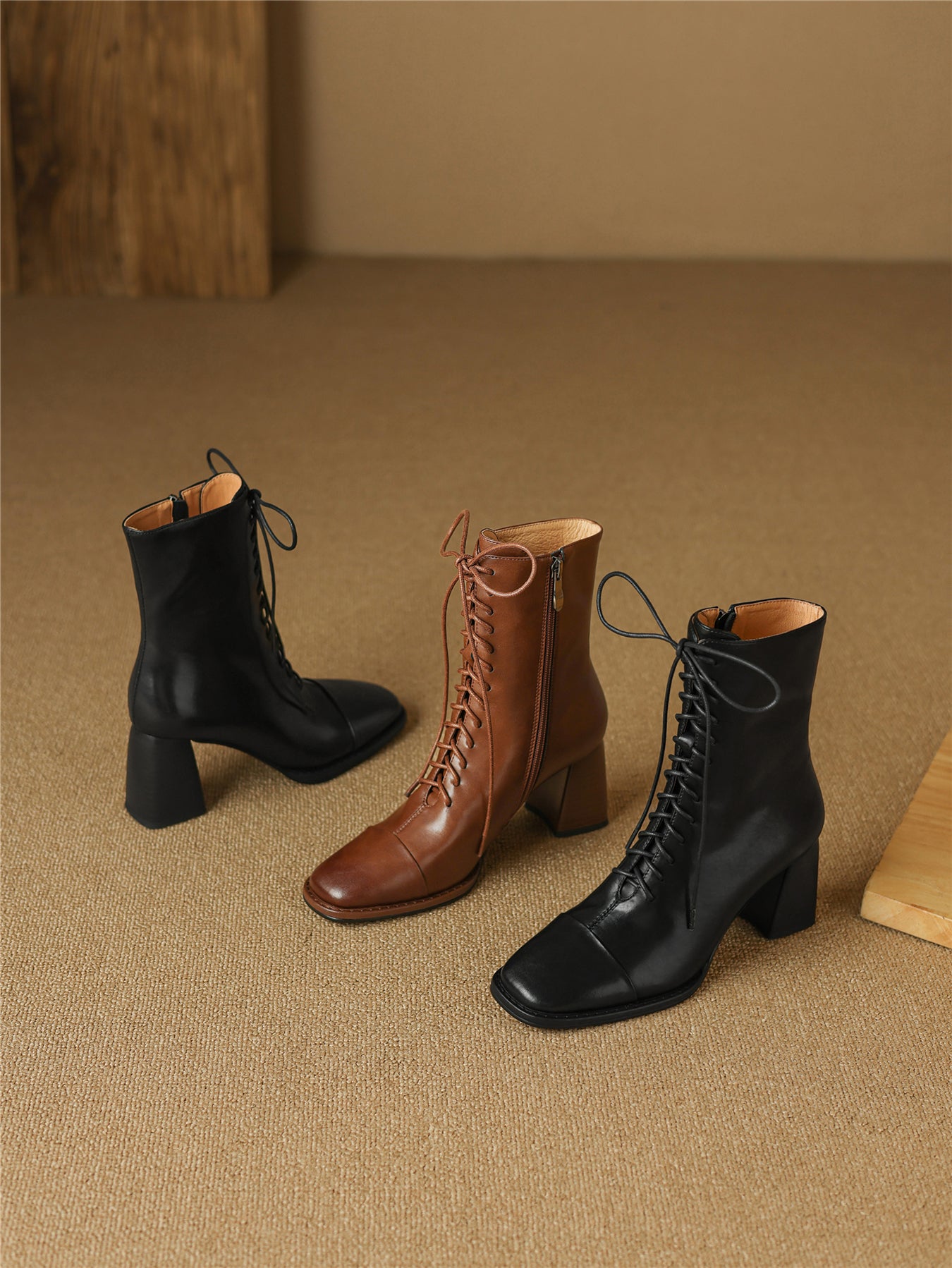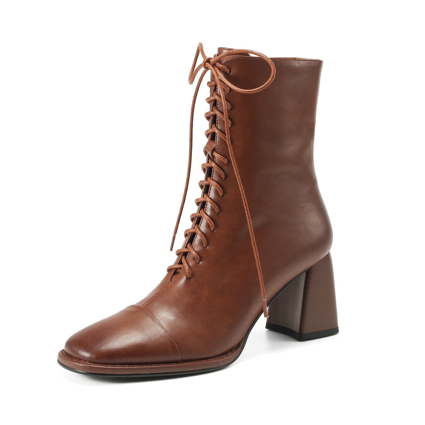 Modern boots are designed with lace up, genuine leather, zip and block heel.