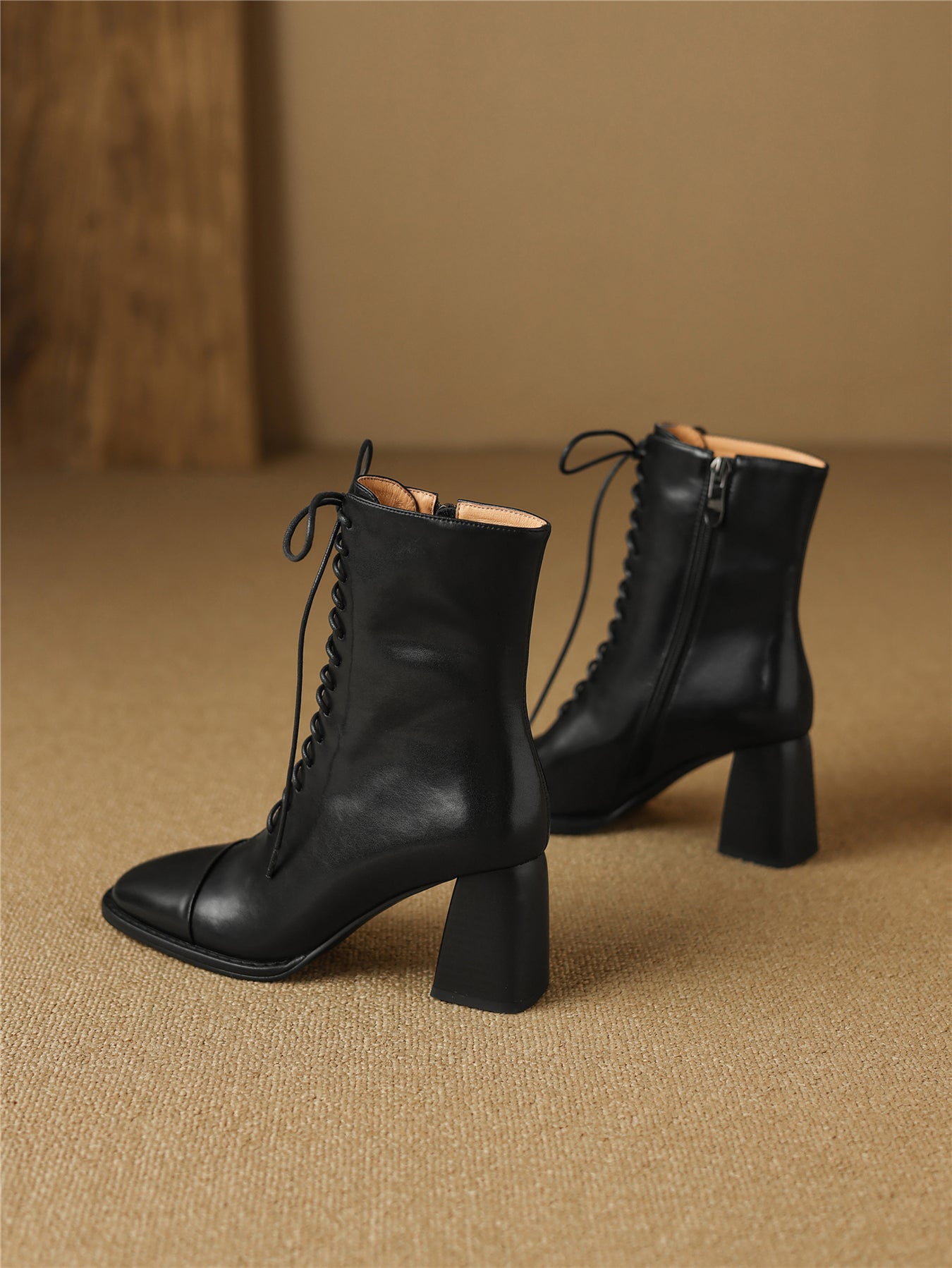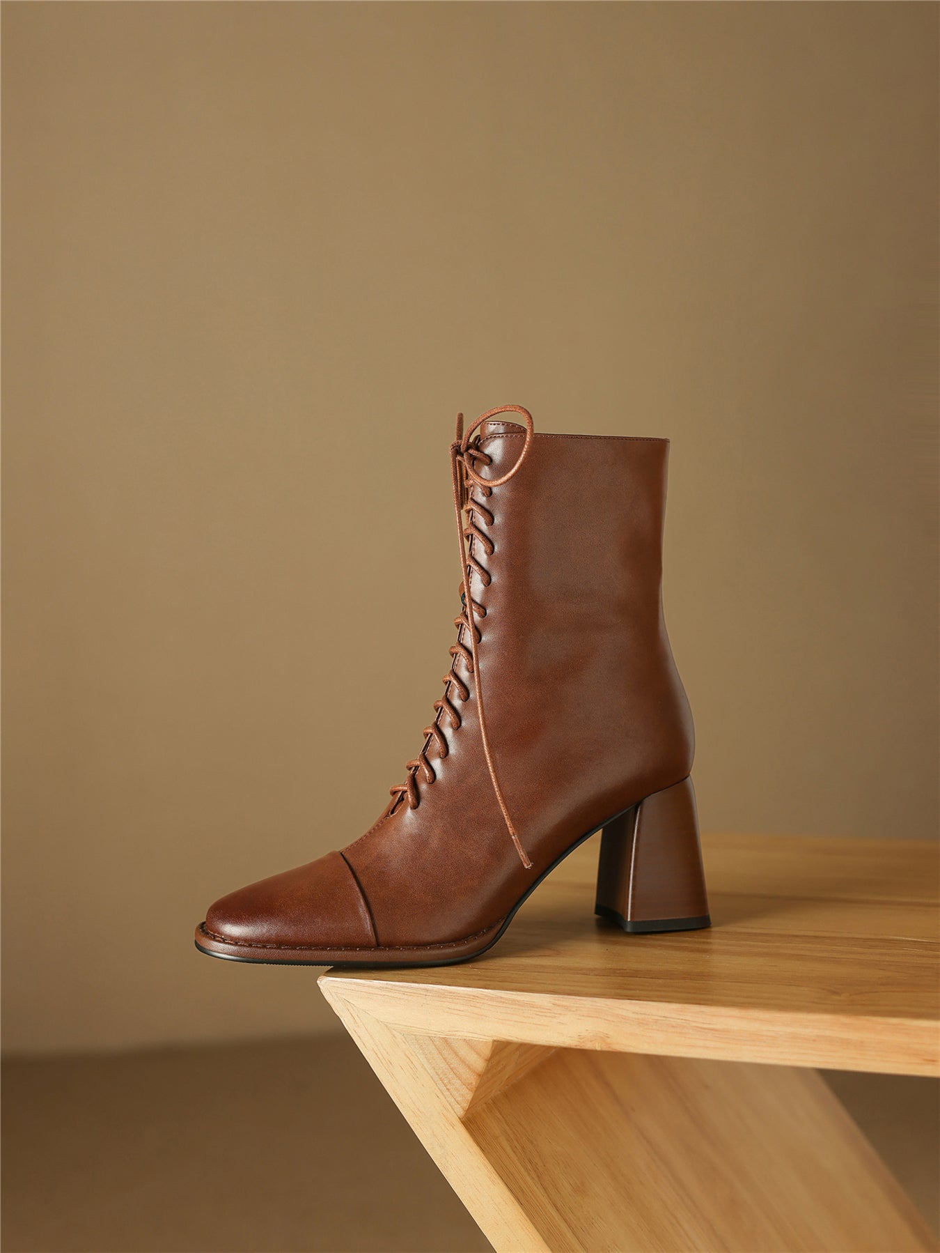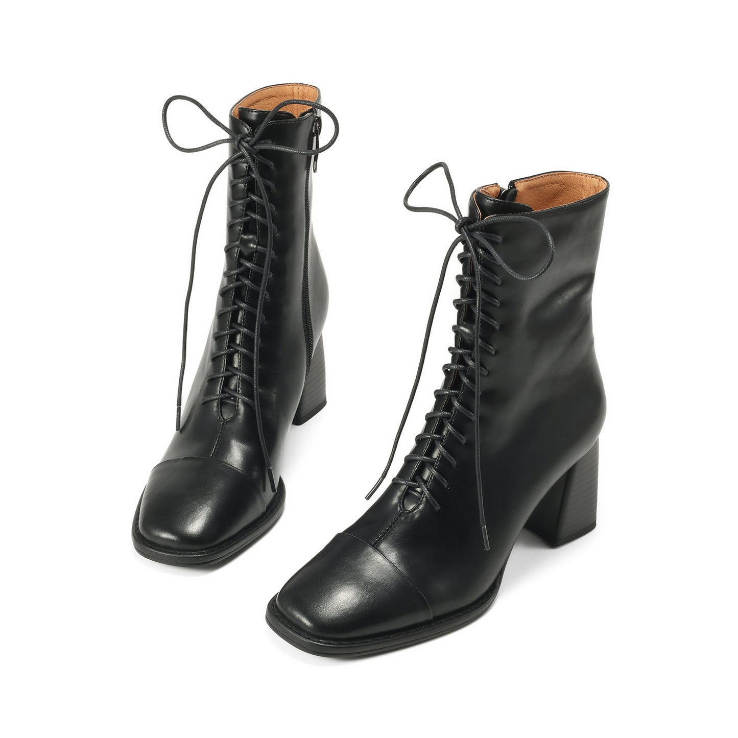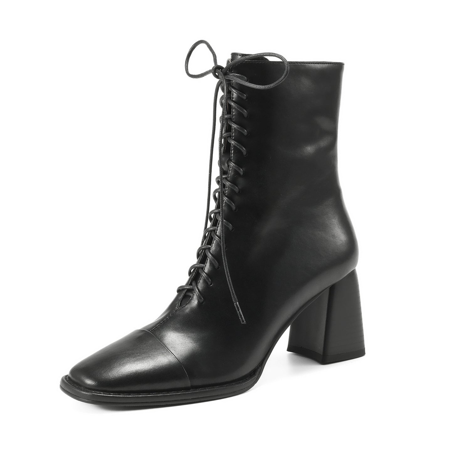 Modern boots are designed with lace up, genuine leather, zip and block heel.