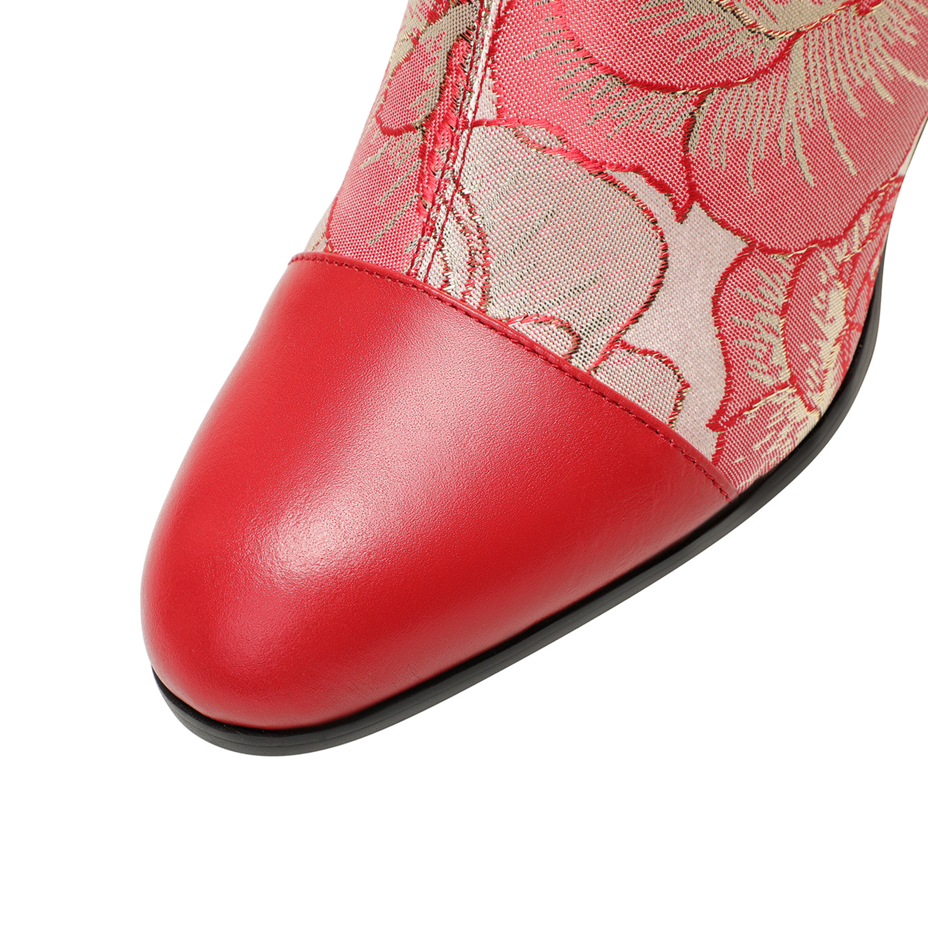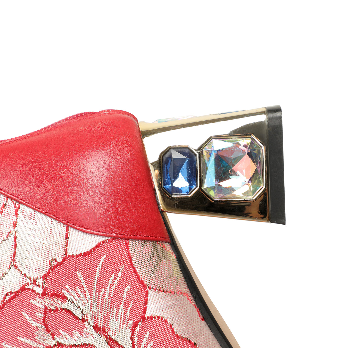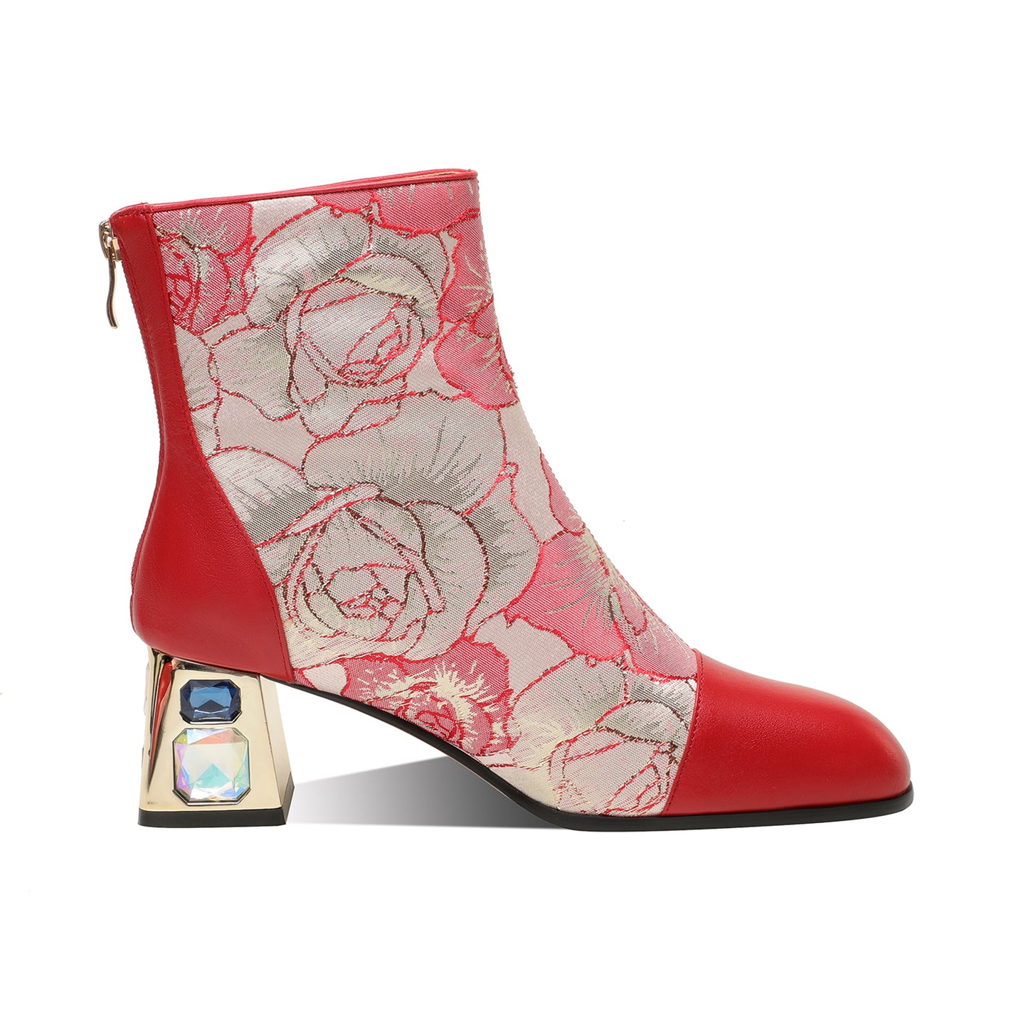 TinaCus Women's Genuine Leather Crystal Heel Handmade Back Zip Up Embroidery Flowers Ankle Boots