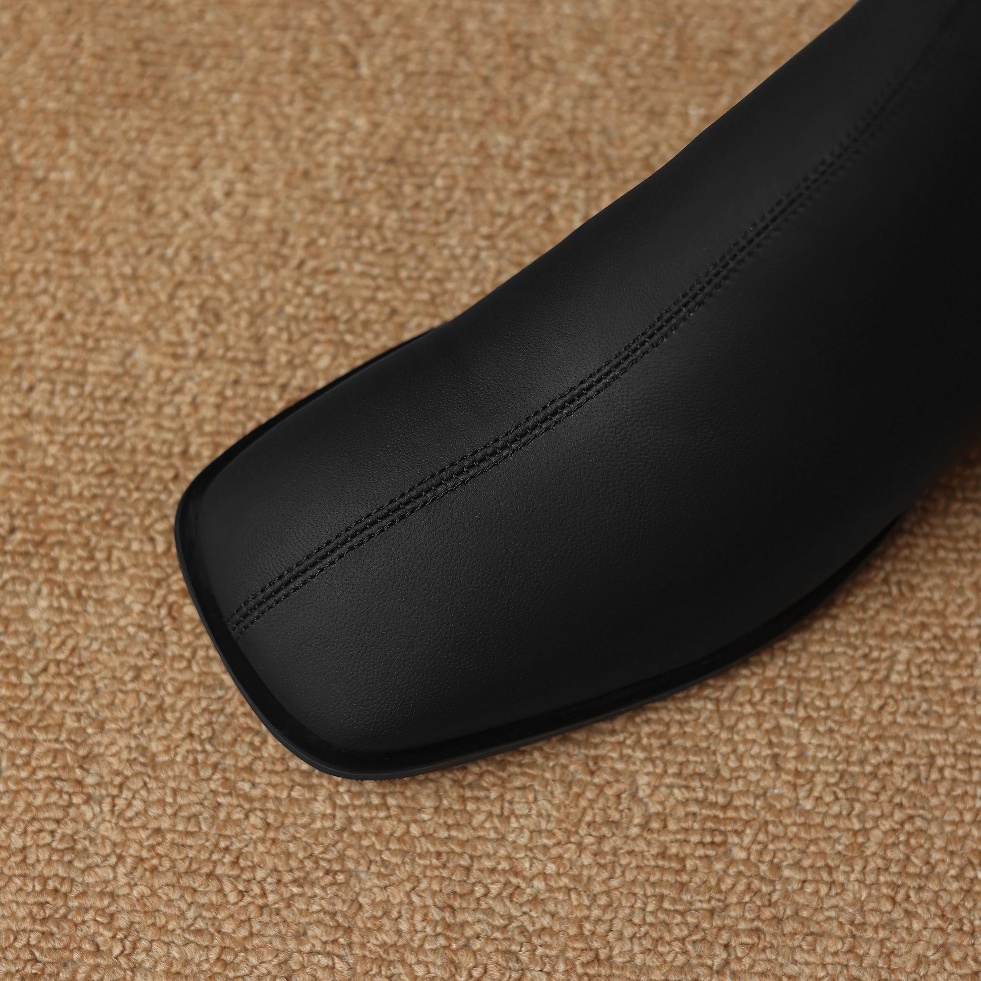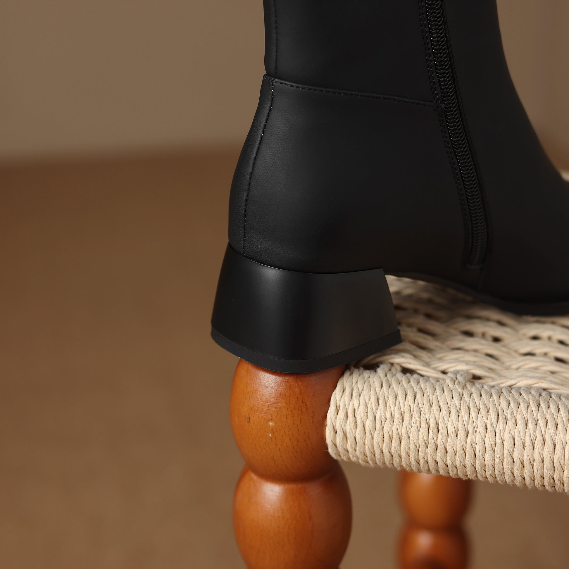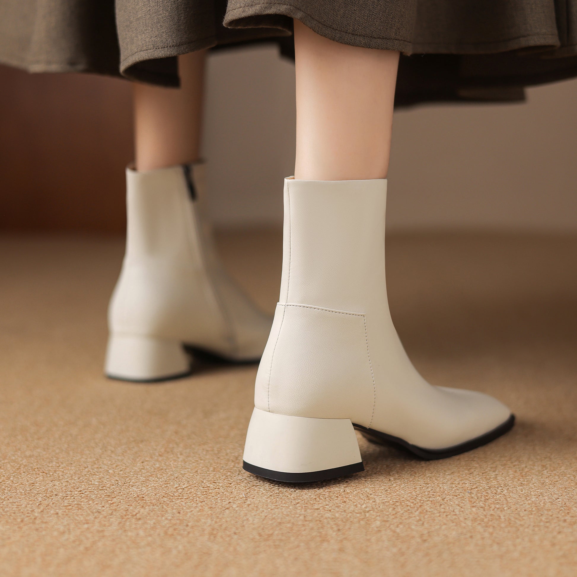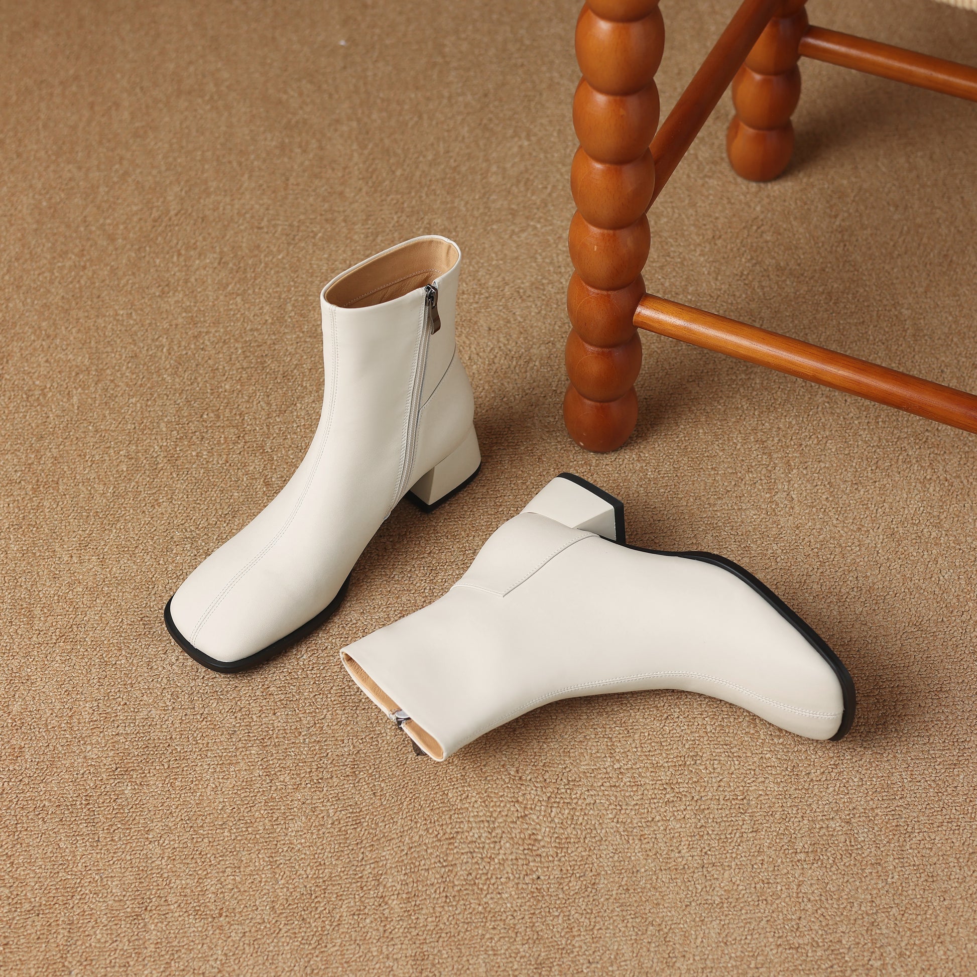 Classic square-toe ankle boots with low block heels deliver stable, all-day comfort.