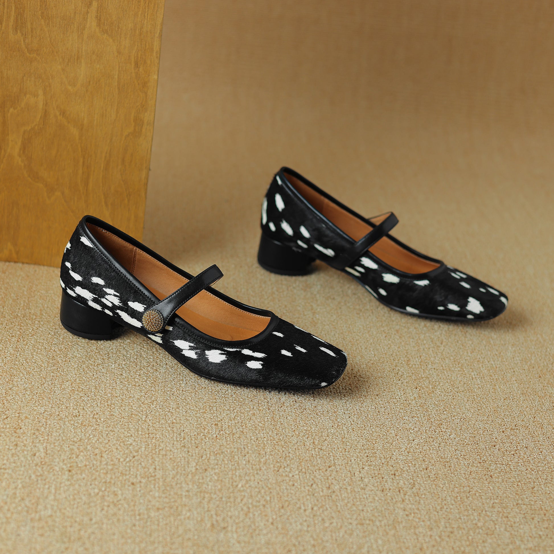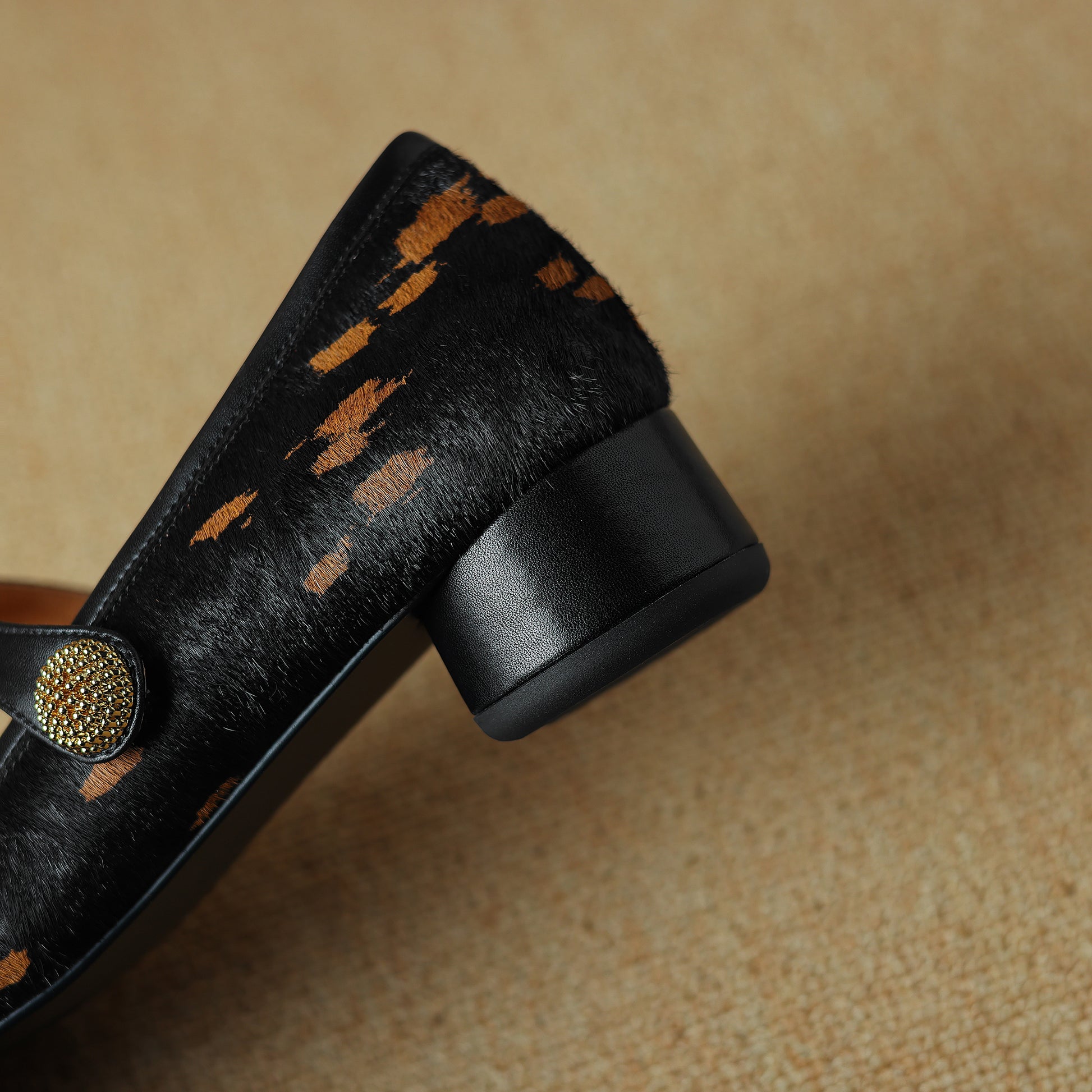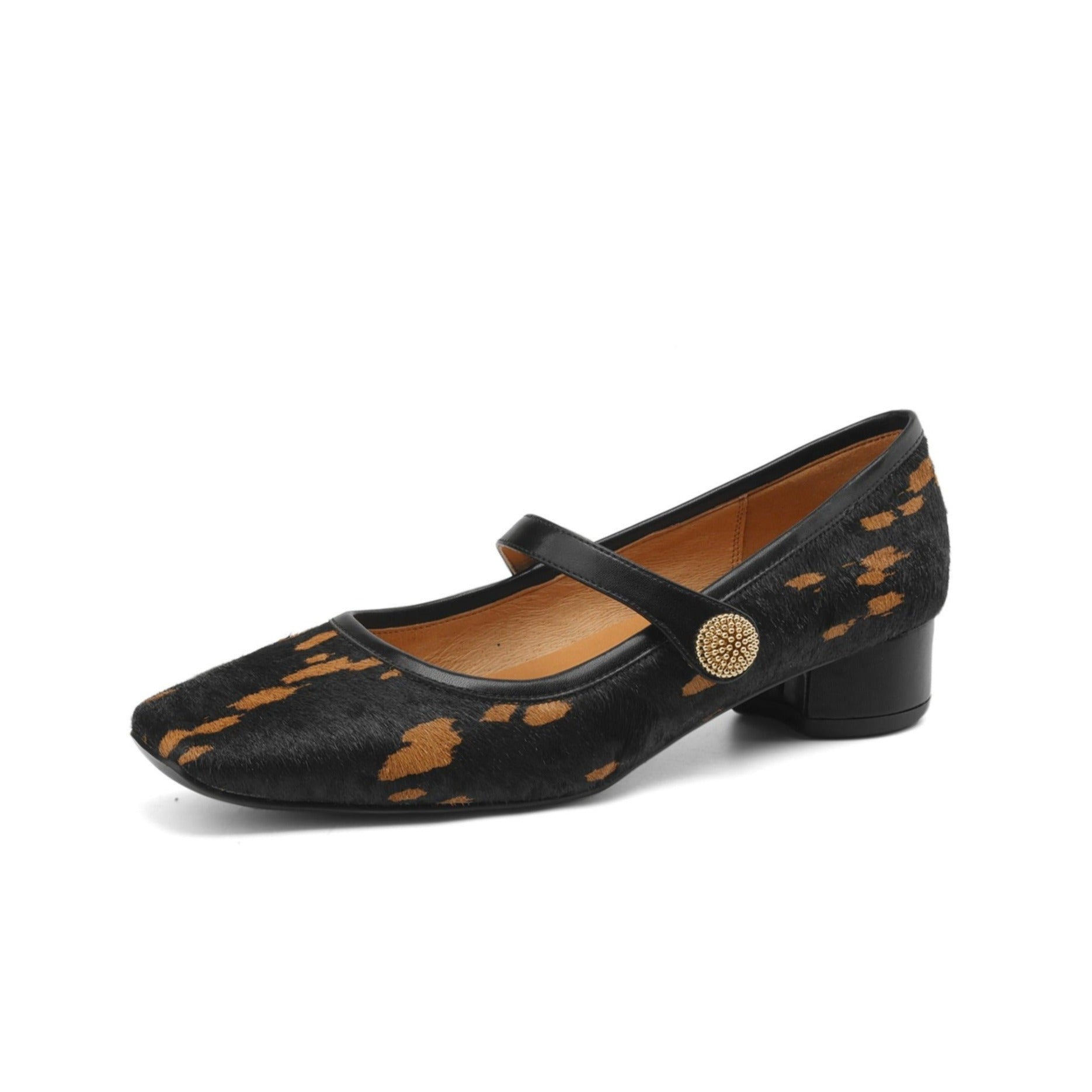 TinaCus Women's Handmade Block Heel Genuine Leather Horsehair Mary Jane Pumps