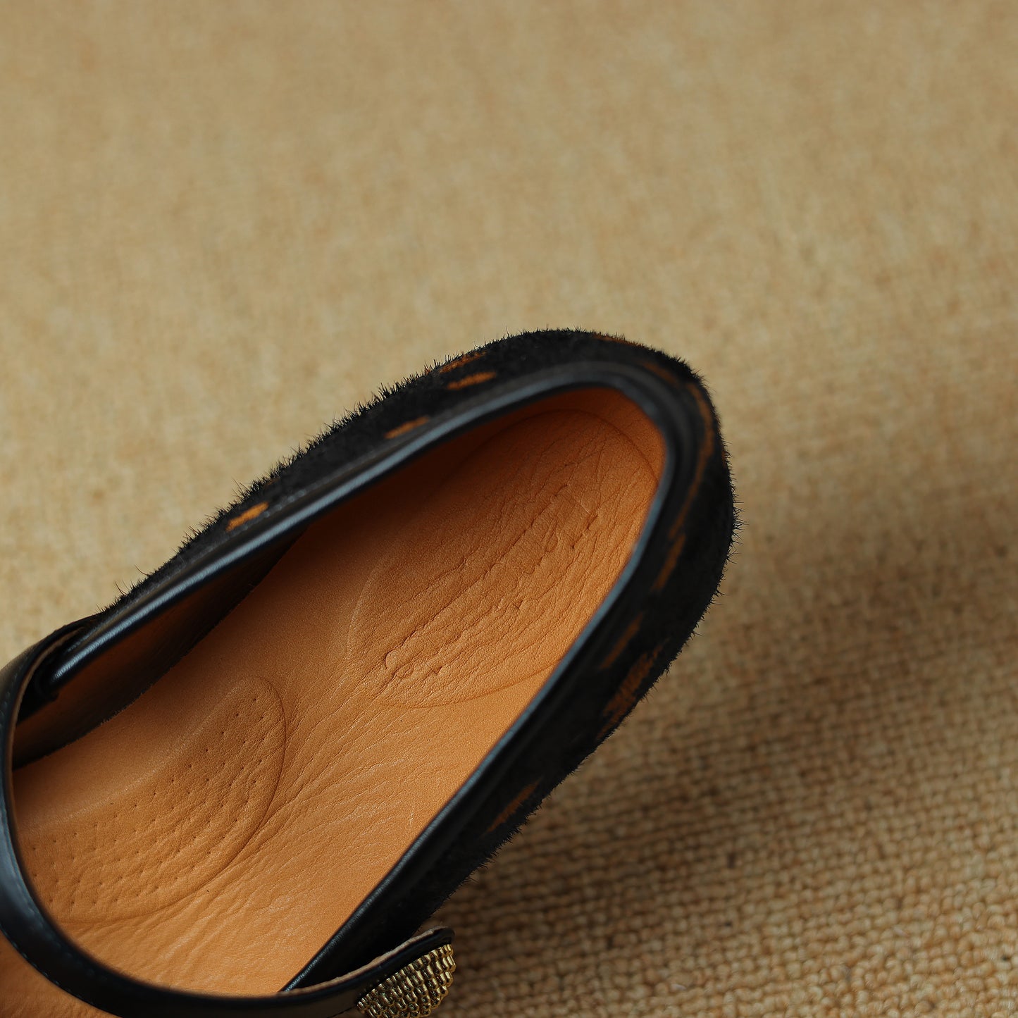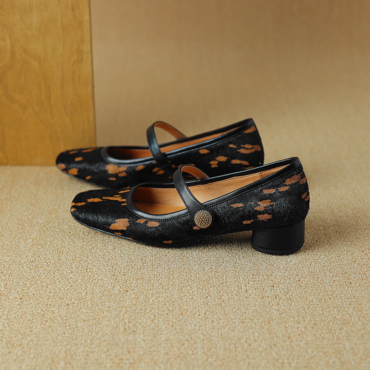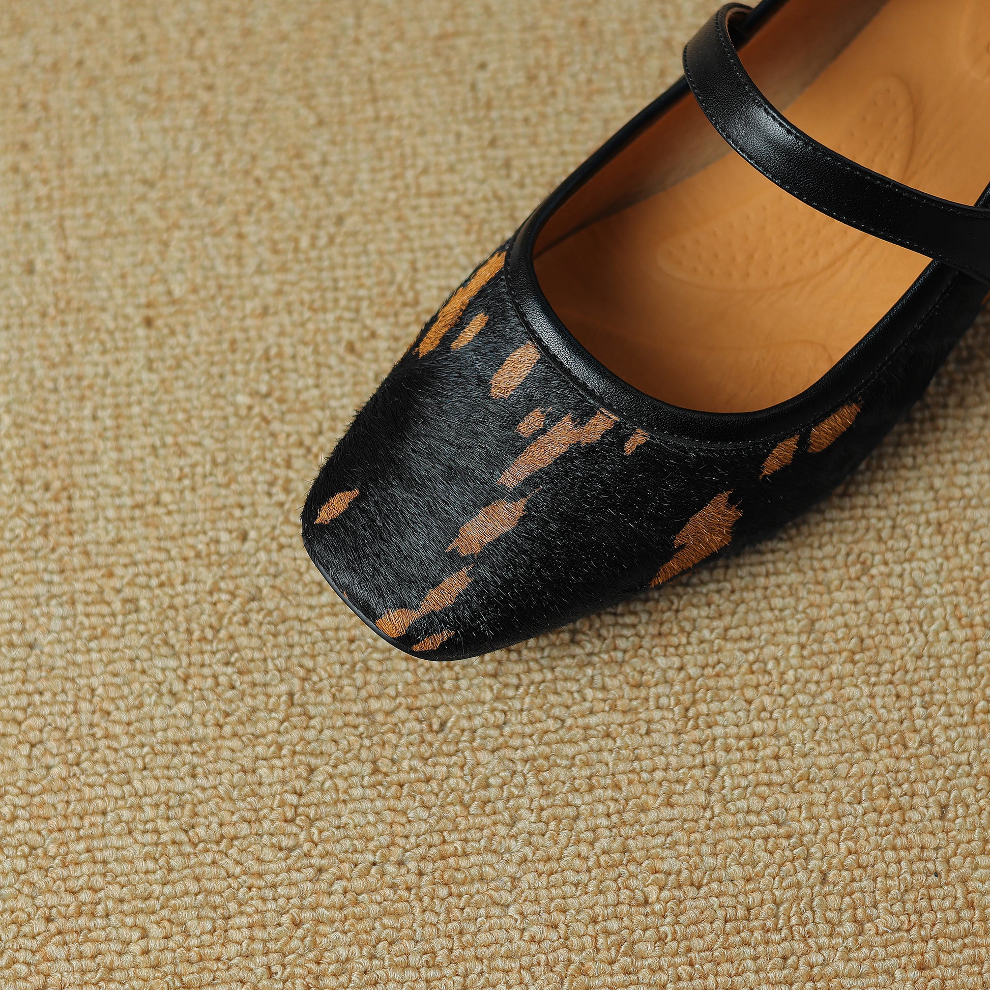 TinaCus Women's Handmade Block Heel Genuine Leather Horsehair Mary Jane Pumps