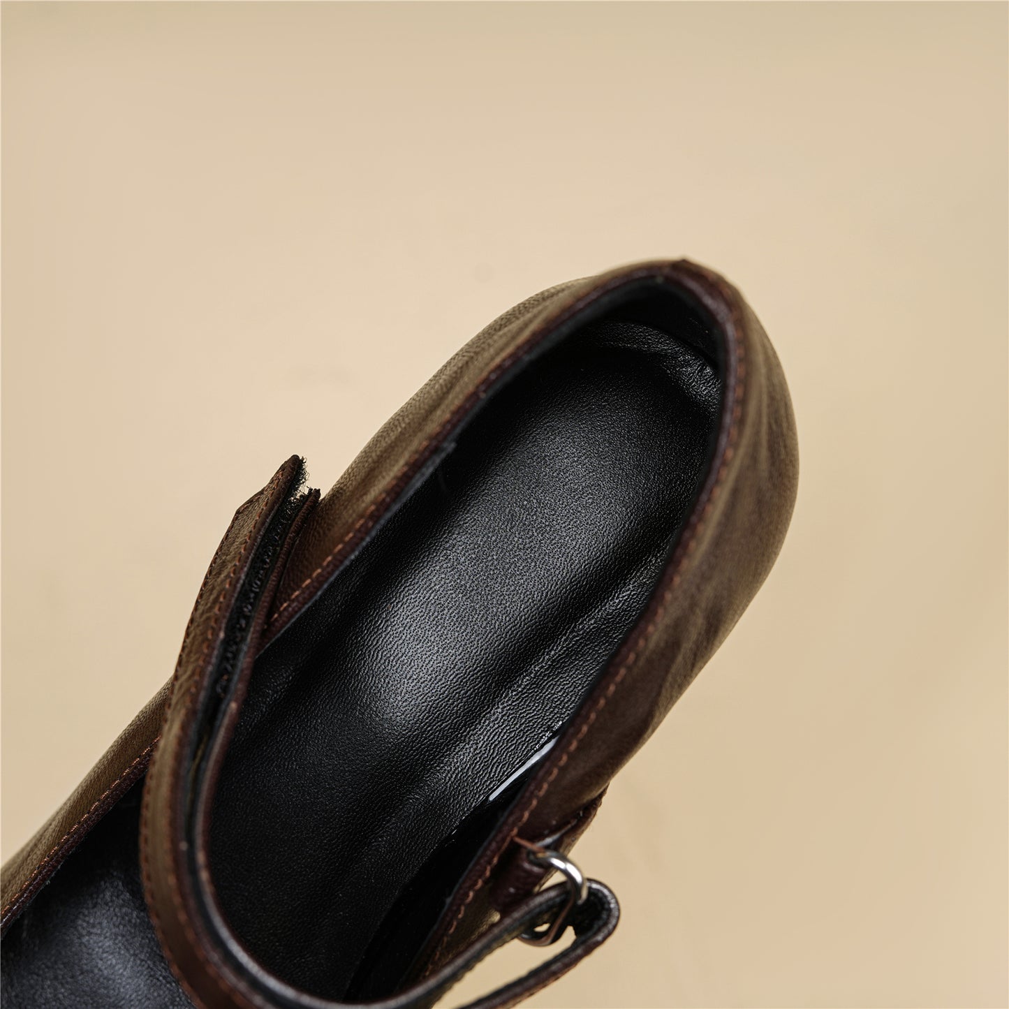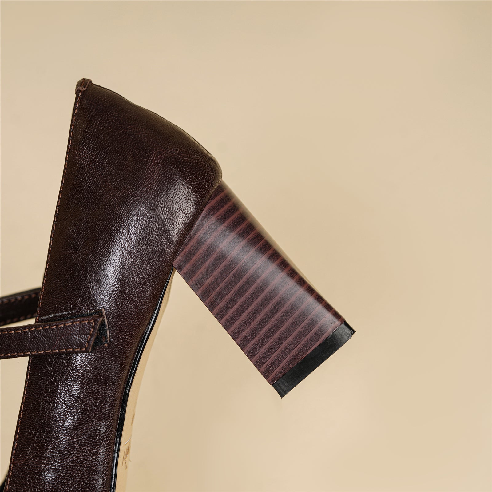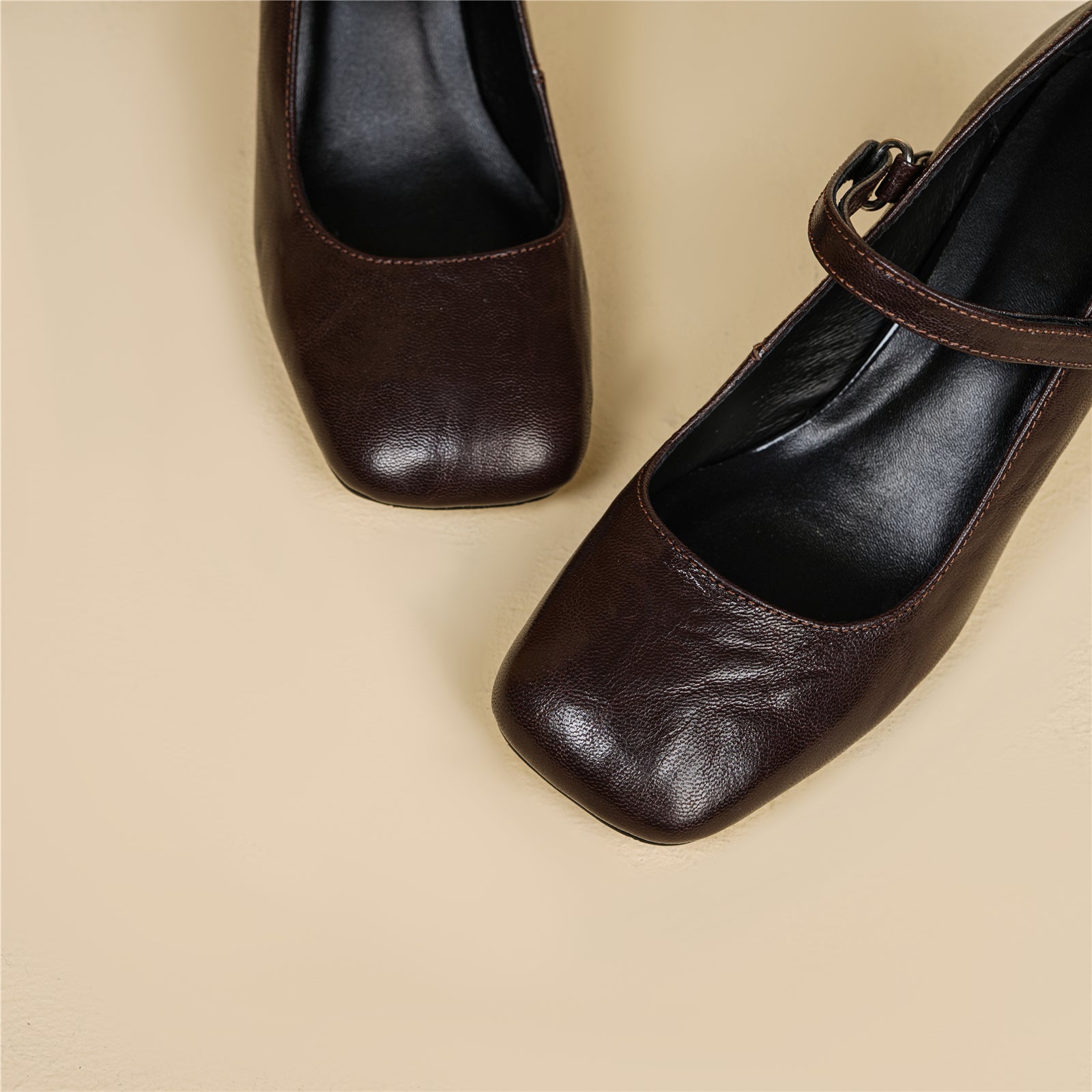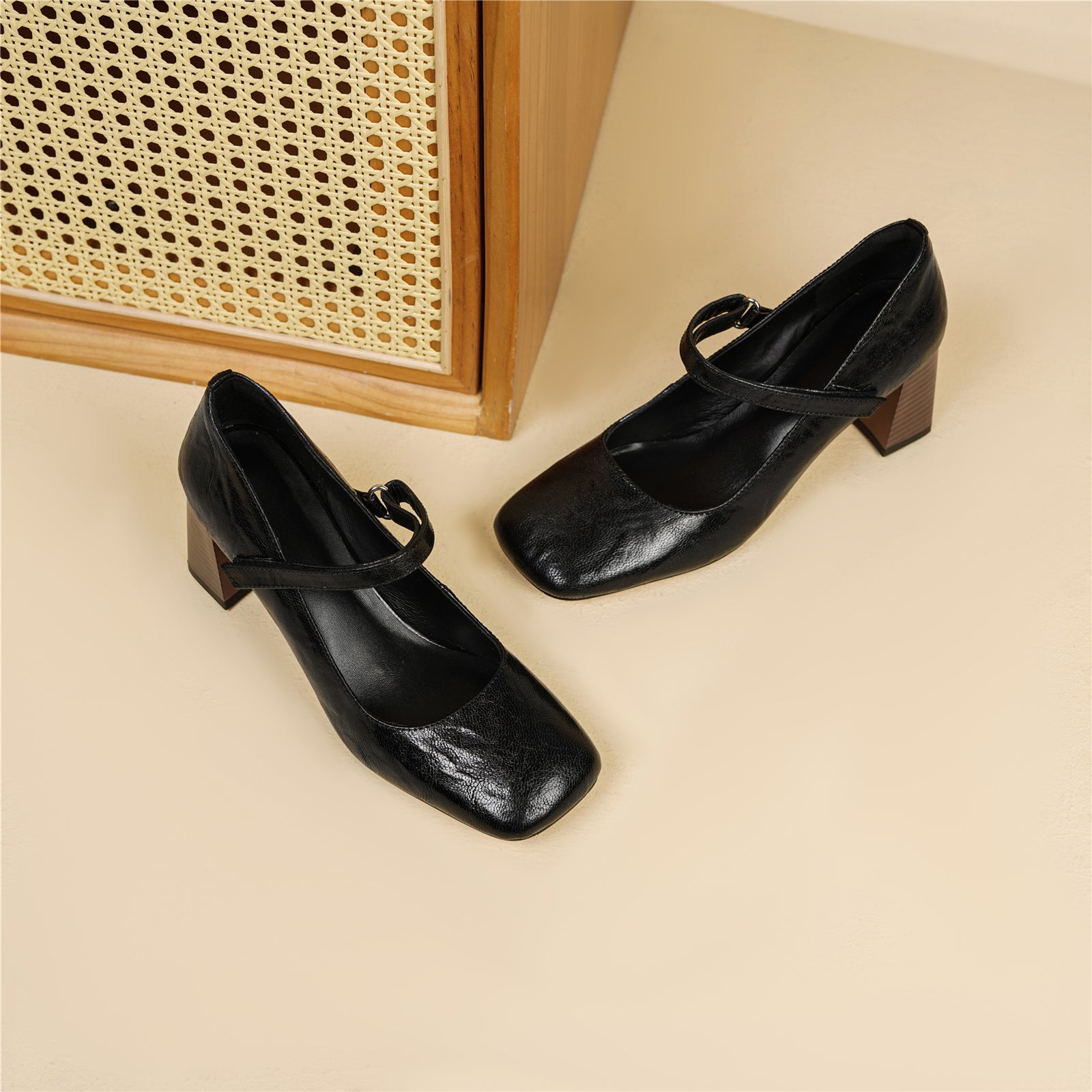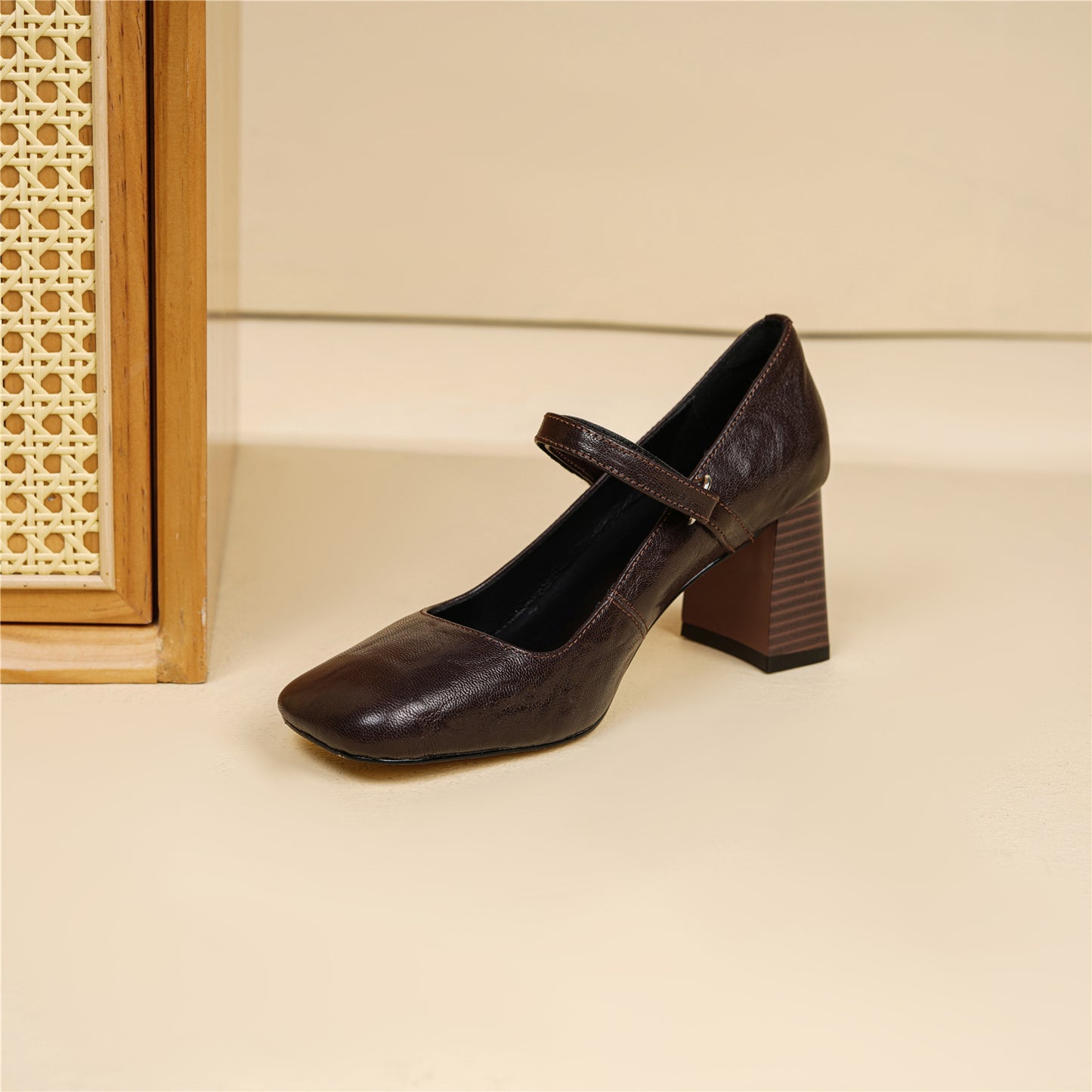Pump shoes with genuine leather, square toe and chunky heel can go with your dress, jeans and pants.