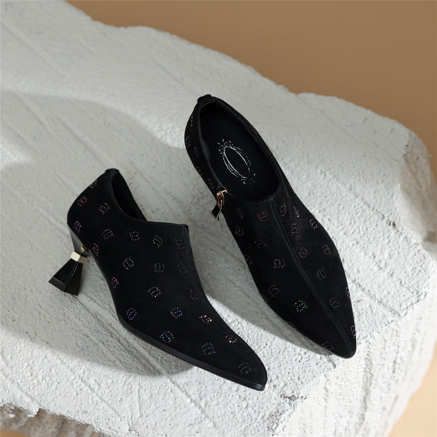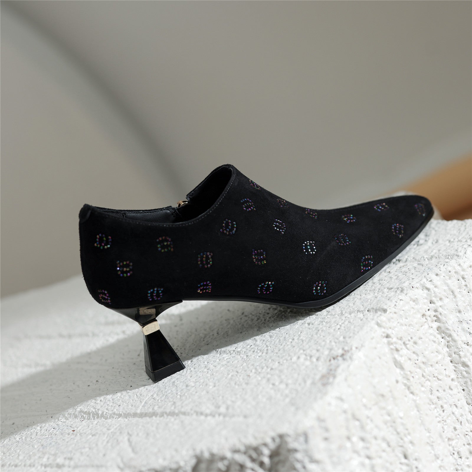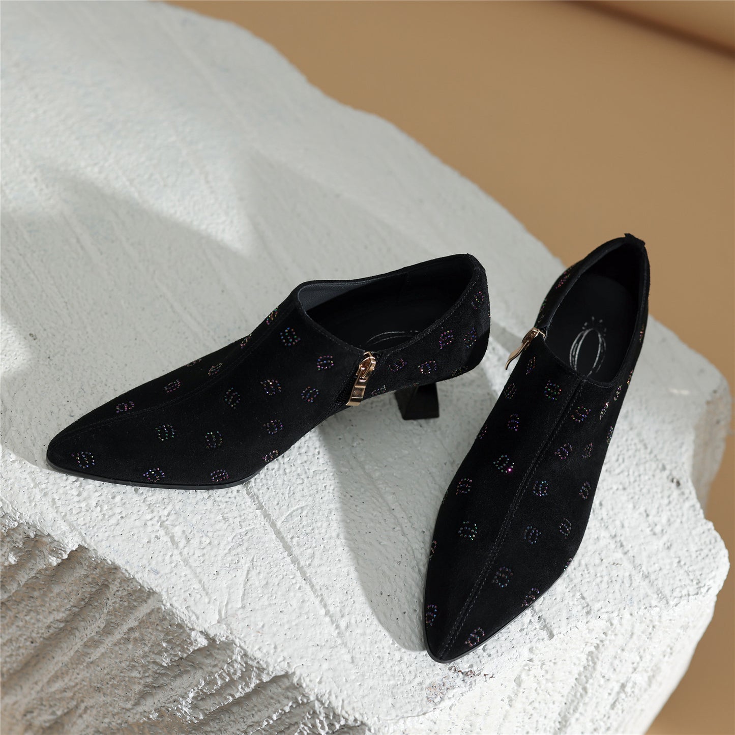 TinaCus Women's Handmade Suede Leather Zip Up Mid Heel Pumps Shoes