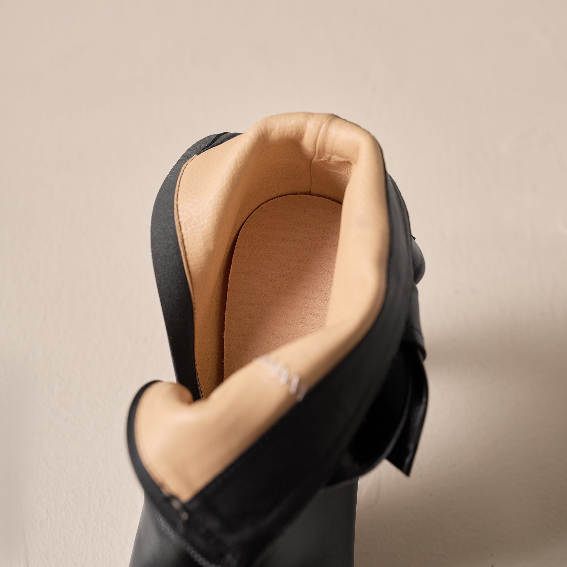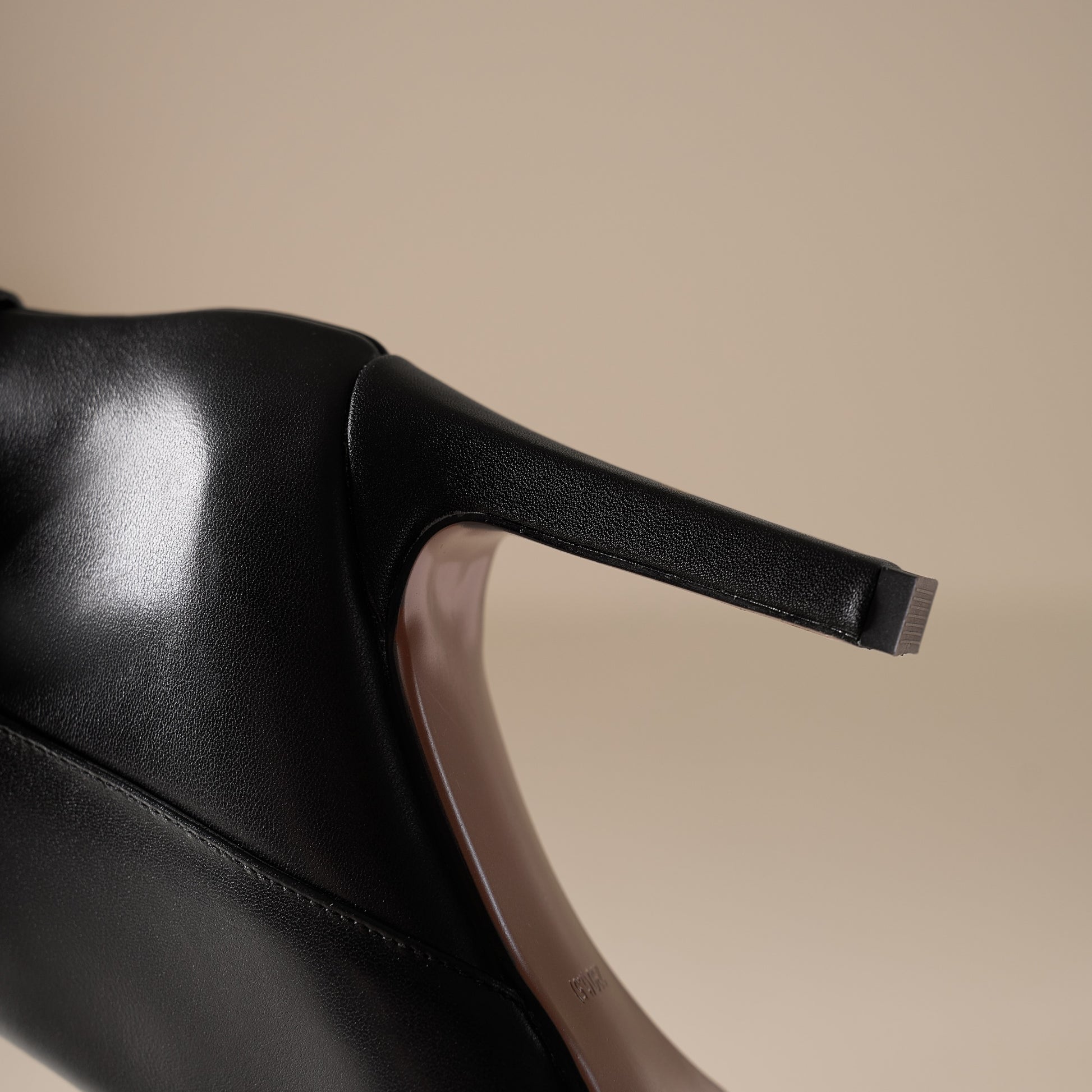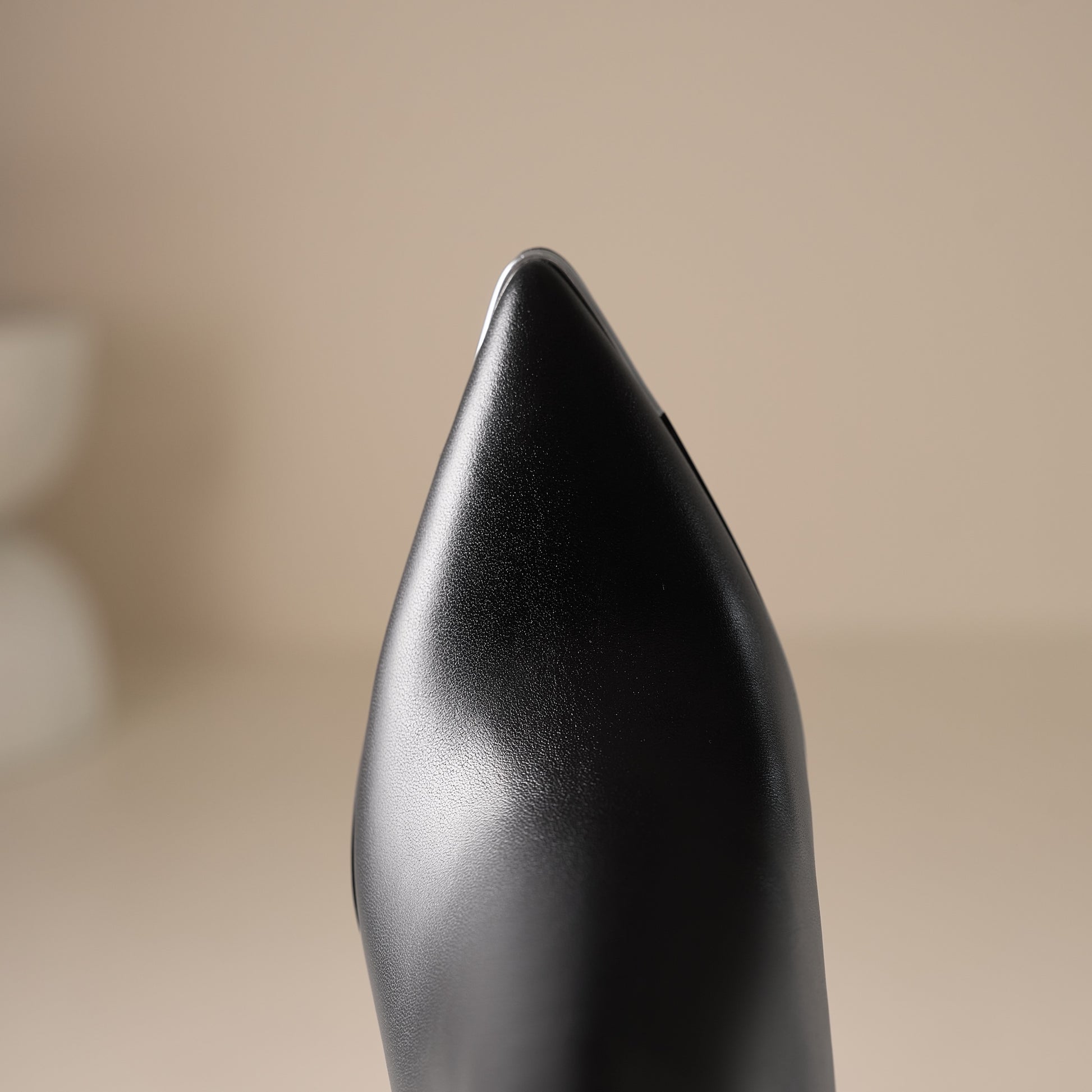 Ankle boots designed with pointed toe, side zipper, genuine leather and high heels can go with kinds of outfits