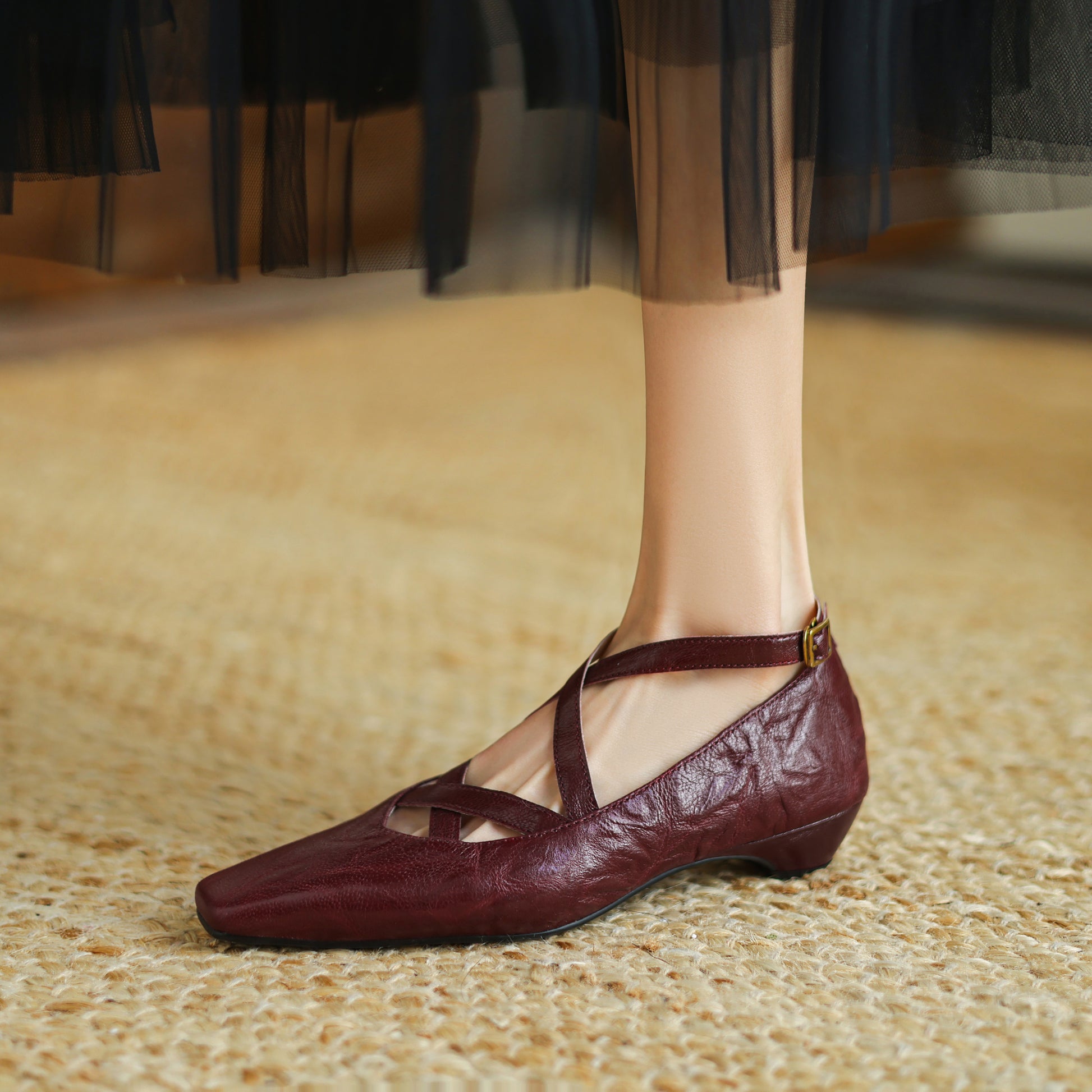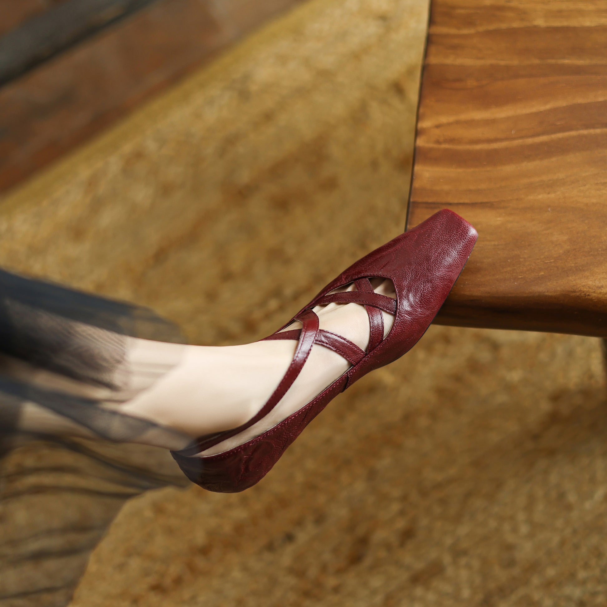 These Mary Jane shoes adopt the classic square toe shape and cross-lacing design.