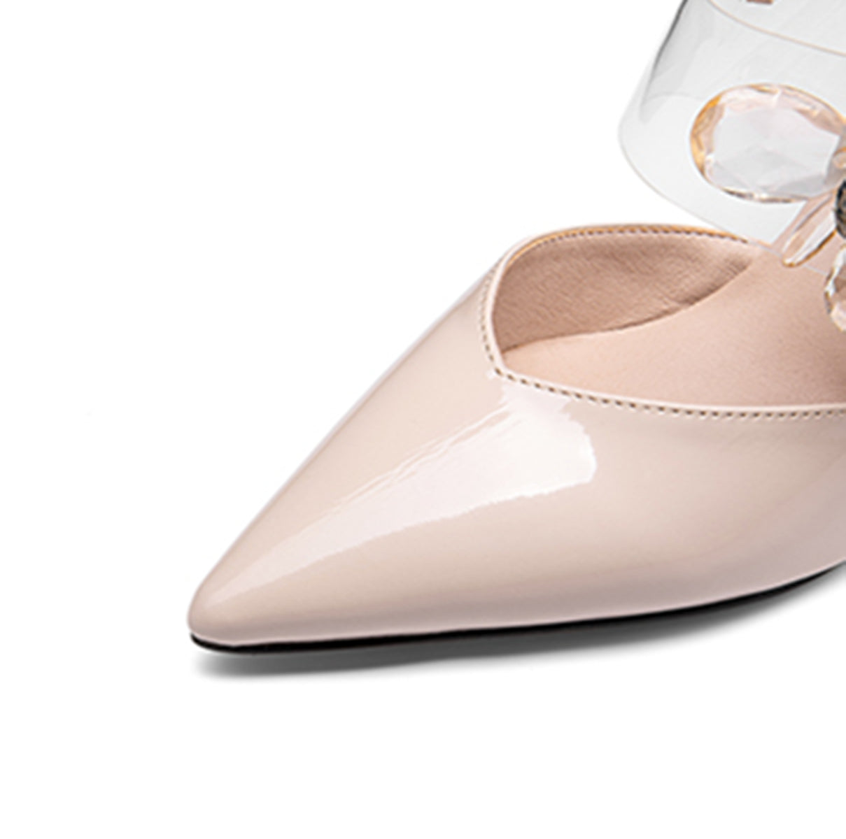 TinaCus Women's Handmade Glossy Patent Leather Stiletto Heel Buckle Sandals with Flowers and Crystal
