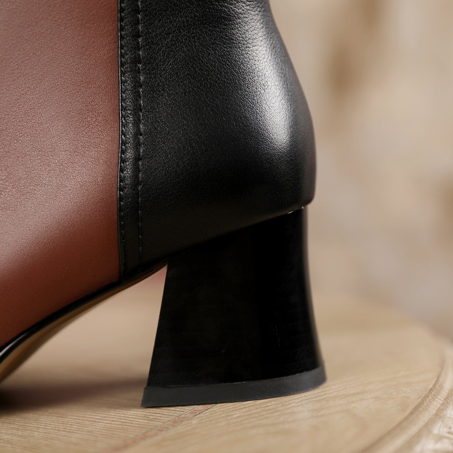 TinaCus Women's Genuine Leather Assort Colors Round Toe Handmade Laces Side Zipper Retro Booties with Chunky Heels