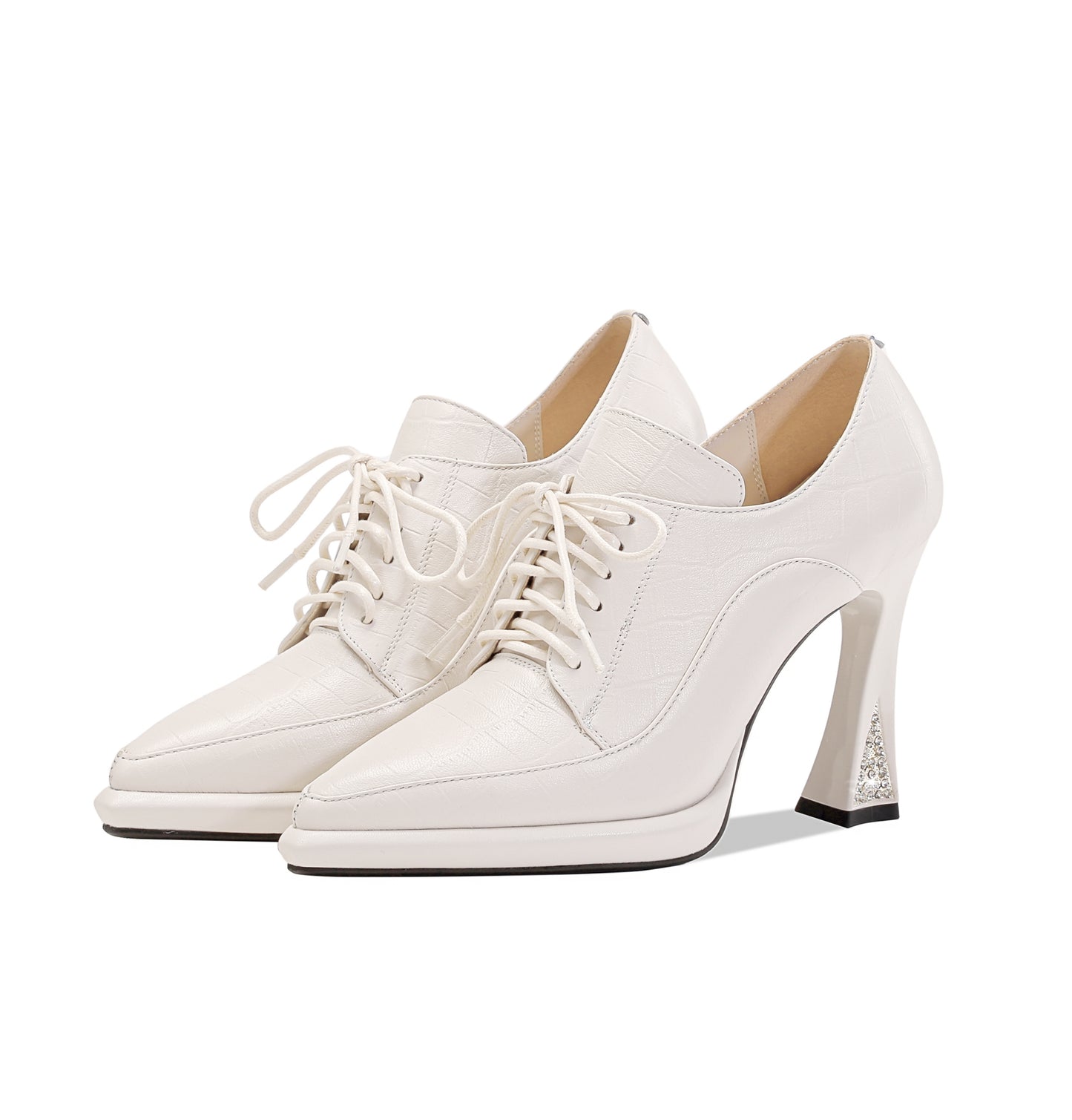 Genuine leather pumps shoes designed with pointed toe, selftie and high heels to keep up with fashion trend.